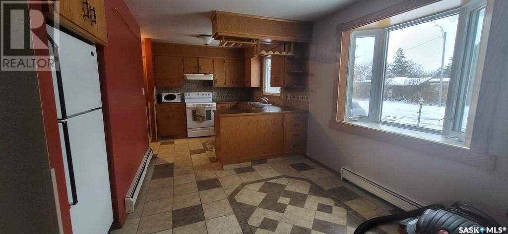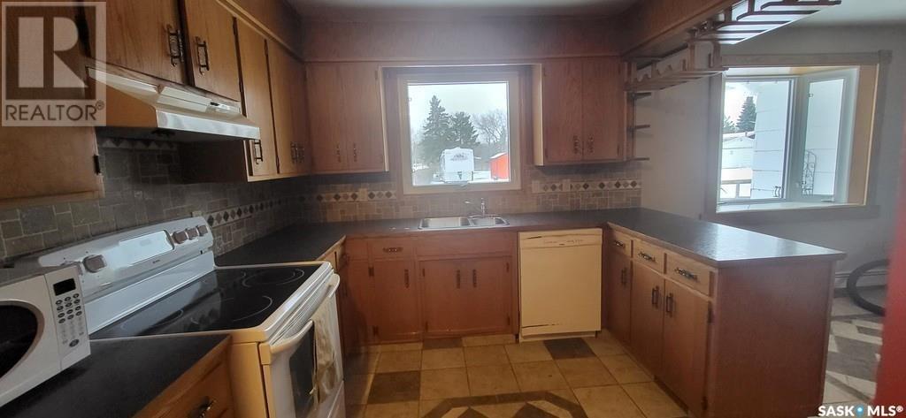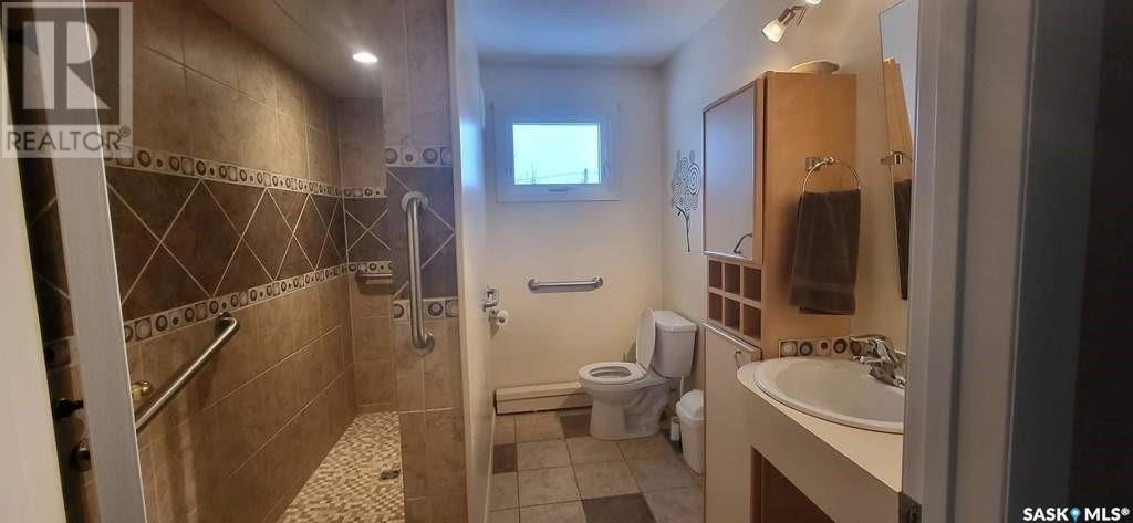 Take a look again at the location of this three bedroom home on the edge of town. This large mature lot is located within walking distance of the rink, swimming pool and k-12 school. It backs up to an open field that increases the privacy. Two separate drive ways supply ample parking. The garage is partially insulated and has its own natural gas furnace. The home features a bay window in dining room and is highlighted with tile throughout the dining room and kitchen. An oversized living room is directly adjacent to the dining room and features a large front window with an exit out to the wheelchair ramp and the attached garage. Some unique features of this home are the built in shelving units. The bathroom on the main floor has an amazing walk in shower done completely in tile. The finished basement features a large family room with built in bar. Two more bedrooms and a bathroom add extra living space to this home. The large utility area in the basement has a washer/dryer and a 2017 boiler system that heats the entire home Bonus feature include the cold storage shelves built into the storage room. Both toilets and kitchen sink are 2023. Call for your private viewing. (id:43042)