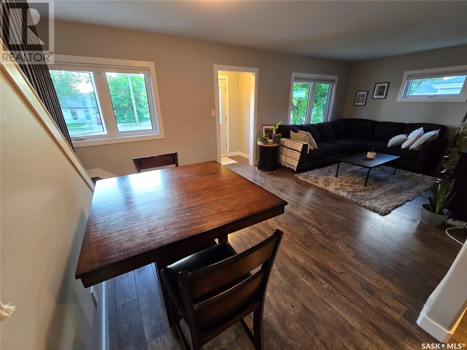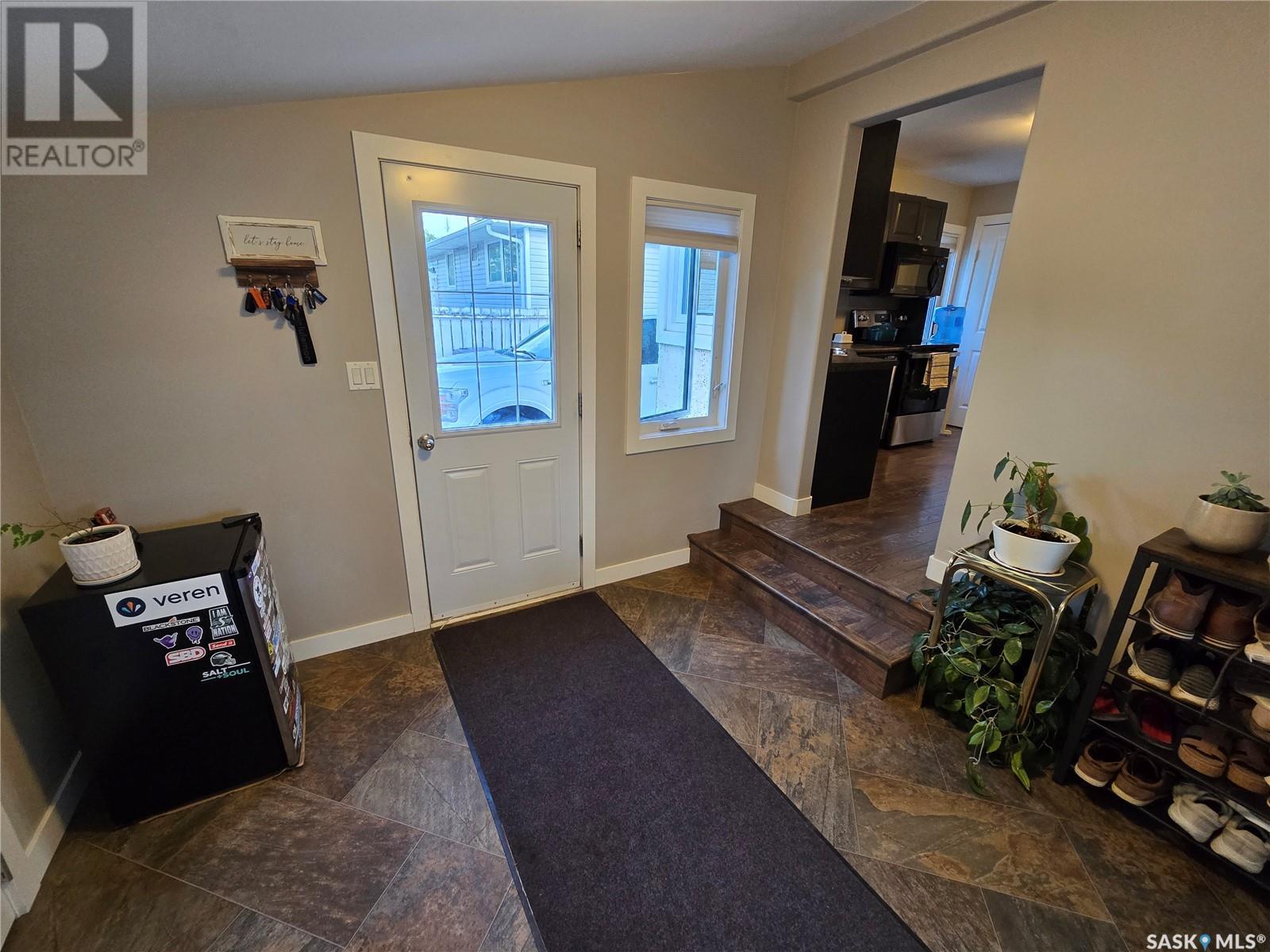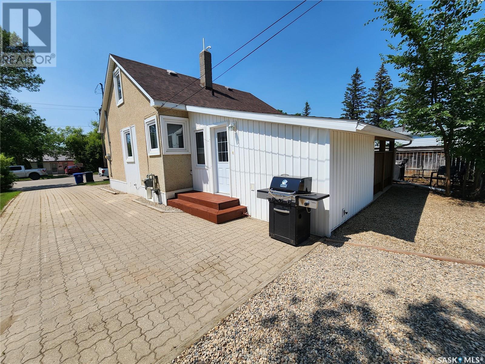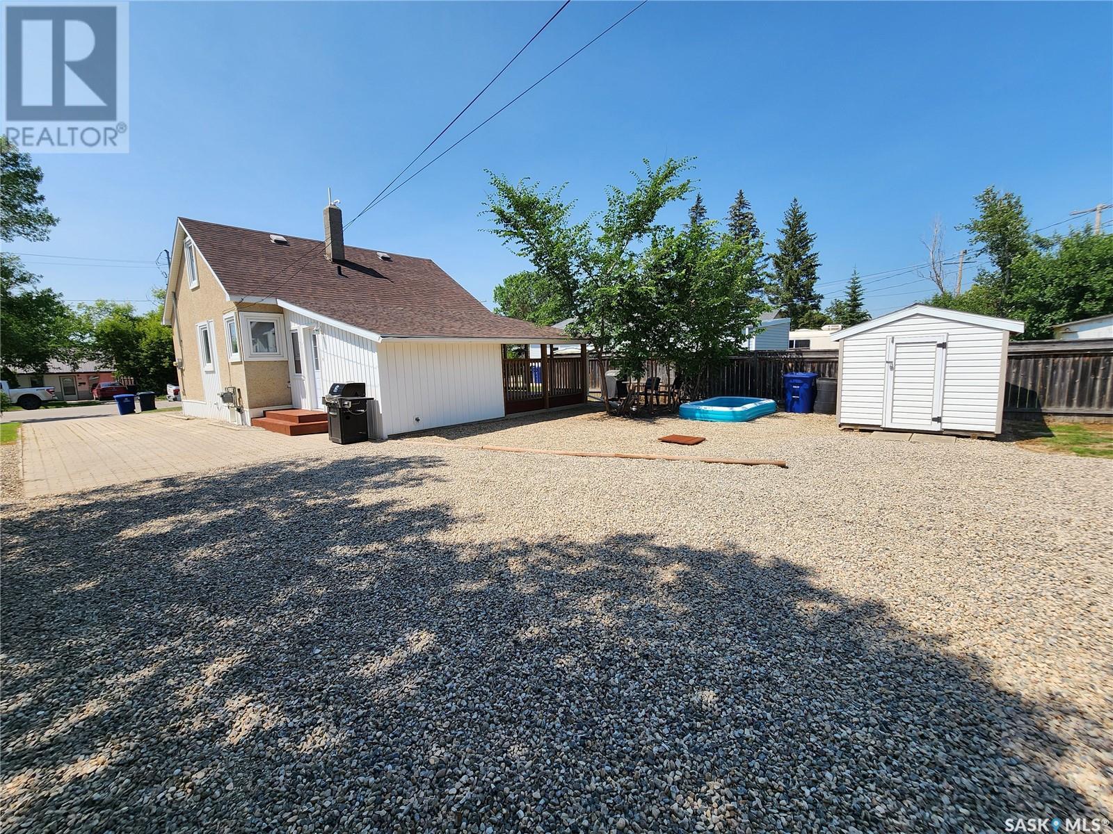 Welcome to 614 3rd Street SE, a beautifully updated and cozy 1½ storey home offering 1081 square feet of smart, stylish living in Weyburn, SK. With a blend of charm and modern upgrades, this property is perfect for first-time homebuyers or families seeking an affordable and move-in ready home. Step inside to discover a spacious back foyer with a large closet and direct access to a covered deck—ideal for entertaining or relaxing. The home features newer flooring, paint, and windows, giving the home a fresh, contemporary feel. The living area is warm and inviting, while the kitchen stands out with rich dark cabinets, a newer stove and dishwasher, and a functional layout that suits everyday life. On the main level, you’ll find one bedroom and a full bathroom. Upstairs, the generous master retreat offers flexible space that could be configured for multiple beds, a play area, or even a home office setup. This level offers privacy and versatility, making it a great fit for various lifestyles and needs. Additional highlights include a washer and dryer approximately one year old, a natural gas BBQ hookup, and a covered firepit area for outdoor enjoyment with the family. The front yard is grassy with a mature tree, adding curb appeal and shade. In contrast, the backyard has been redone with low-maintenance crushed rock, and includes a garden shed and ample space to build a garage. The basement is clean and solid—perfect for future development or ideal for storage and utility use. Located on a quiet stretch of 3rd Street, this home offers quick access to downtown while still enjoying privacy and peaceful surroundings. This welcoming and practical home combines comfort, convenience, and character in one of Weyburn’s most accessible locations. Whether you're starting out or looking to downsize without compromising quality, this home is a must-see. Don’t miss out on this modern, cozy, and affordable home with all the right updates—schedule your showing today! (id:43042)