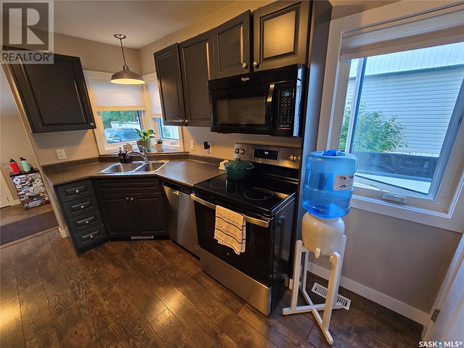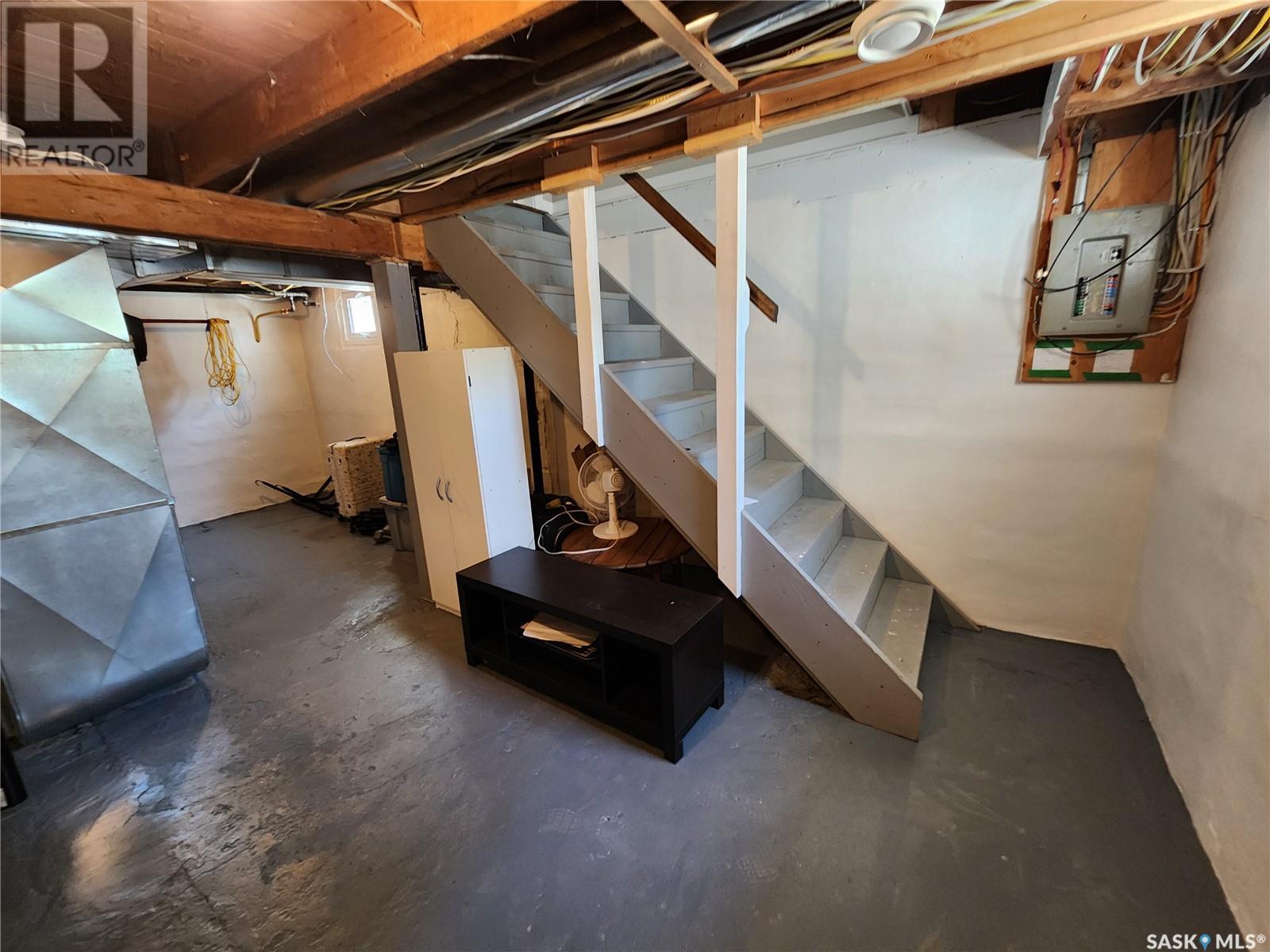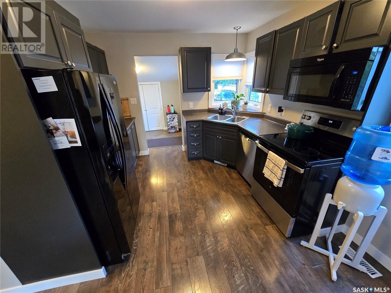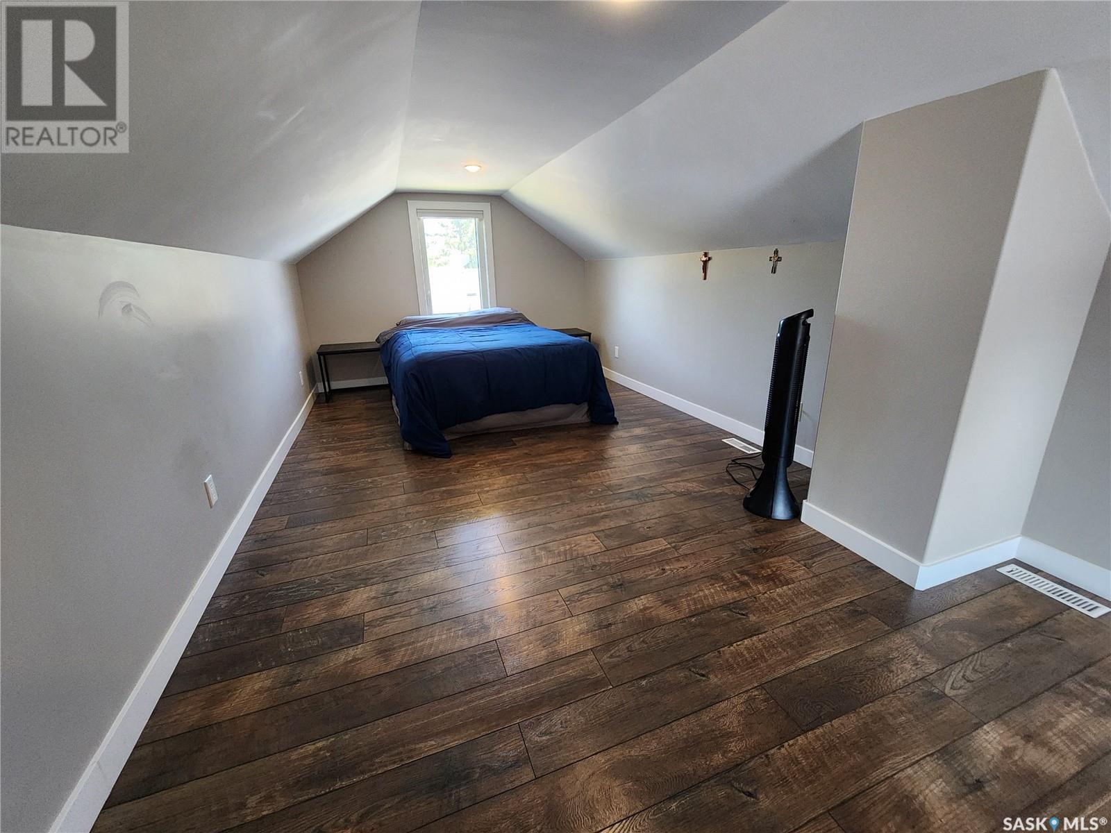 Welcome to 614 3rd Street SE, a beautifully updated and cozy 1½ storey home offering 1081 square feet of smart, stylish living in Weyburn, SK. With a blend of charm and modern upgrades, this property is perfect for first-time homebuyers or families seeking an affordable and move-in ready home. Step inside to discover a spacious back foyer with a large closet and direct access to a covered deck—ideal for entertaining or relaxing. The home features newer flooring, paint, and windows, giving the home a fresh, contemporary feel. The living area is warm and inviting, while the kitchen stands out with rich dark cabinets, a newer stove and dishwasher, and a functional layout that suits everyday life. On the main level, you’ll find one bedroom and a full bathroom. Upstairs, the generous master retreat offers flexible space that could be configured for multiple beds, a play area, or even a home office setup. This level offers privacy and versatility, making it a great fit for various lifestyles and needs. Additional highlights include a washer and dryer approximately one year old, a natural gas BBQ hookup, and a covered firepit area for outdoor enjoyment with the family. The front yard is grassy with a mature tree, adding curb appeal and shade. In contrast, the backyard has been redone with low-maintenance crushed rock, and includes a garden shed and ample space to build a garage. The basement is clean and solid—perfect for future development or ideal for storage and utility use. Located on a quiet stretch of 3rd Street, this home offers quick access to downtown while still enjoying privacy and peaceful surroundings. This welcoming and practical home combines comfort, convenience, and character in one of Weyburn’s most accessible locations. Whether you're starting out or looking to downsize without compromising quality, this home is a must-see. Don’t miss out on this modern, cozy, and affordable home with all the right updates—schedule your showing today! (id:43042)