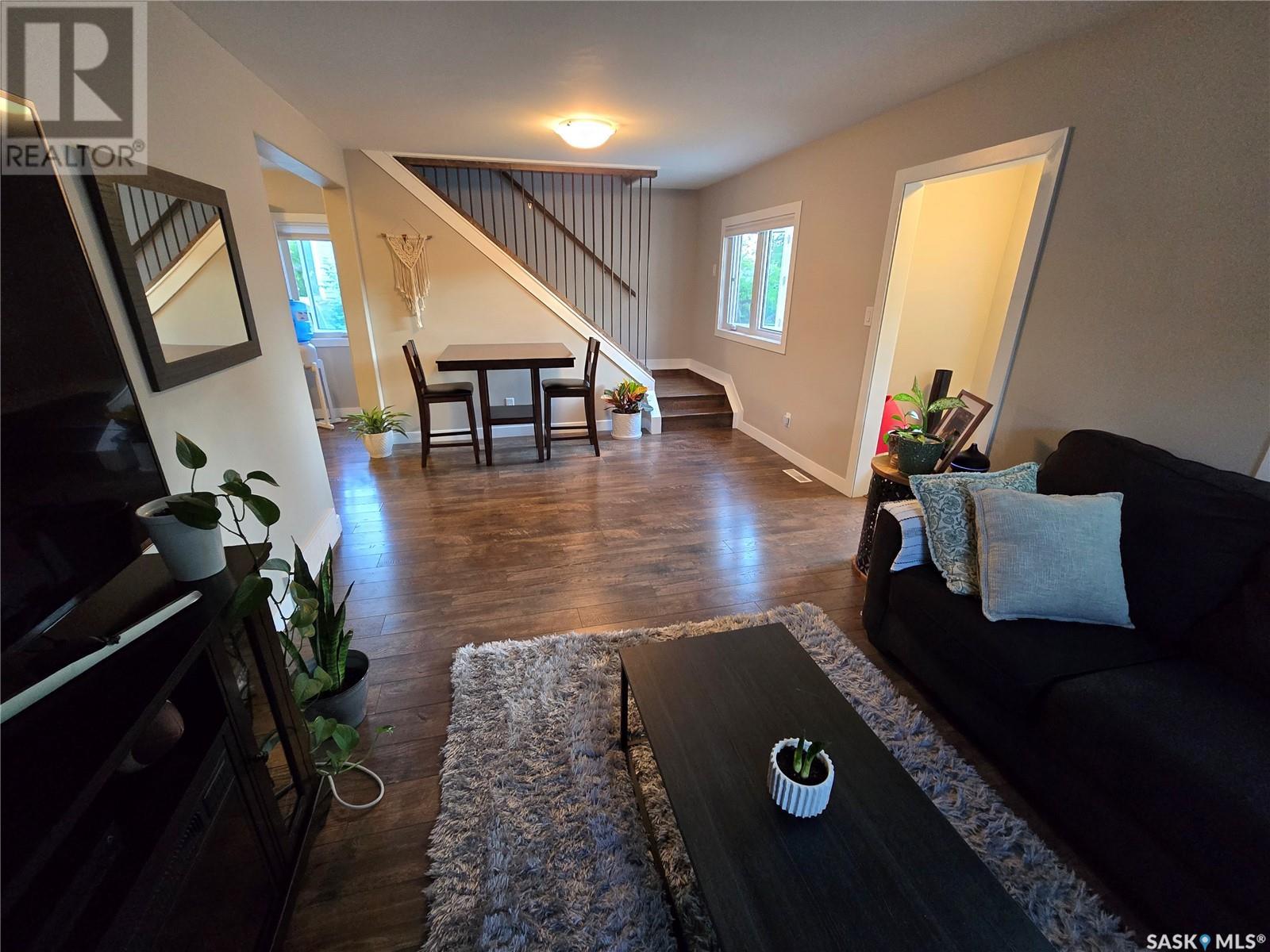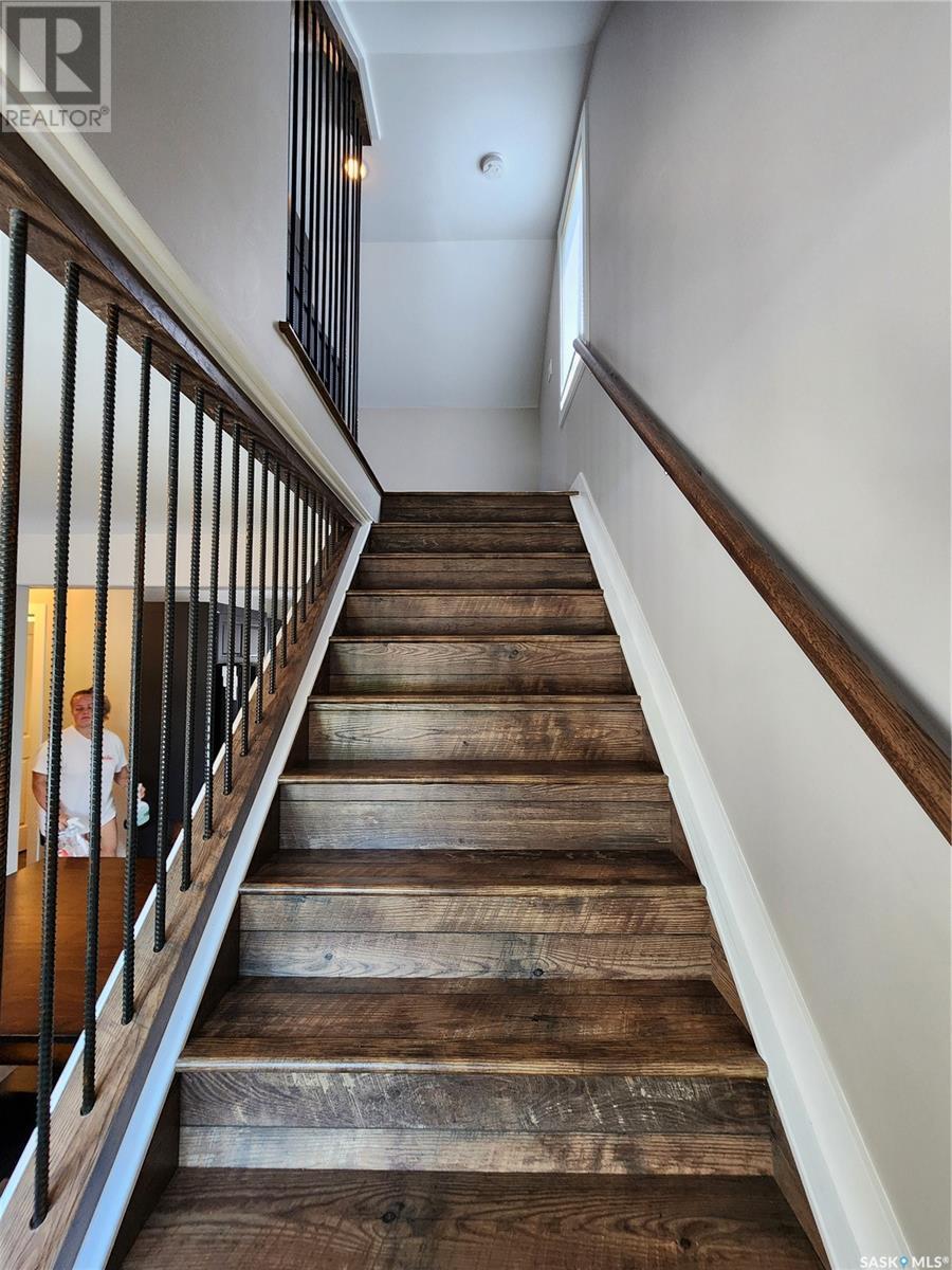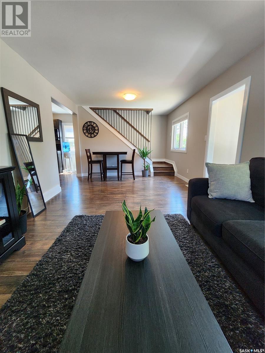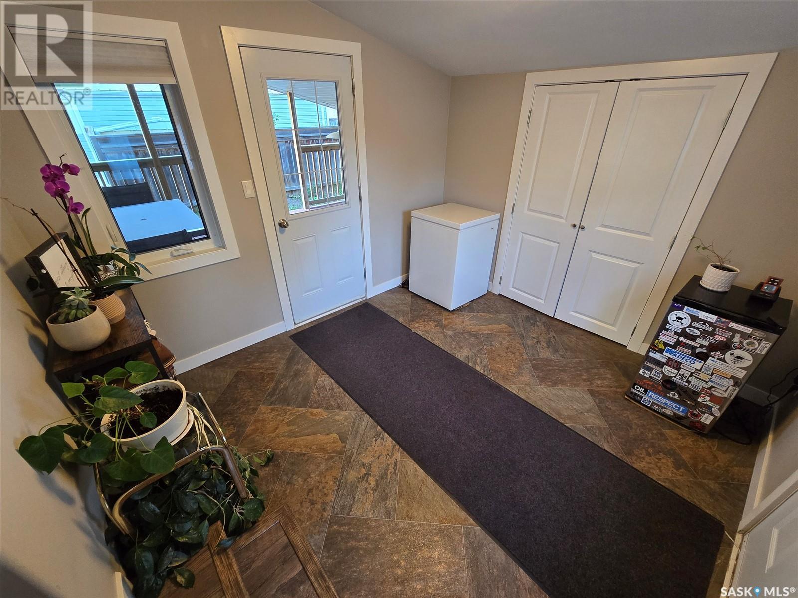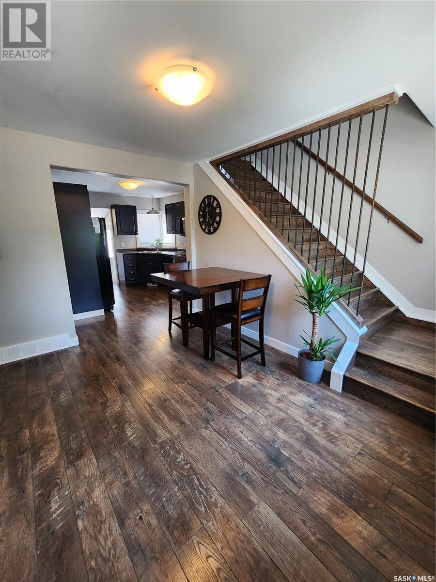 Welcome to 614 3rd Street SE, a beautifully updated and cozy 1½ storey home offering 1081 square feet of smart, stylish living in Weyburn, SK. With a blend of charm and modern upgrades, this property is perfect for first-time homebuyers or families seeking an affordable and move-in ready home. Step inside to discover a spacious back foyer with a large closet and direct access to a covered deck—ideal for entertaining or relaxing. The home features newer flooring, paint, and windows, giving the home a fresh, contemporary feel. The living area is warm and inviting, while the kitchen stands out with rich dark cabinets, a newer stove and dishwasher, and a functional layout that suits everyday life. On the main level, you’ll find one bedroom and a full bathroom. Upstairs, the generous master retreat offers flexible space that could be configured for multiple beds, a play area, or even a home office setup. This level offers privacy and versatility, making it a great fit for various lifestyles and needs. Additional highlights include a washer and dryer approximately one year old, a natural gas BBQ hookup, and a covered firepit area for outdoor enjoyment with the family. The front yard is grassy with a mature tree, adding curb appeal and shade. In contrast, the backyard has been redone with low-maintenance crushed rock, and includes a garden shed and ample space to build a garage. The basement is clean and solid—perfect for future development or ideal for storage and utility use. Located on a quiet stretch of 3rd Street, this home offers quick access to downtown while still enjoying privacy and peaceful surroundings. This welcoming and practical home combines comfort, convenience, and character in one of Weyburn’s most accessible locations. Whether you're starting out or looking to downsize without compromising quality, this home is a must-see. Don’t miss out on this modern, cozy, and affordable home with all the right updates—schedule your showing today! (id:43042)