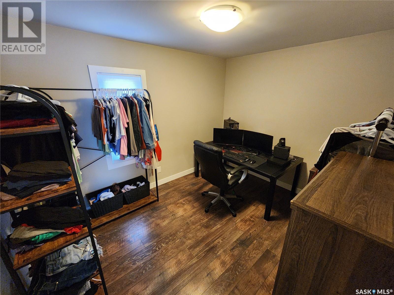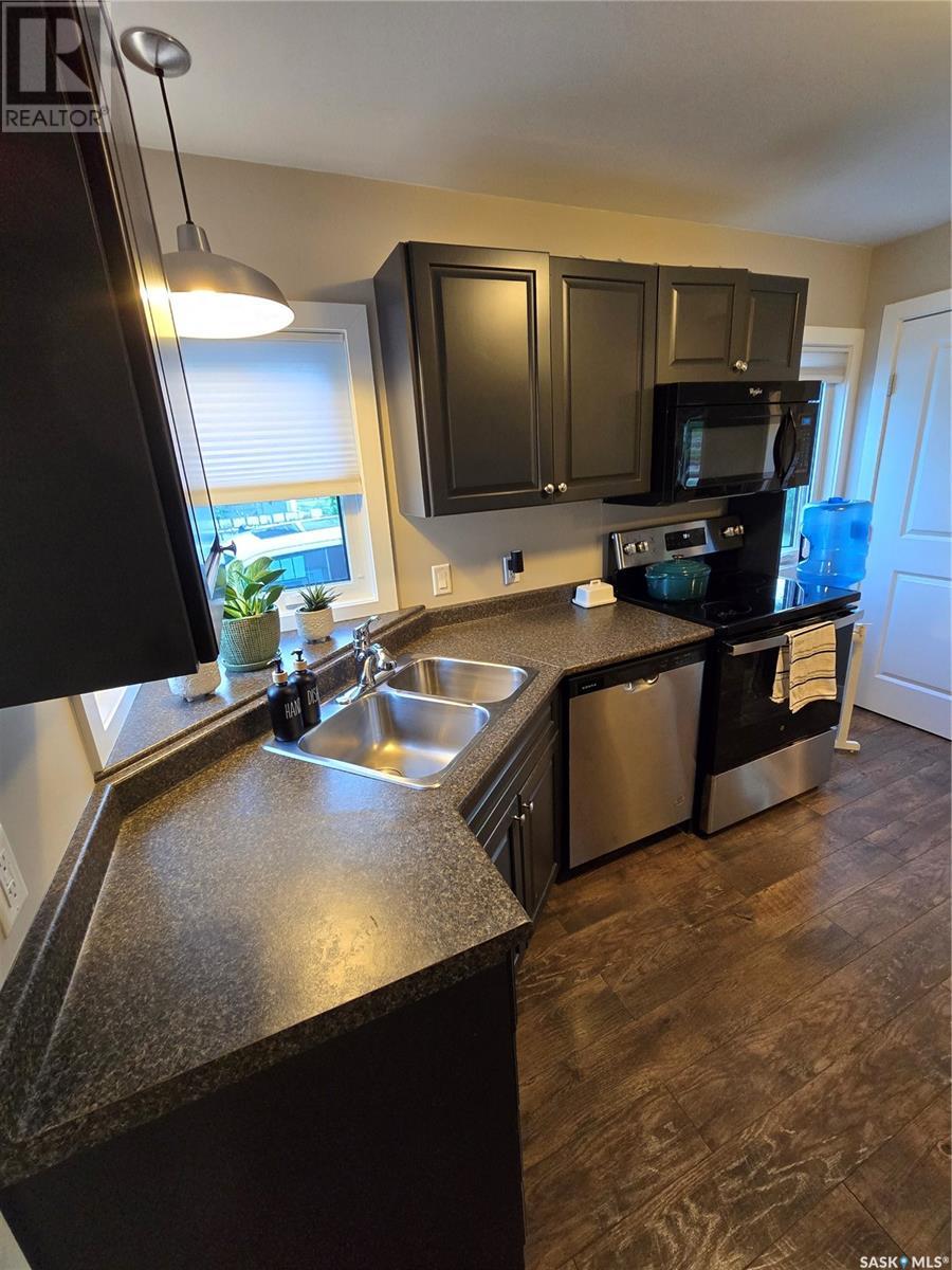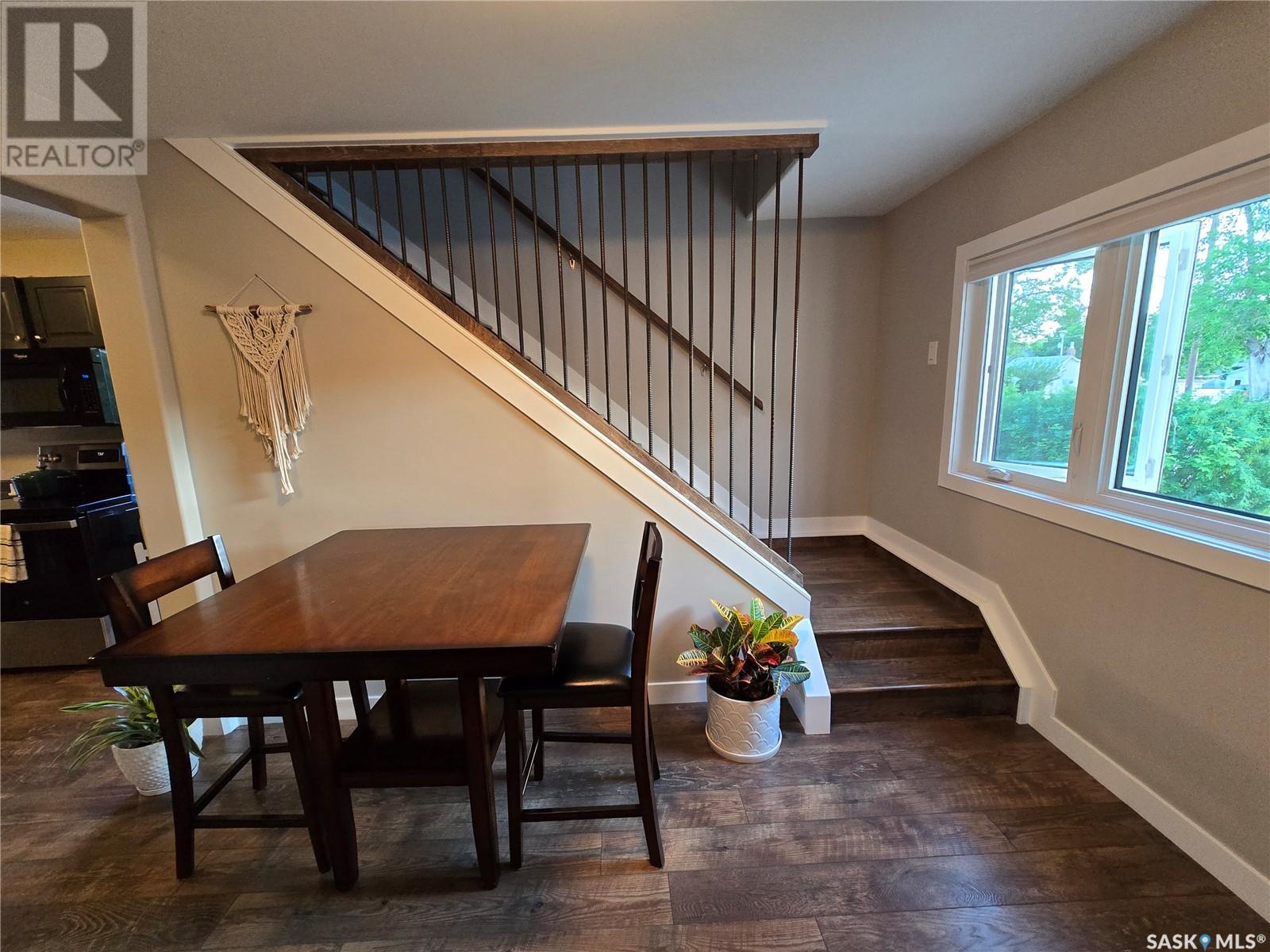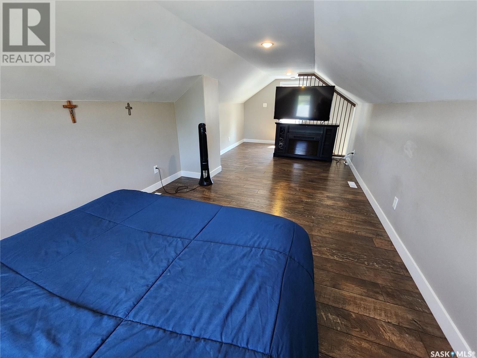 Welcome to 614 3rd Street SE, a beautifully updated and cozy 1½ storey home offering 1081 square feet of smart, stylish living in Weyburn, SK. With a blend of charm and modern upgrades, this property is perfect for first-time homebuyers or families seeking an affordable and move-in ready home. Step inside to discover a spacious back foyer with a large closet and direct access to a covered deck—ideal for entertaining or relaxing. The home features newer flooring, paint, and windows, giving the home a fresh, contemporary feel. The living area is warm and inviting, while the kitchen stands out with rich dark cabinets, a newer stove and dishwasher, and a functional layout that suits everyday life. On the main level, you’ll find one bedroom and a full bathroom. Upstairs, the generous master retreat offers flexible space that could be configured for multiple beds, a play area, or even a home office setup. This level offers privacy and versatility, making it a great fit for various lifestyles and needs. Additional highlights include a washer and dryer approximately one year old, a natural gas BBQ hookup, and a covered firepit area for outdoor enjoyment with the family. The front yard is grassy with a mature tree, adding curb appeal and shade. In contrast, the backyard has been redone with low-maintenance crushed rock, and includes a garden shed and ample space to build a garage. The basement is clean and solid—perfect for future development or ideal for storage and utility use. Located on a quiet stretch of 3rd Street, this home offers quick access to downtown while still enjoying privacy and peaceful surroundings. This welcoming and practical home combines comfort, convenience, and character in one of Weyburn’s most accessible locations. Whether you're starting out or looking to downsize without compromising quality, this home is a must-see. Don’t miss out on this modern, cozy, and affordable home with all the right updates—schedule your showing today! (id:43042)