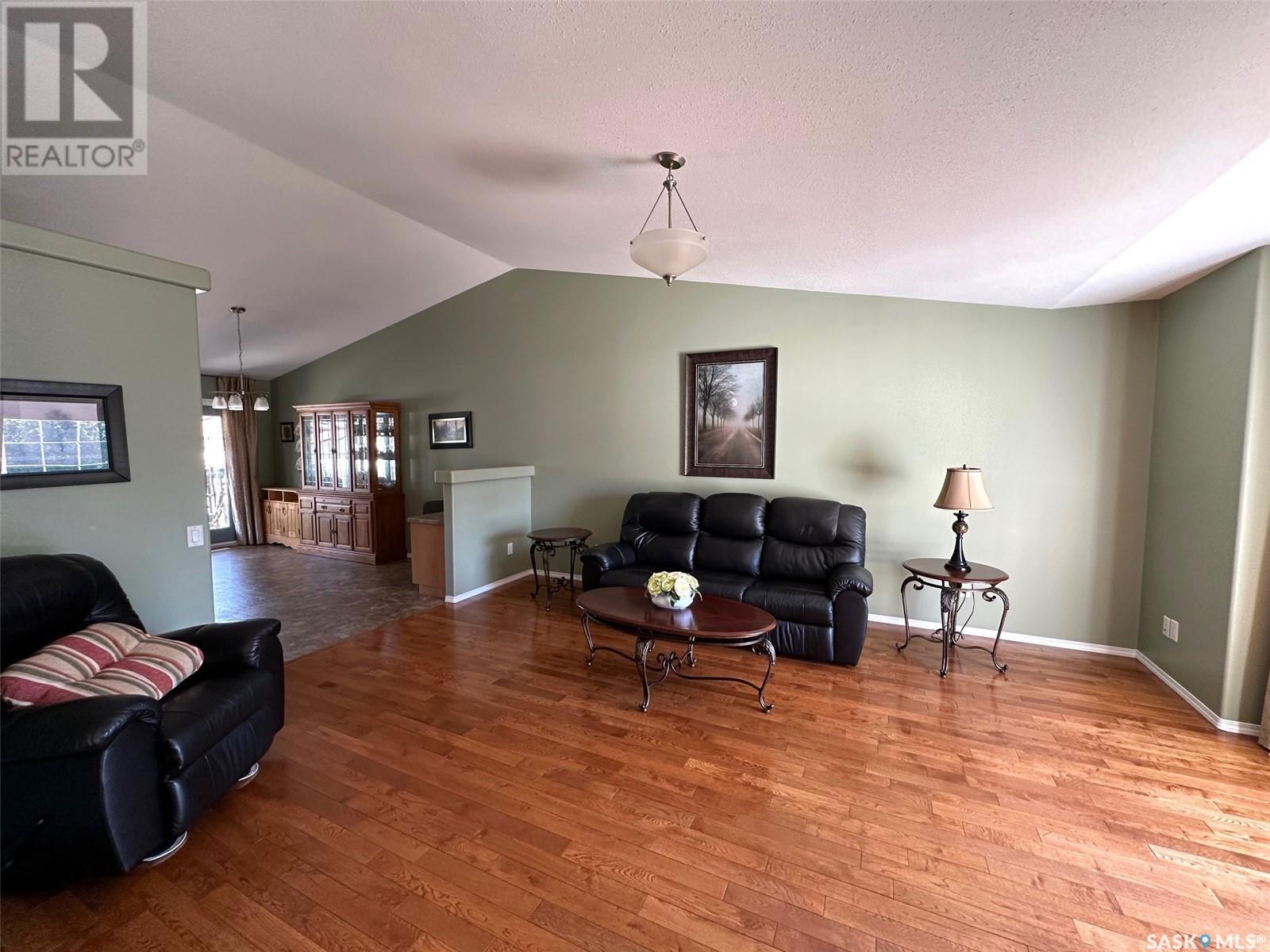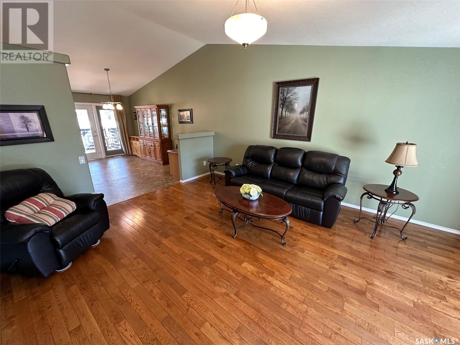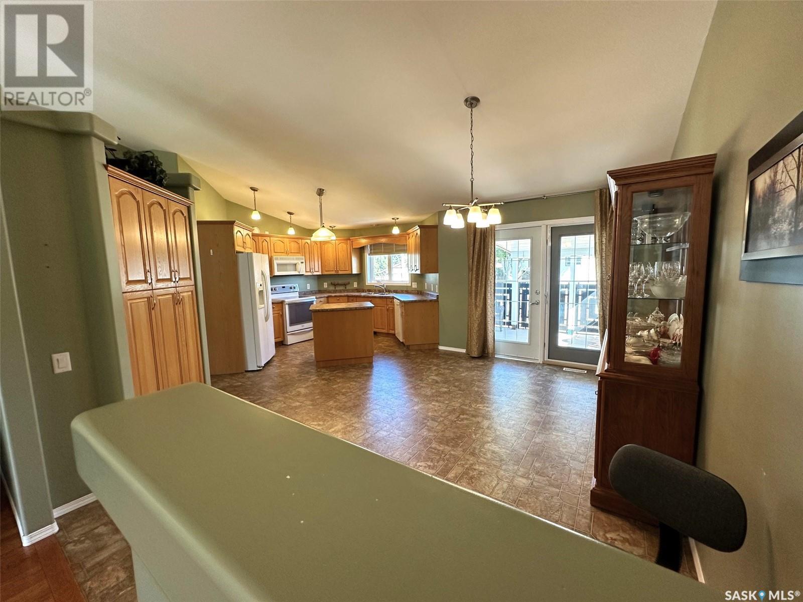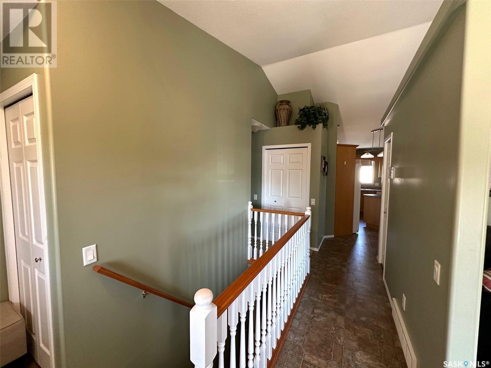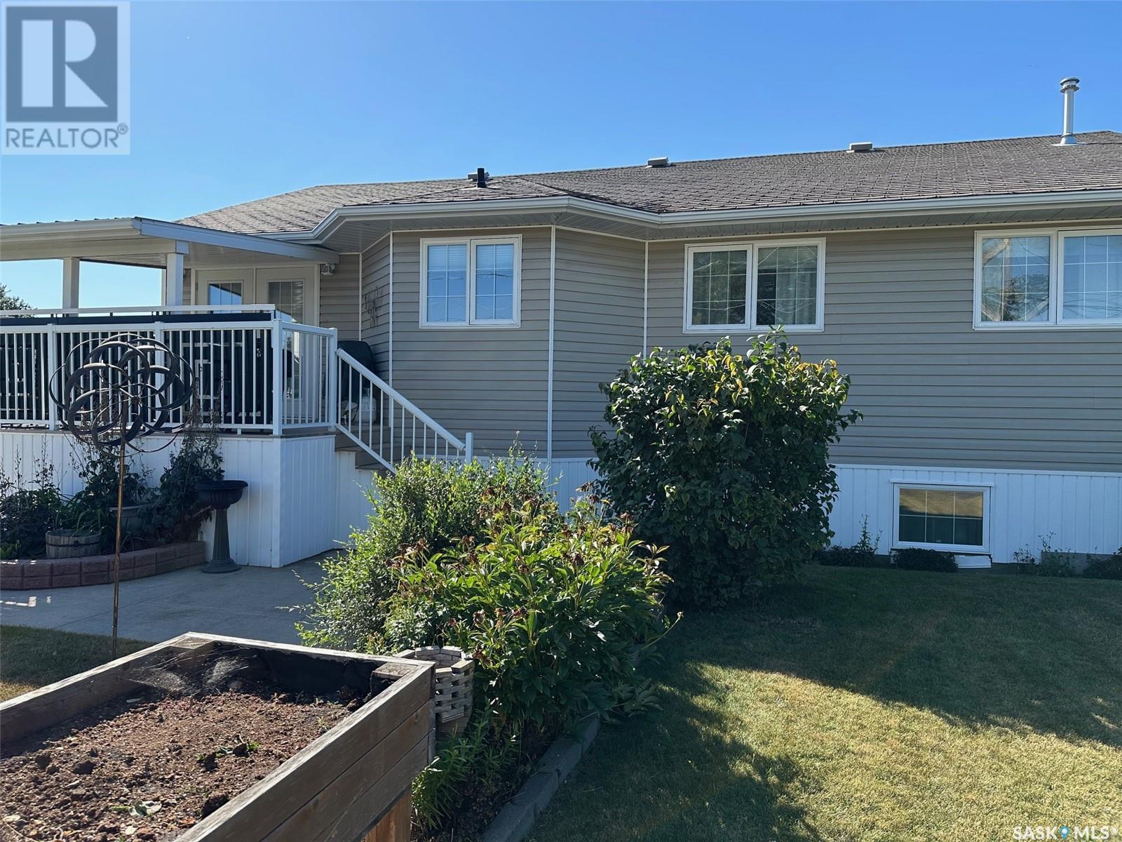 Welcome to 614 Hudson St in the charming town of Hudson Bay, SK. This beautiful home, built onsite in 2007, is finished from top to bottom and offers a spacious and comfortable living environment. With 5 bedrooms and 3 bathrooms, there’s plenty of room for family and guests. The main living area features vaulted ceilings, creating an open and airy atmosphere. The large dining room can easily accommodate a farm table for 8-10 people, perfect for gatherings. The living room boasts hardwood flooring. Step outside from the dining room onto a covered deck with privacy fencing, ideal for outdoor dining and relaxation. The main floor also includes a convenient laundry room. The lower level is a versatile space with endless possibilities for entertaining, whether you want to set up a pool table, quilting frame, or extra mattresses for guests. Large windows provide great egress and natural light, making the space feel bright and welcoming. Outside, you’ll find a covered deck, raised garden beds, and perennials, all within a fenced yard. The concrete driveway leads to an attached large single-car heated garage. The yard is beautifully landscaped with mature trees in the front and back, sidewalks, underground sprinklers, and a shed, completing this wonderful property. (id:43042)