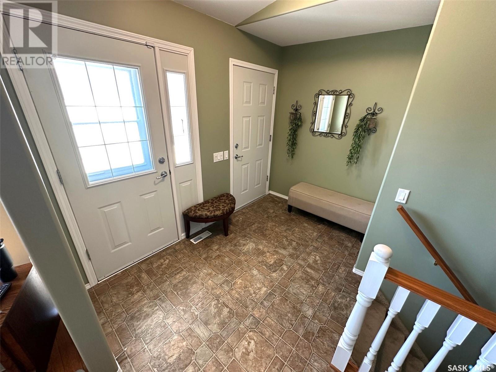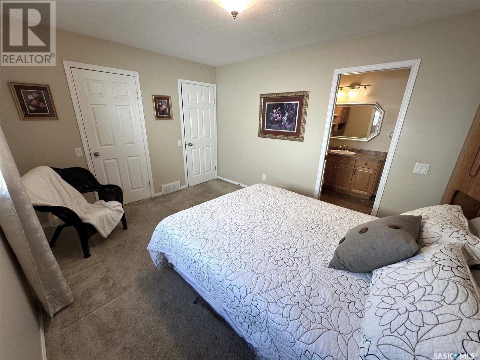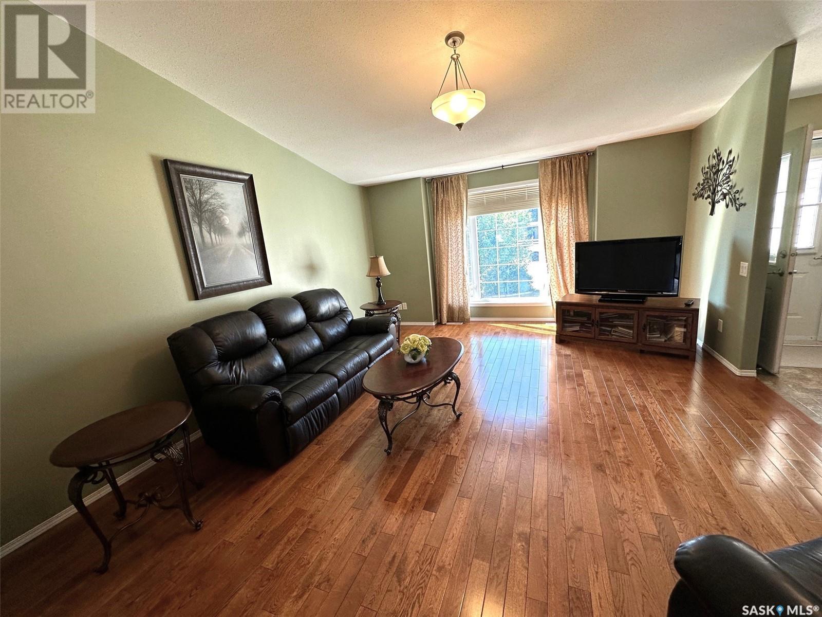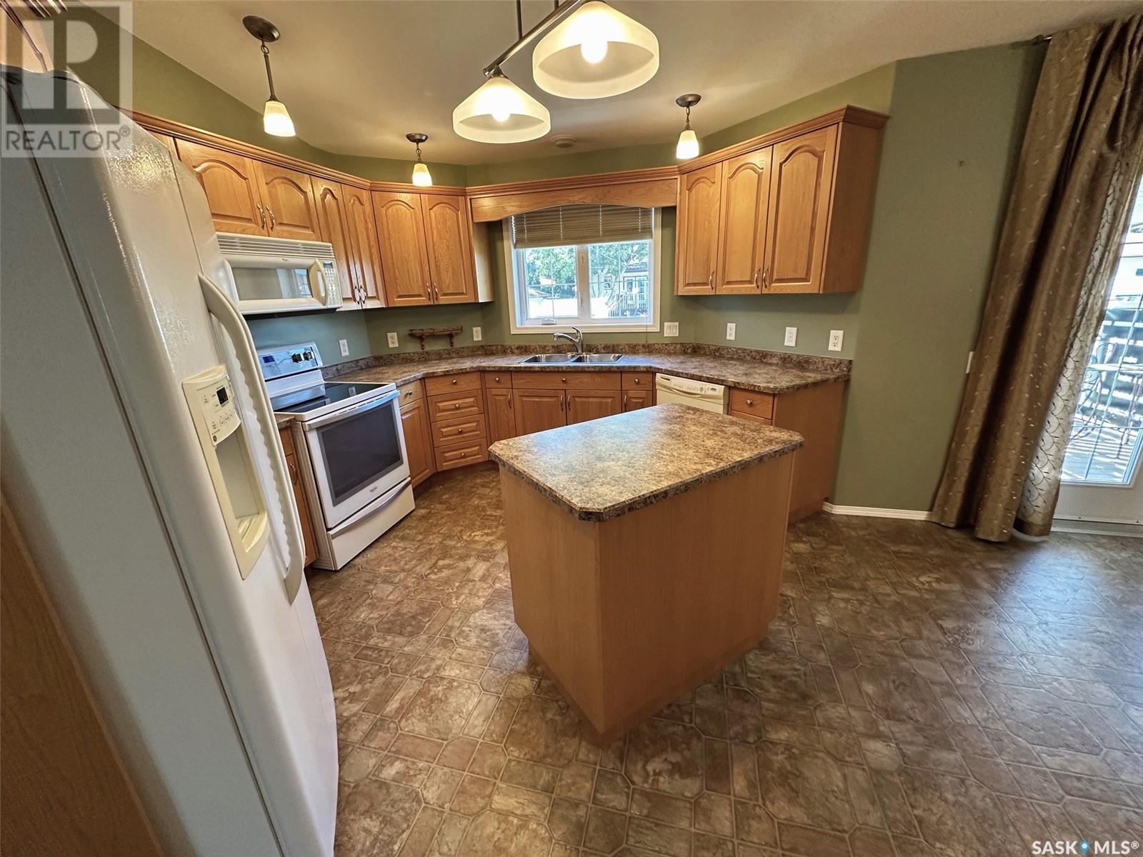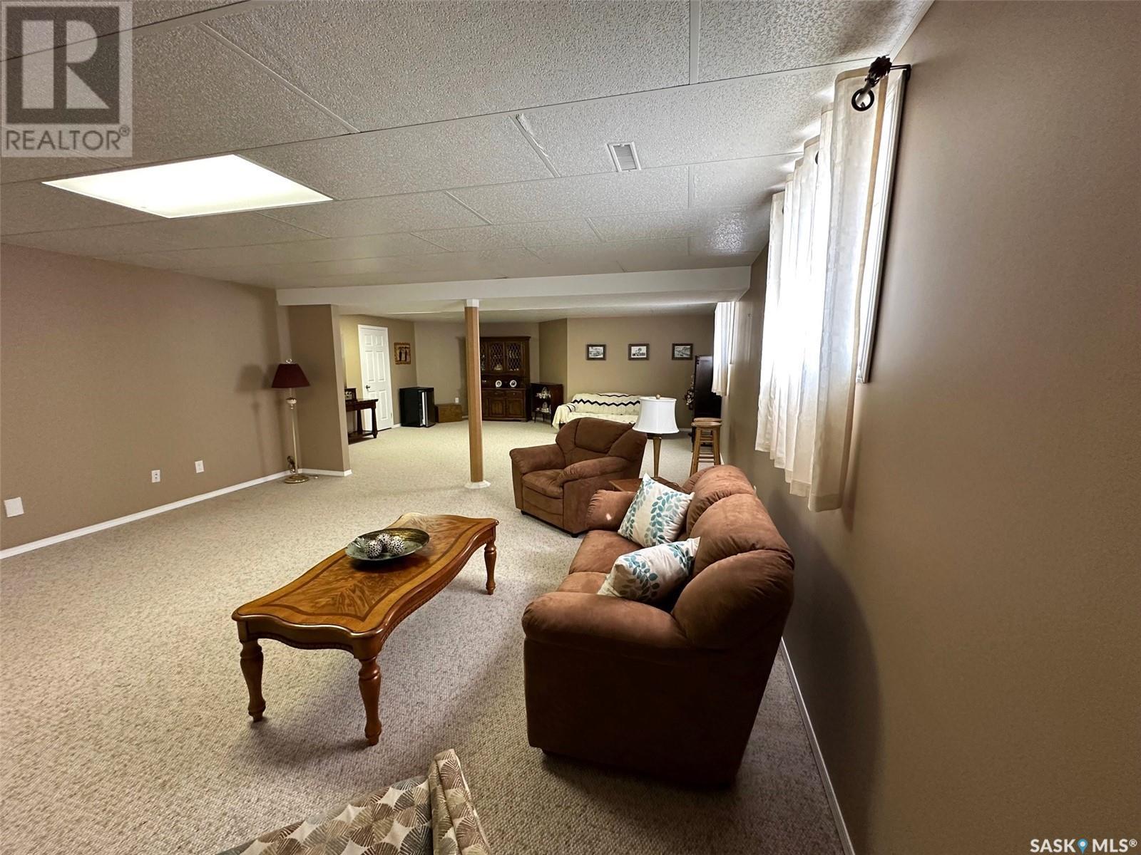 Welcome to 614 Hudson St in the charming town of Hudson Bay, SK. This beautiful home, built onsite in 2007, is finished from top to bottom and offers a spacious and comfortable living environment. With 5 bedrooms and 3 bathrooms, there’s plenty of room for family and guests. The main living area features vaulted ceilings, creating an open and airy atmosphere. The large dining room can easily accommodate a farm table for 8-10 people, perfect for gatherings. The living room boasts hardwood flooring. Step outside from the dining room onto a covered deck with privacy fencing, ideal for outdoor dining and relaxation. The main floor also includes a convenient laundry room. The lower level is a versatile space with endless possibilities for entertaining, whether you want to set up a pool table, quilting frame, or extra mattresses for guests. Large windows provide great egress and natural light, making the space feel bright and welcoming. Outside, you’ll find a covered deck, raised garden beds, and perennials, all within a fenced yard. The concrete driveway leads to an attached large single-car heated garage. The yard is beautifully landscaped with mature trees in the front and back, sidewalks, underground sprinklers, and a shed, completing this wonderful property. (id:43042)