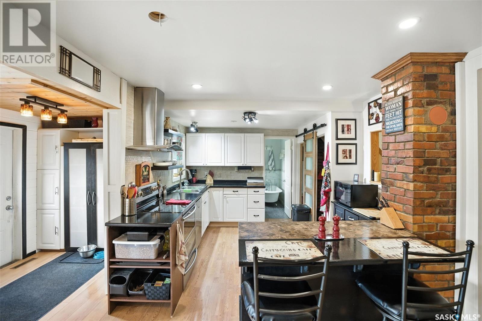 Welcome to the perfect blend of character and modern comfort in this beautifully updated 3-bedroom, 1-bath home in Bruno, Saskatchewan. This property is located in close Proximity to the K-12 Bruno Central School. Sitting on a spacious 65’ x 132’ lot, this 1,094 sq ft home has been extensively renovated by a professional contractor — while still preserving its 1937 charm. From the moment you arrive, this home welcomes you with two distinct entrances: A covered front deck leading into a bright, spacious foyer Or a serene walk past a fountain, garden boxes, and flowers onto your two-tier back deck Inside, the large updated kitchen is the heart of the home — complete with a center island, stainless steel appliances, a double oven with hood fan, and a sun-filled dining area. The main floor bathroom is a standout feature, boasting a clawfoot tub, enclosed tiled shower, and double sinks. The living room offers a cozy space with a bay window and a stylish feature wall. You’ll love the main floor laundry room with extra storage, while upstairs offers a primary bedroom with walk-in closet and private balcony access — the perfect place to enjoy prairie views and small-town sunsets. A second bedroom upstairs also features its own walk-in closet, and the basement offers a third bedroom, a cold room pantry, and loads of storage space. Mechanical upgrades include a high-efficiency furnace, central air, and 100 amp service. The fully fenced backyard is a true retreat, with two decks, a patio area, garden beds, cherry trees, and a flowing fountain. The attached single garage is insulated and heated, and there’s also a 12' x 14' shed for extra storage. Located just 20 minutes from Humboldt and about an hour from Saskatoon, Bruno is a quiet but active community near Jansen, Colonsay, and Lanigan mine sites — making it ideal for commuters looking for small-town life with big-time convenience. (id:43042)