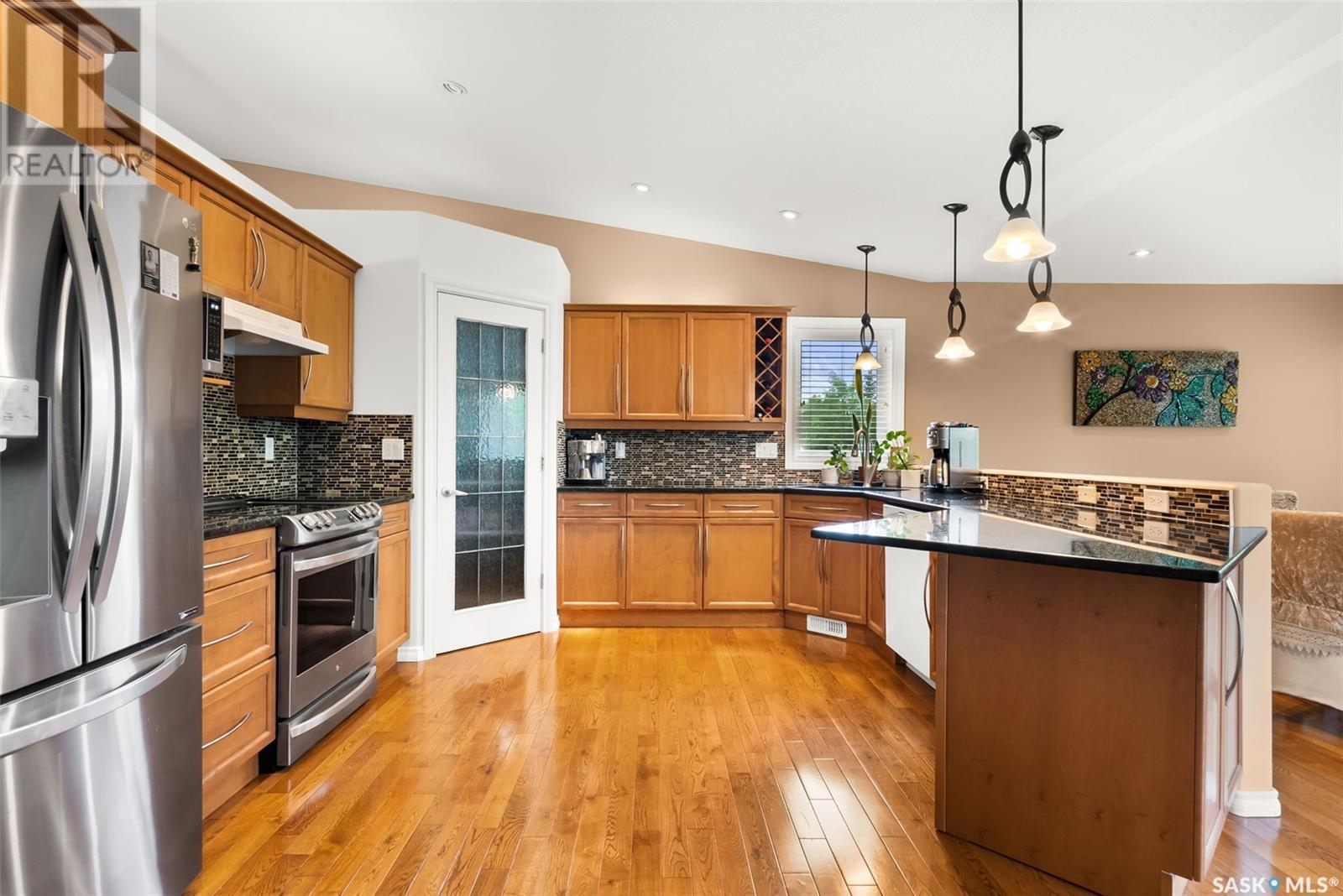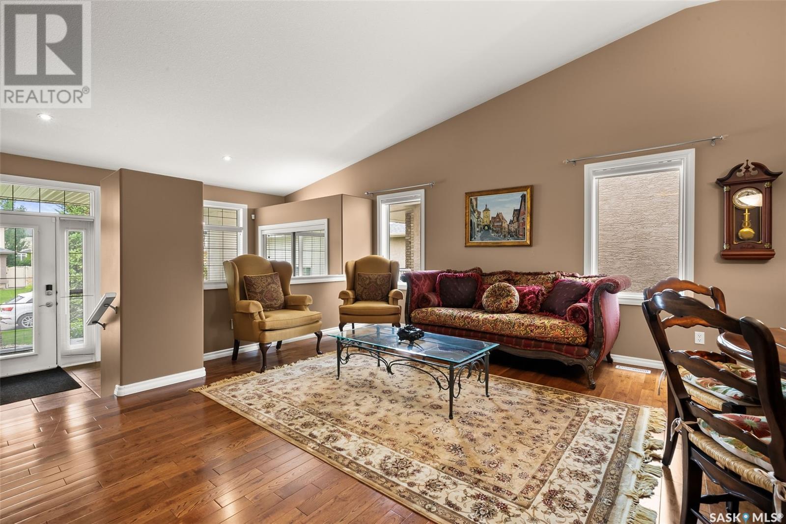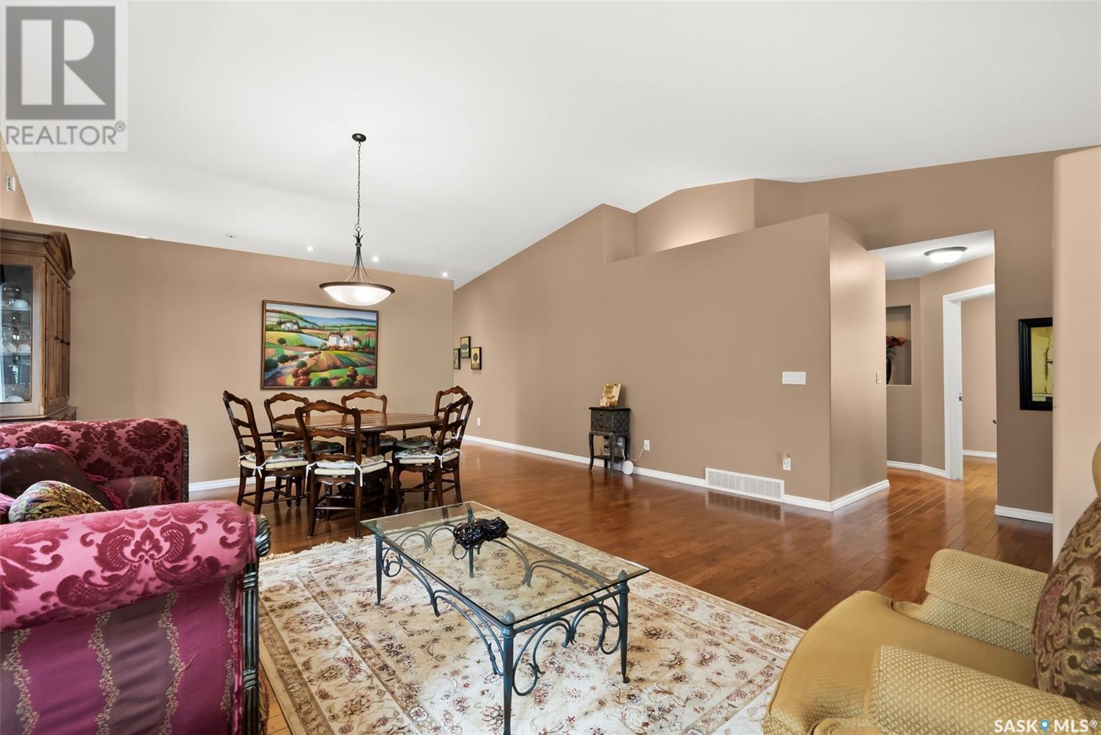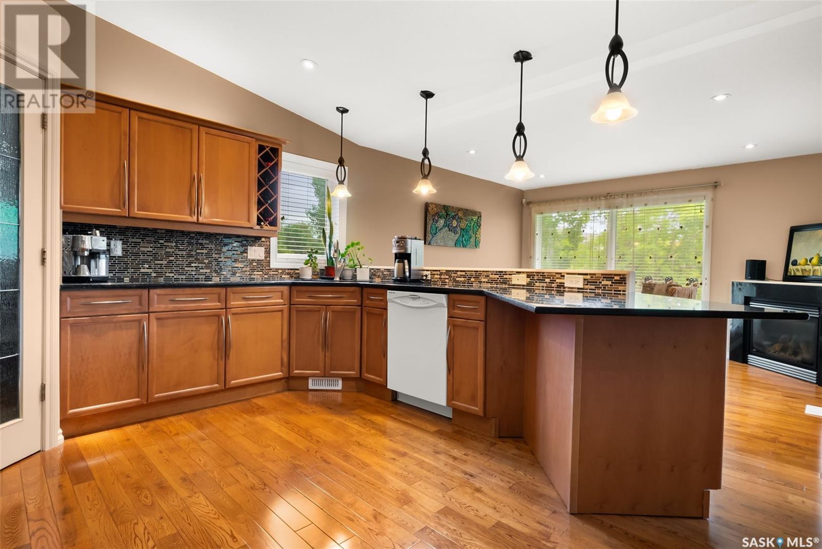 Welcome to 6263 Wascana Court Crescent, a beautifully maintained bungalow in the prestigious and established neighbourhood of Wascana View. This 1,633 sq ft home sits on a 5,732 sq ft lot and offers a perfect blend of comfort, space, and style. With fantastic curb appeal and a charming front patio, this home welcomes you into a bright and airy main floor featuring vaulted ceilings, large windows, and hardwood flooring throughout most of the space. The kitchen is warm and inviting with rich cabinetry, stone countertops, stainless steel appliances, a corner pantry, and an abundance of natural light. The open concept layout flows seamlessly into the dining and living areas, making it ideal for entertaining. The main floor hosts 2 spacious bedrooms and 2 full bathrooms, including a generous primary suite complete with walk-in closet and ensuite. Main floor laundry adds to the convenience. The fully developed lower level feels like an extension of the main floor with its expansive open layout, offering two more bedrooms, a third bathroom, and a massive storage room. Step outside to enjoy the low maintenance, fully fenced backyard with a covered deck, lower patio, garden space, and beautifully maintained flower beds. This are is made for enjoying perfect summer days, in a fairly low maintenance yard giving you more time to relax and enjoy. With a double attached garage that includes additional storage areas, this home offers everything you need in one of Regina’s most sought after communities. This is your chance to call this property home. (id:43042)