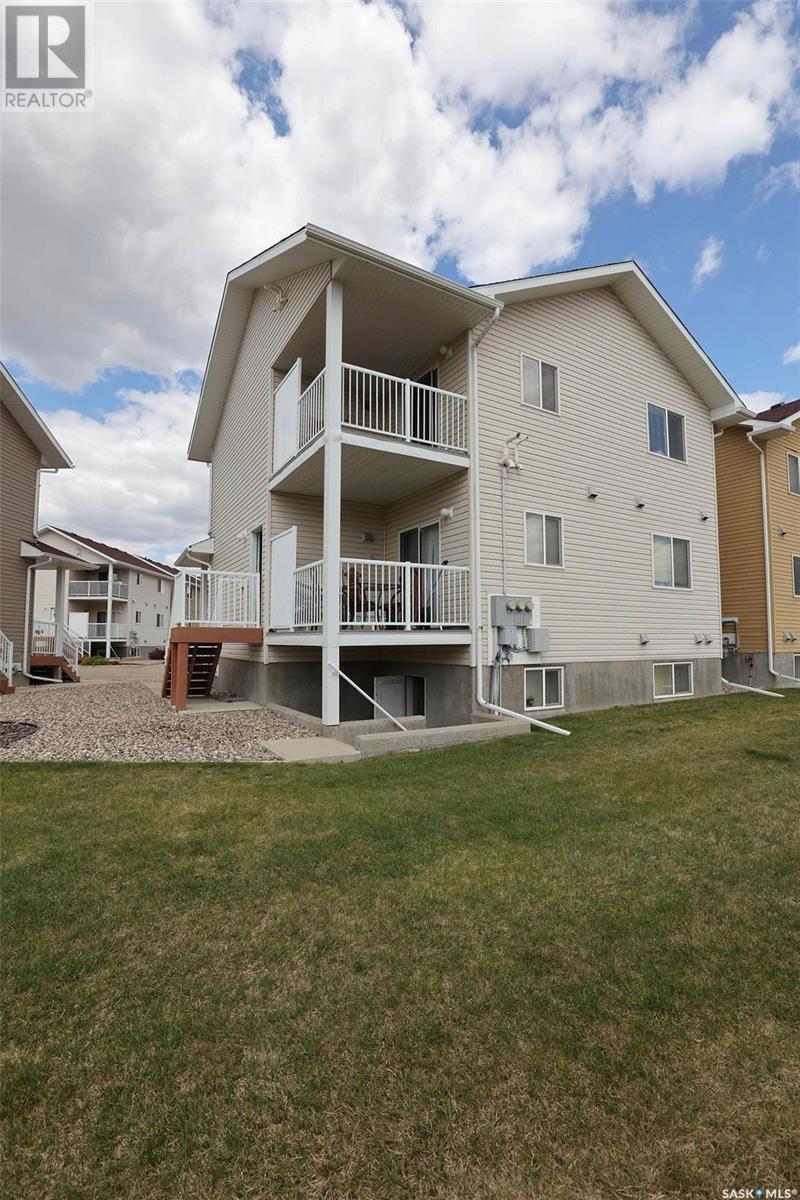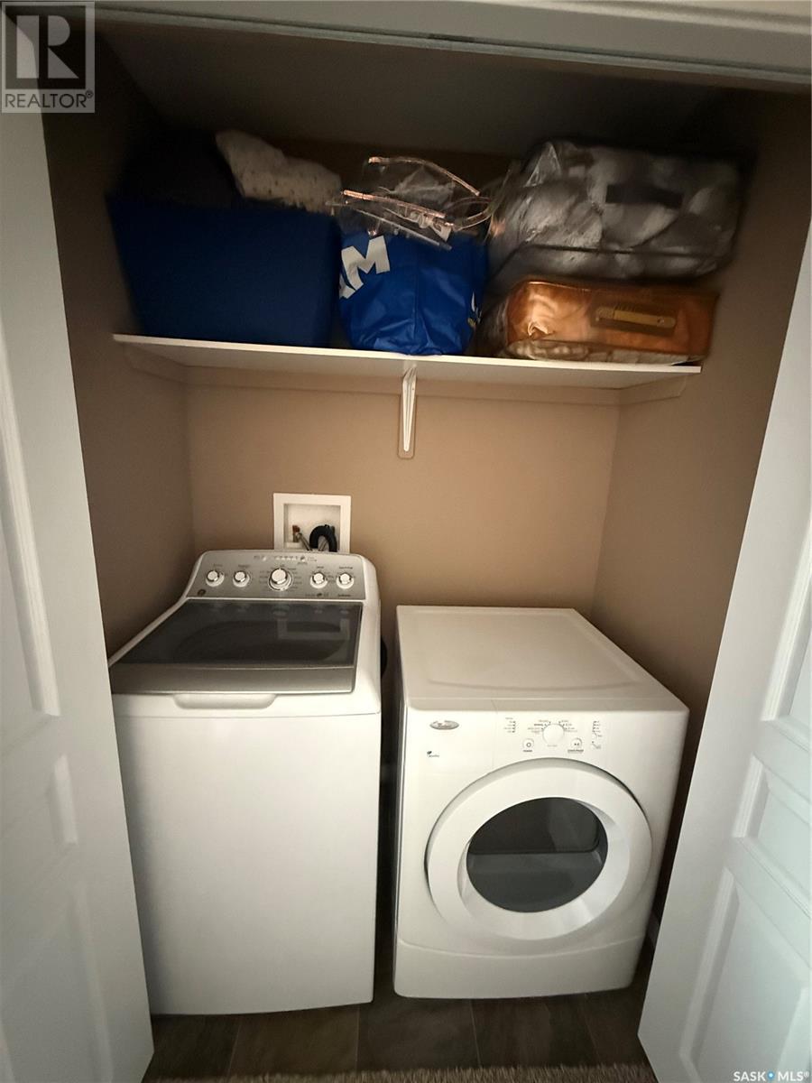 $245 MonthlyWelcome to this immaculate condominium located in the desirable Crosswinds Development in Harbour Landing. This smoke-free and pet-free unit is move-in ready. The open-concept main living area features stylish laminate flooring and large windows that fill the space with natural light. The bright kitchen showcases white cabinetry, garburator, ample counter space, and a built-in dishwasher, with all appliances included. Patio doors lead to a private, enclosed outdoor space with a durable PVC deck that faces south—providing sun-filled enjoyment and added privacy, away from the parking lot. The unit offers two well-appointed bedrooms, including a spacious primary bedroom highlighted by double closets. The full bathroom includes a generous vanity, and the convenience of in-suite laundry is provided with a dedicated washer and dryer. Additional storage can be found in the utility area, which also houses the furnace and central air conditioning for year-round comfort. Ideally located just minutes from shopping, restaurants, groceries, the library, schools and scenic walking paths, this stylish and affordable condo offers the perfect blend of comfort, privacy, and convenience. Don’t miss out—contact us today to schedule your private viewing! (id:43042)
