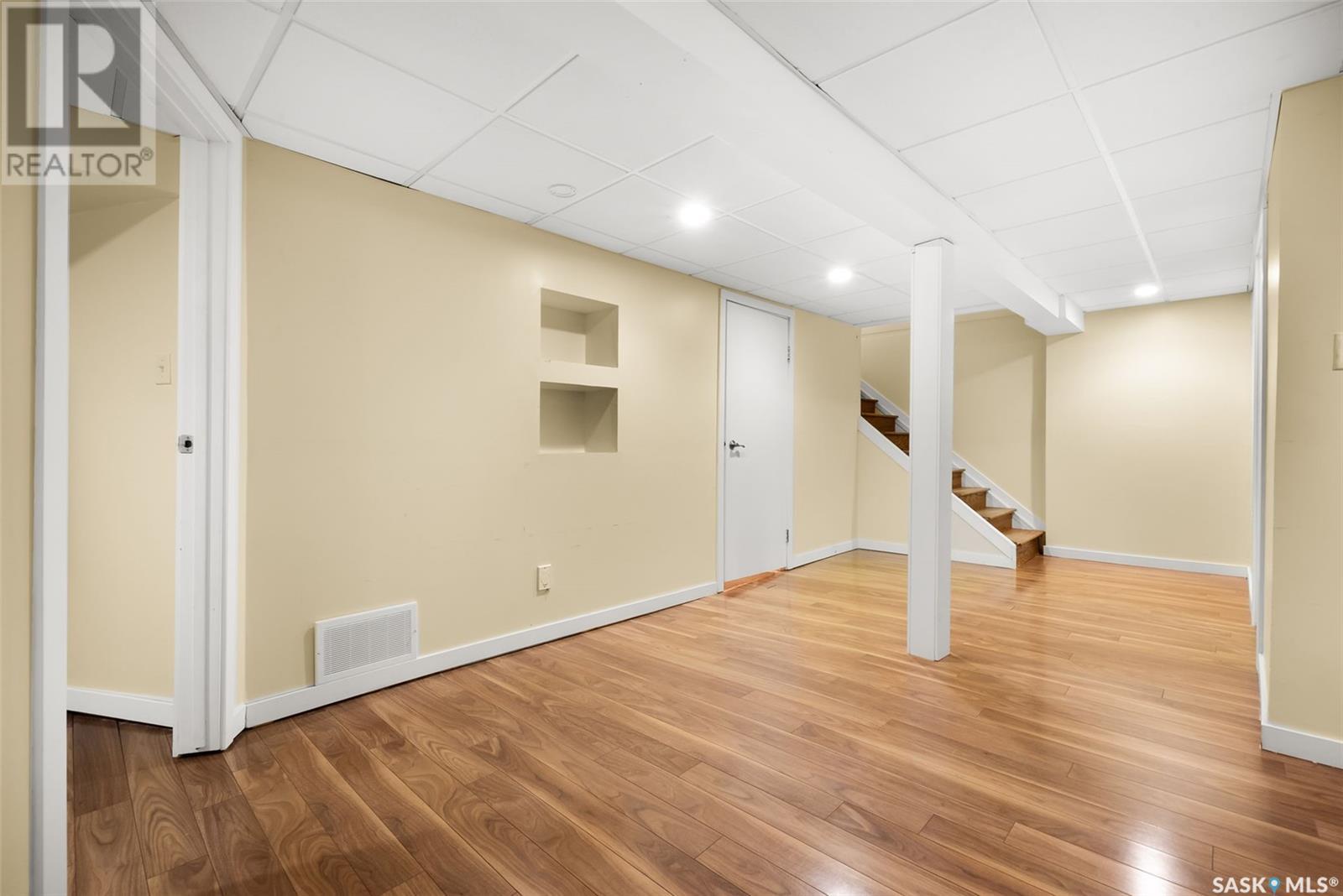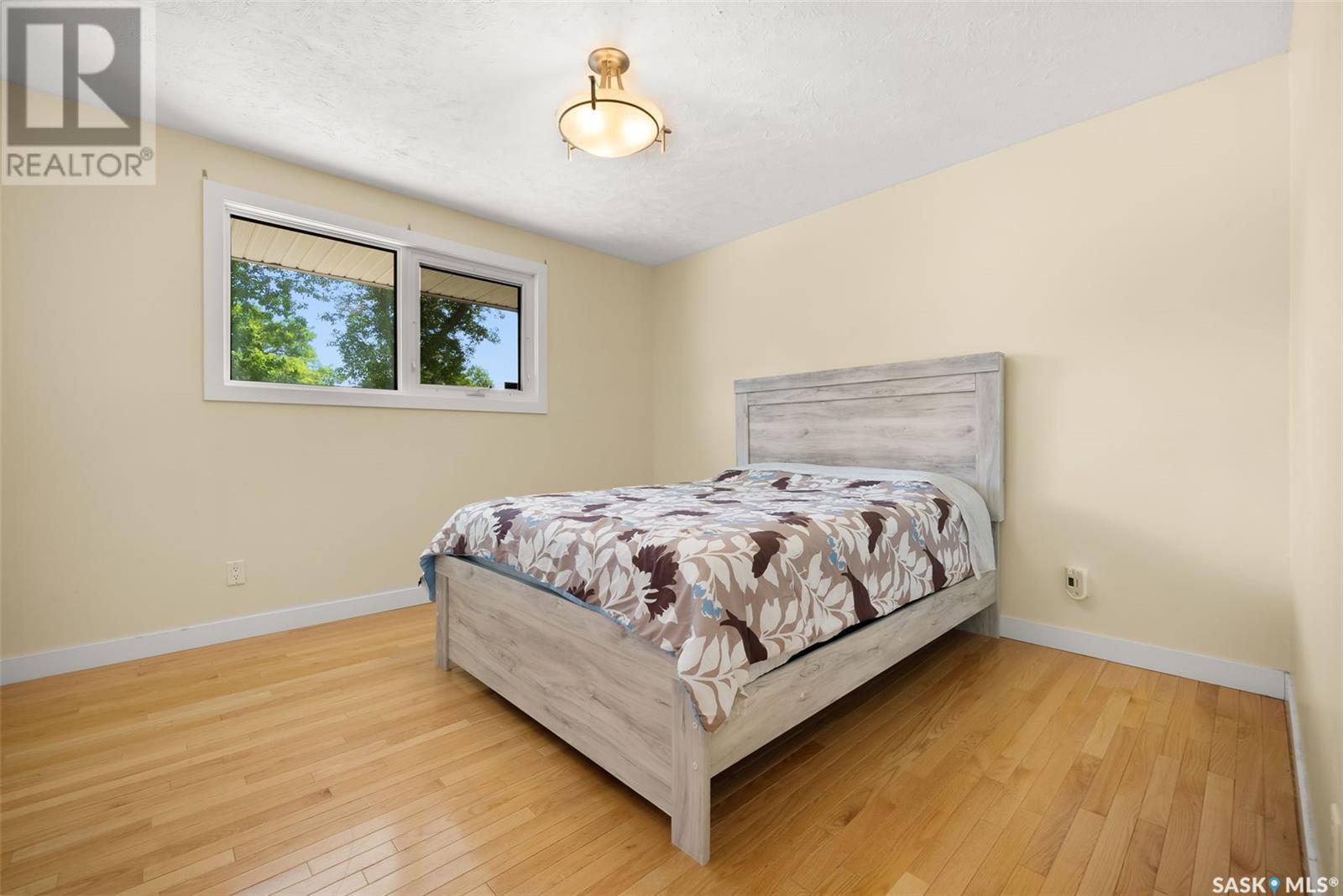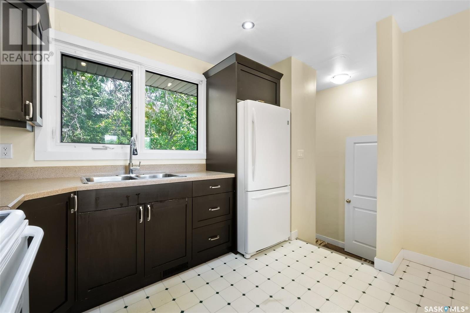 Backing a park and tucked on a quiet crescent, this solid bungalow offers a wonderful blend of updates, location, and charm — just steps from schools and east-end amenities! The main floor features newer windows and gleaming hardwood floors that flow through the bright front living room, now opened up to the stylish kitchen. You’ll love the espresso-toned maple cabinetry, generous pantry over the stairs, and included stove and built-in dishwasher. Fresh paint gives the space a clean, move-in-ready feel. Two nicely sized bedrooms and a fully renovated 3-piece bath (2016) complete the main level, showcasing a stunning tiled walk-in shower, new vanity, toilet, updated lighting, and tile flooring. Downstairs, the newer basement development offers a bright and spacious rec room with a wet bar — perfect for entertaining — along with a third bedroom and a second updated 3-piece bath with corner jetted tub. There’s also a large laundry/utility room that houses the washer and dryer and extra storage under the stairs. Outside, enjoy the privacy of the fully fenced backyard with a raised pressure-treated deck, interlocking brick firepit patio, and a garden space behind the garage. The oversized single garage includes a newer opener, and the front yard offers charming raised garden beds. Notable upgrades include new shingles on house and garage installed in 2021, newer washer, dishwasher and oven (all 2016), new DUCANE gas 2 stage high eff. Furnace installed June 2025, 60 ft of new white PVC fencing installed on the east side of the home in 2021. (id:43042)