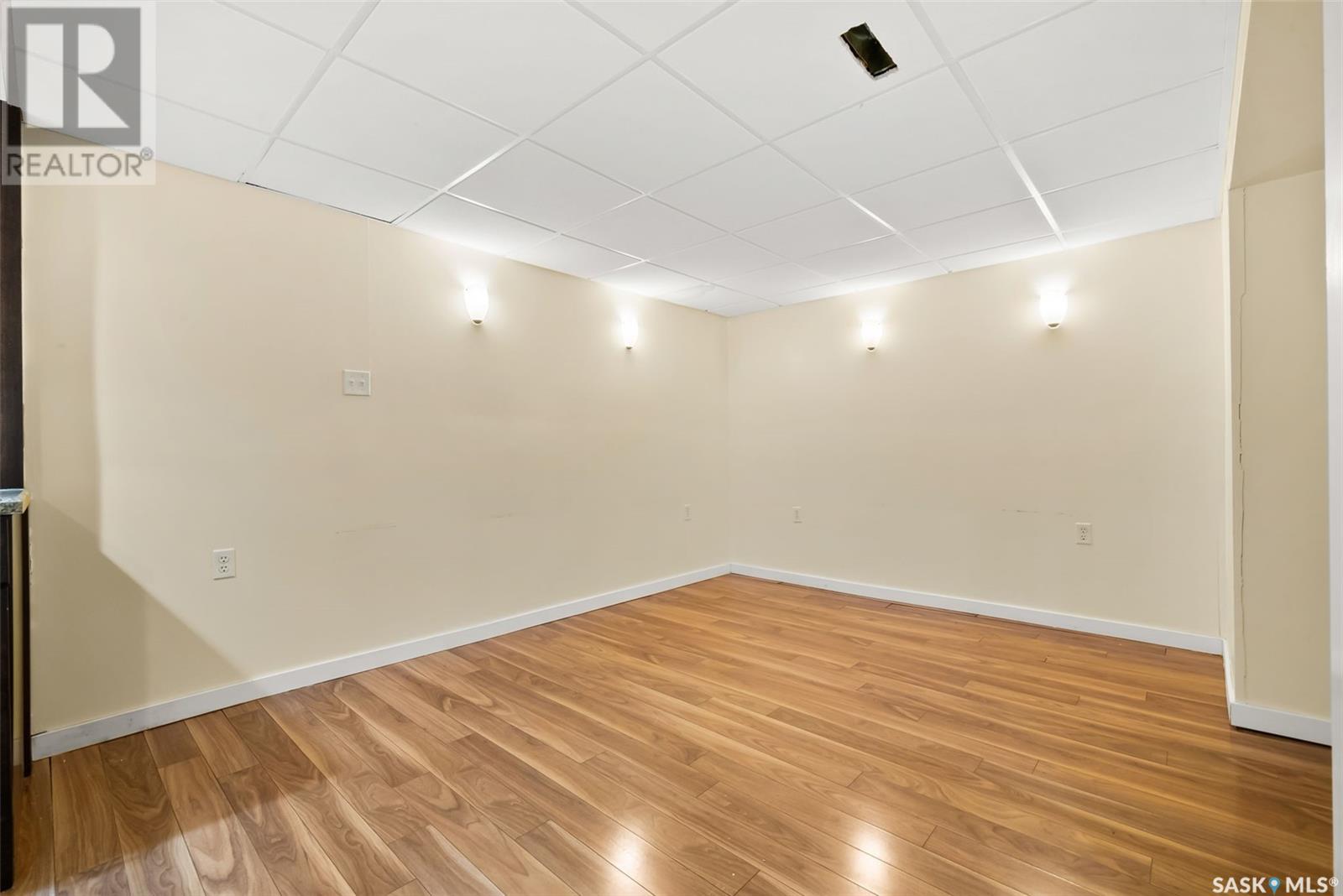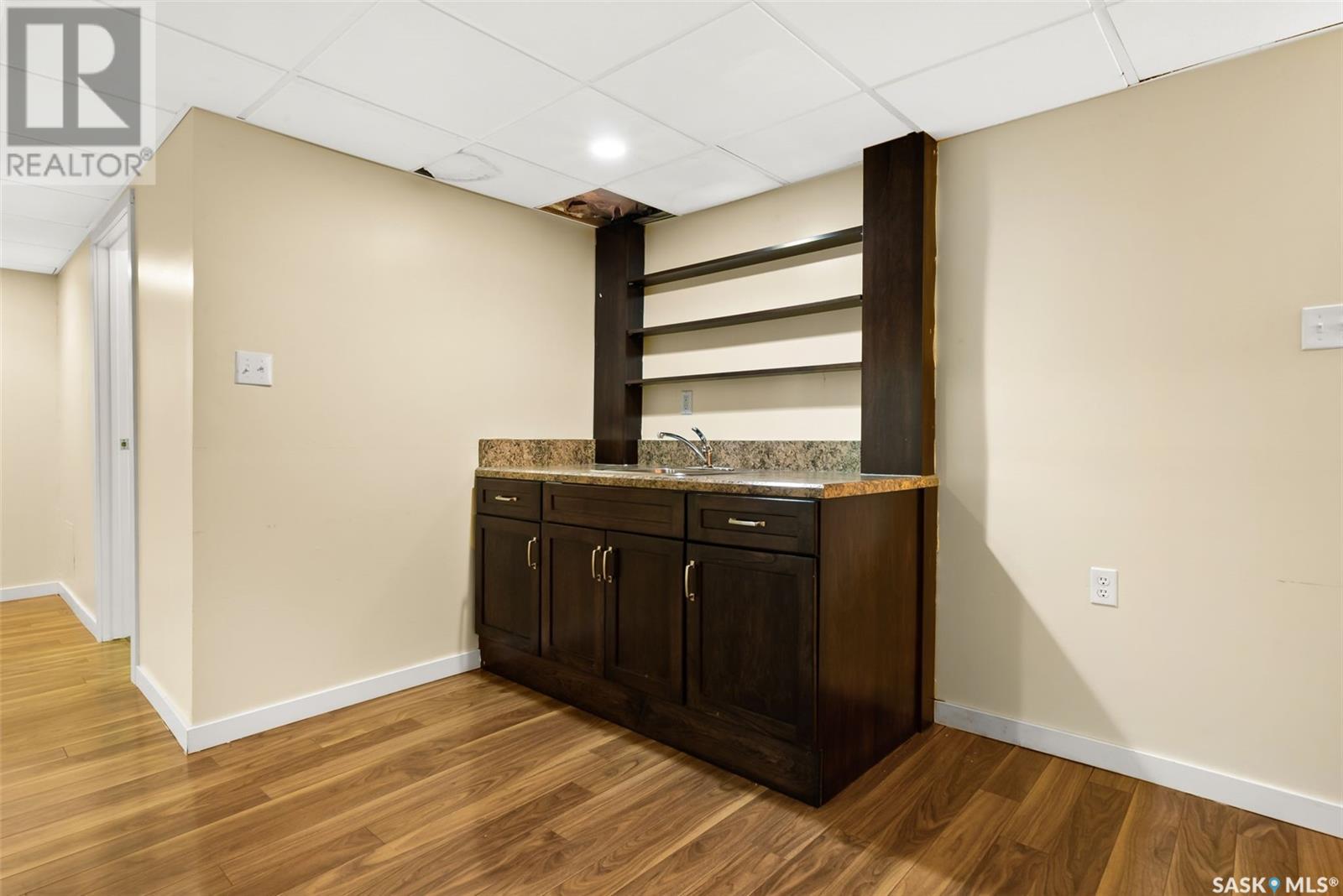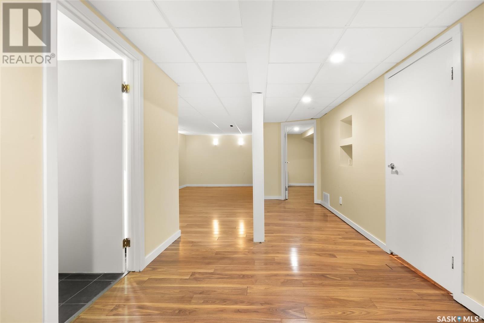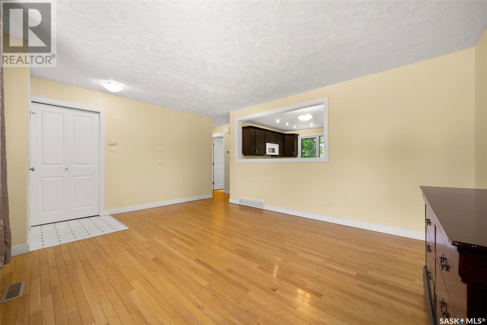 Backing a park and tucked on a quiet crescent, this solid bungalow offers a wonderful blend of updates, location, and charm — just steps from schools and east-end amenities! The main floor features newer windows and gleaming hardwood floors that flow through the bright front living room, now opened up to the stylish kitchen. You’ll love the espresso-toned maple cabinetry, generous pantry over the stairs, and included stove and built-in dishwasher. Fresh paint gives the space a clean, move-in-ready feel. Two nicely sized bedrooms and a fully renovated 3-piece bath (2016) complete the main level, showcasing a stunning tiled walk-in shower, new vanity, toilet, updated lighting, and tile flooring. Downstairs, the newer basement development offers a bright and spacious rec room with a wet bar — perfect for entertaining — along with a third bedroom and a second updated 3-piece bath with corner jetted tub. There’s also a large laundry/utility room that houses the washer and dryer and extra storage under the stairs. Outside, enjoy the privacy of the fully fenced backyard with a raised pressure-treated deck, interlocking brick firepit patio, and a garden space behind the garage. The oversized single garage includes a newer opener, and the front yard offers charming raised garden beds. Notable upgrades include new shingles on house and garage installed in 2021, newer washer, dishwasher and oven (all 2016), new DUCANE gas 2 stage high eff. Furnace installed June 2025, 60 ft of new white PVC fencing installed on the east side of the home in 2021. (id:43042)