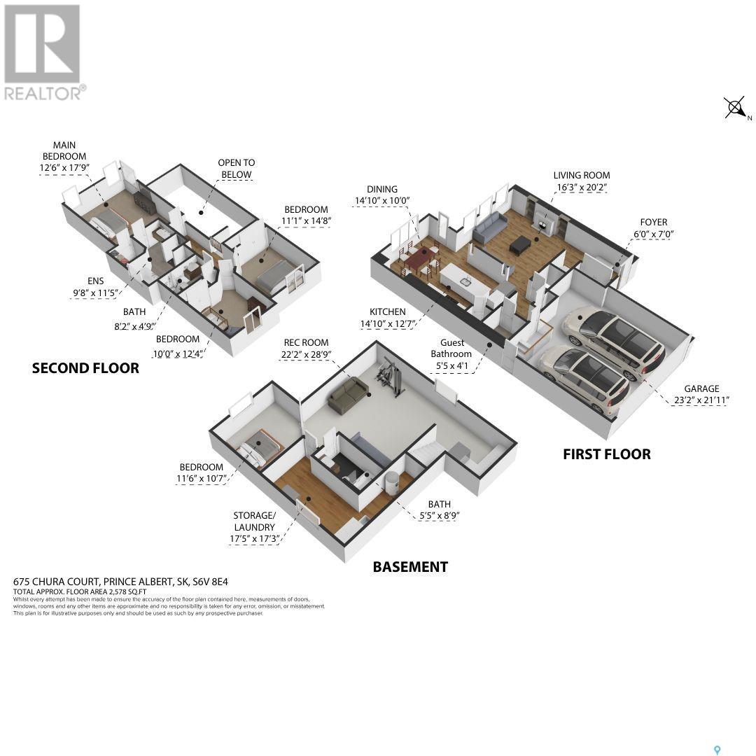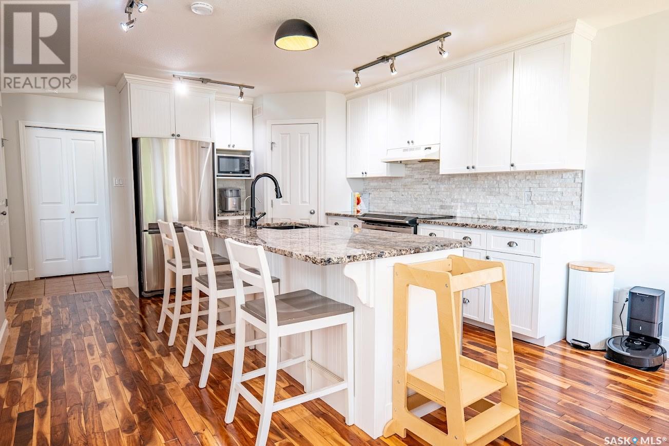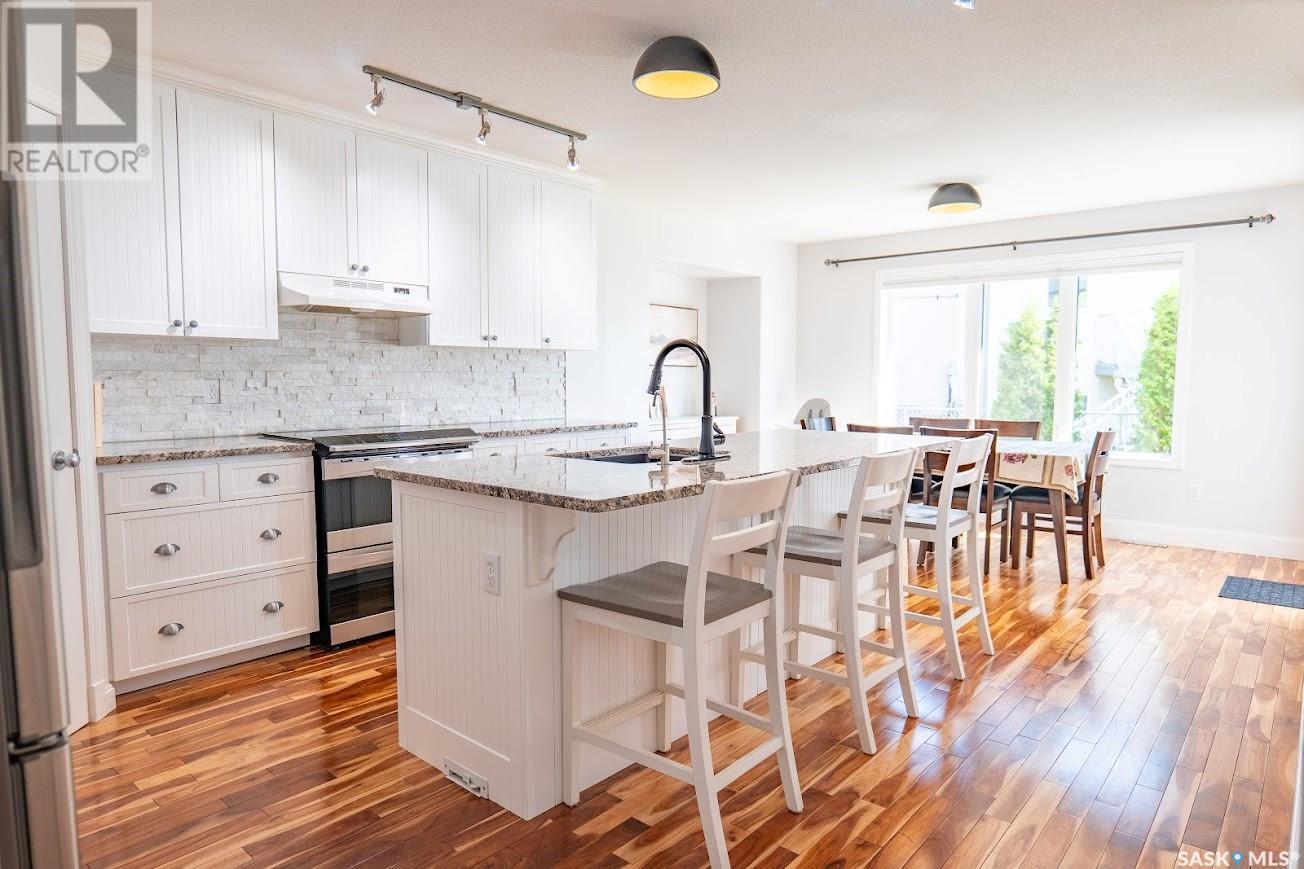 An exceptional opportunity awaits to own a home in one of Prince Albert’s most desirable cul-de-sacs. Situated in the sought-after South Hill neighborhood on Chura Court, this executive-style residence offers a perfect blend of elegance, comfort, and thoughtful updates. From the moment you enter, you’re welcomed by a sophisticated living room featuring a dramatic high-sloped ceiling, a cozy natural gas fireplace, and rich hardwood floors that flow seamlessly throughout most of the main level. The beautifully updated kitchen is a true showpiece, anchored by a large island with bar seating, soft-close cabinetry, granite countertops, a stylish tiled backsplash, stainless steel appliances. The bright dining area, filled with natural light, opens to a spacious back deck and a beautifully maintained backyard — perfect for entertaining and family fun. The main floor also includes a convenient guest bath and direct access to the insulated two-car attached garage, complete with a practical mudroom area. Upstairs, you’ll find three inviting bedrooms and a full four-piece bath. The luxurious primary suite is a true retreat, showcasing a truly spacious four-piece ensuite with a double vanity and new quartz countertops The lower level offers even more living space with a versatile office nook, a comfortable second living area, and a den or guest bedroom with French doors, complemented by another four-piece bathroom. Practical features include a water filtration system (2024), a new water heater (2023), and energy-efficient LED lighting throughout and new shingles (2024) for peace of mind. All-around great value and a rare opportunity to own a beautifully updated home in one of South Hill’s most sought-after locations. (id:43042)
