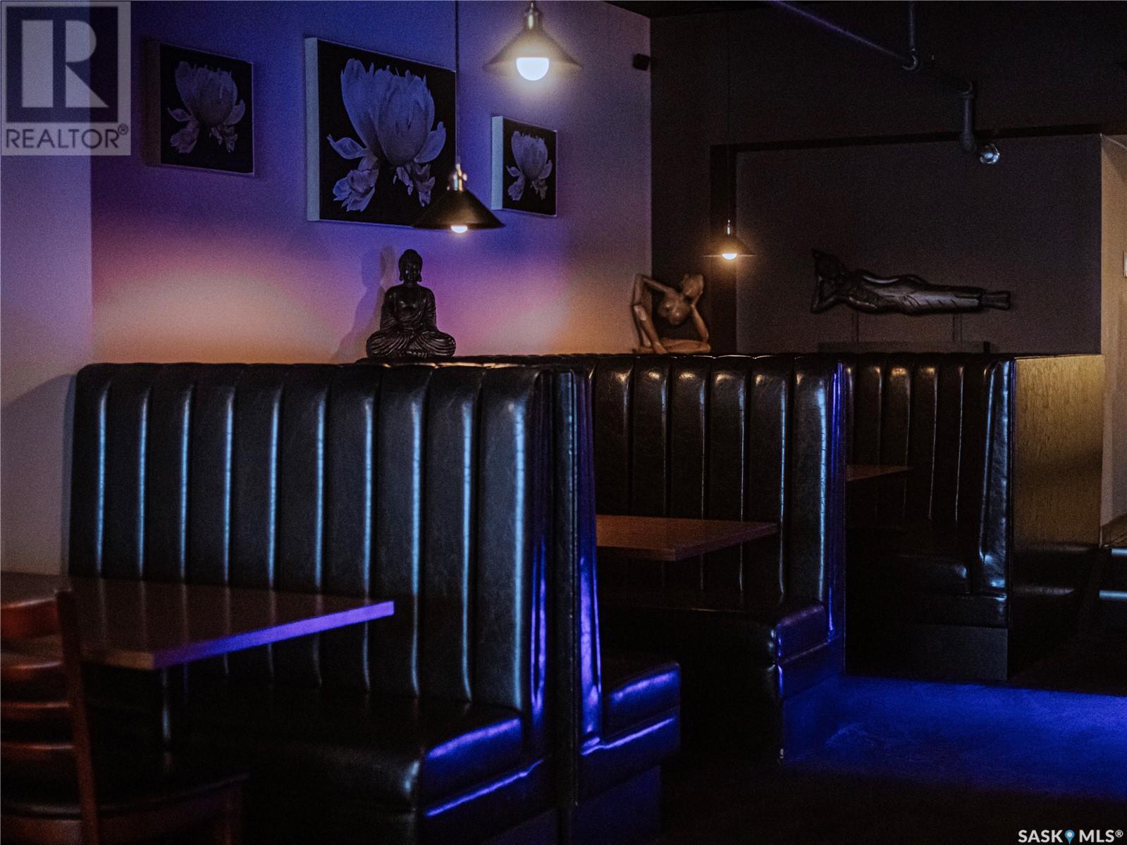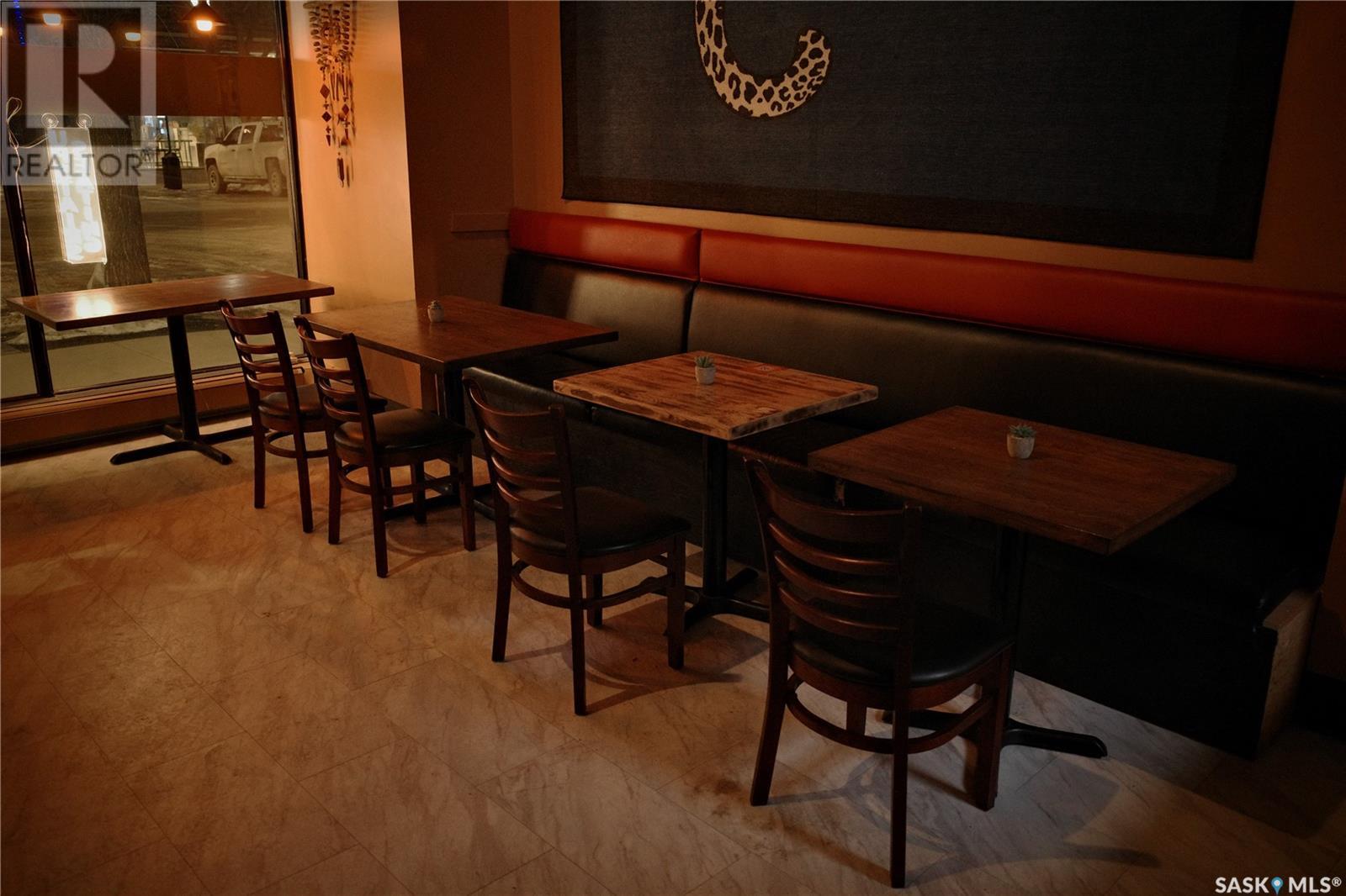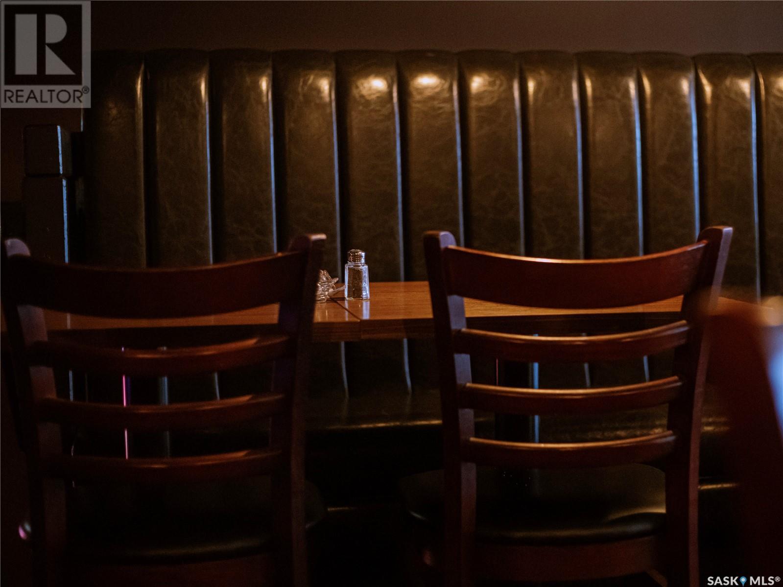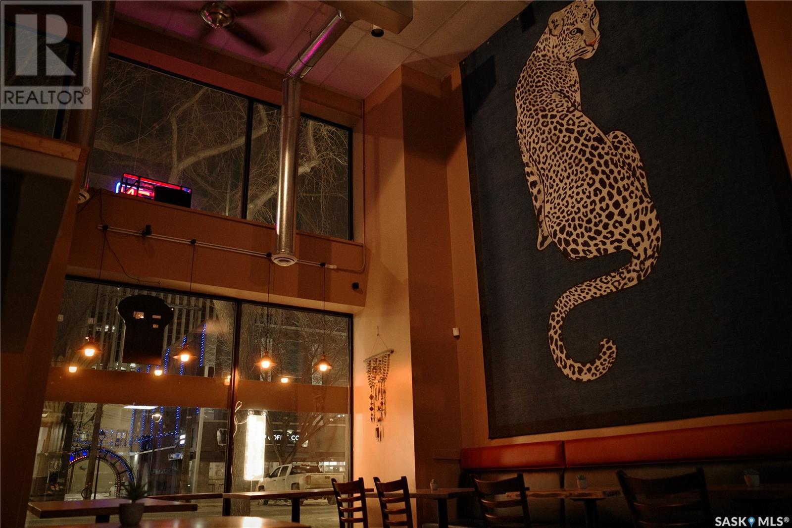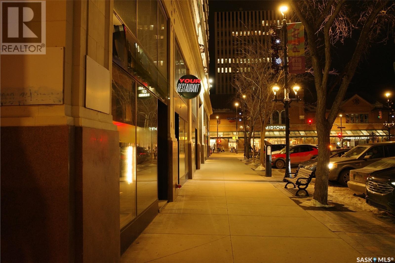 Prime restaurant location in the heart of Saskatoon ready to be taken over by an aspiring entrepreneur or experienced restaurateur. Located steps away from the busiest mall in Saskatchewan, Midtown Plaza, the heavy foot traffic around this location boasts substantial potential for any business owner. This restaurant space is a unique 2 storey unit with a maximum occupancy of 75 (from previous SLGA liquor license) with the kitchen, a stage, first dining area and one bathroom on the ground floor and a second dining area, a bar and two additional bathrooms upstairs. Beautifully renovated with high quality booths and tables upstairs. Attractive lease in place until 2031, currently $6,800/ month + utilities. (id:43042)