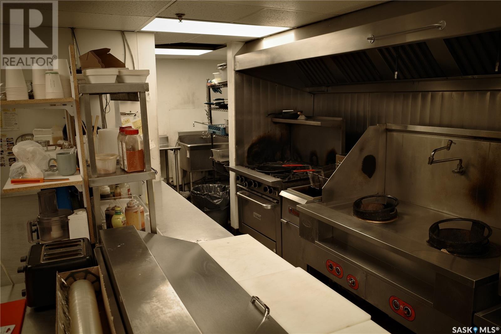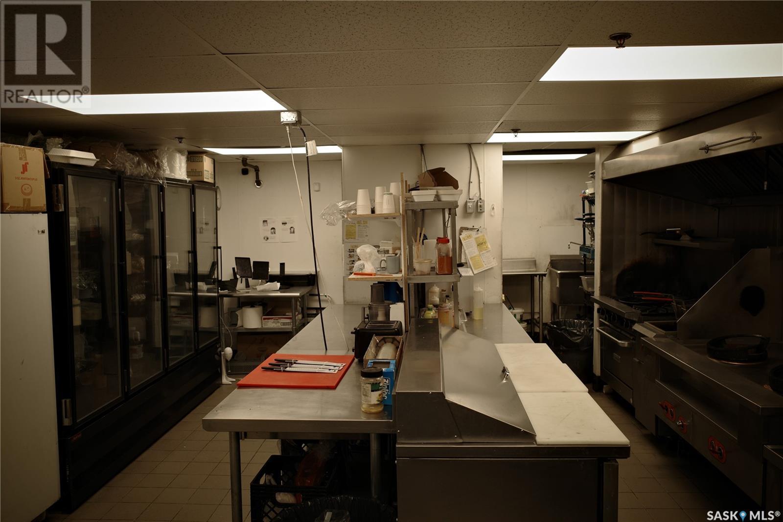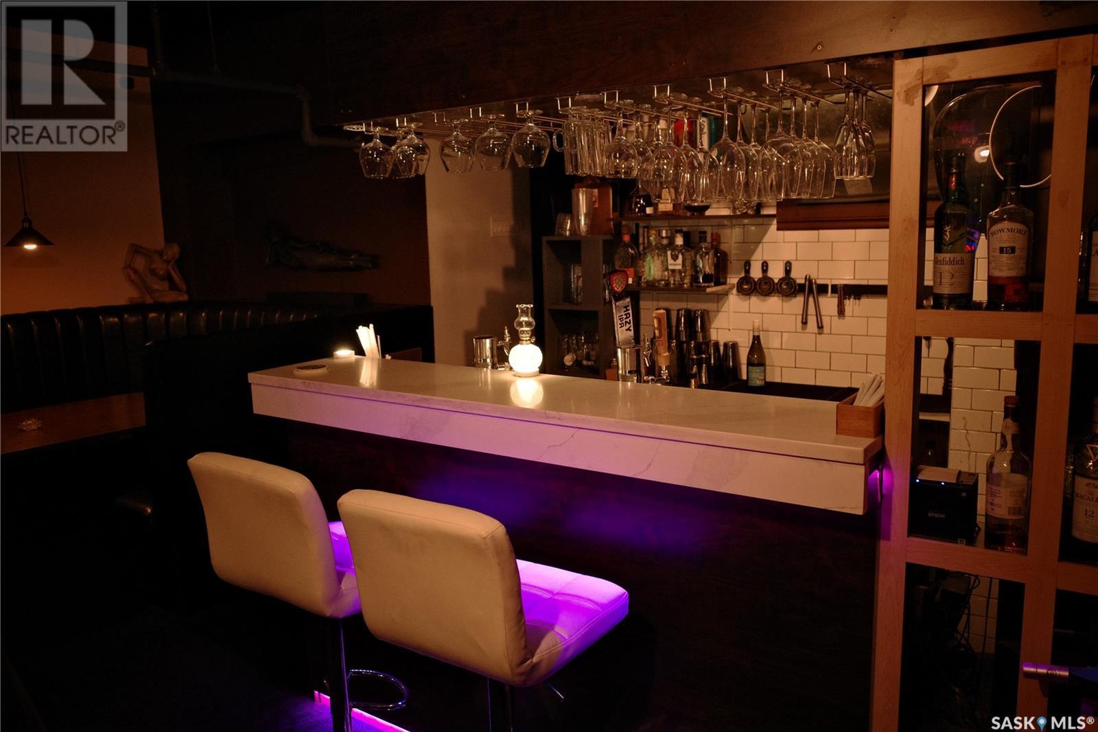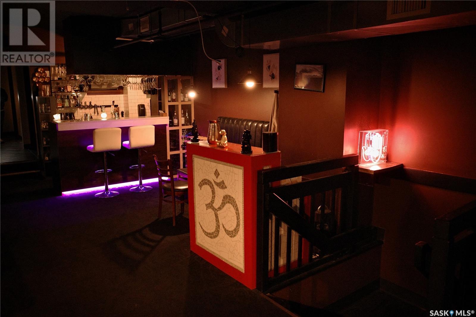 Prime restaurant location in the heart of Saskatoon ready to be taken over by an aspiring entrepreneur or experienced restaurateur. Located steps away from the busiest mall in Saskatchewan, Midtown Plaza, the heavy foot traffic around this location boasts substantial potential for any business owner. This restaurant space is a unique 2 storey unit with a maximum occupancy of 75 (from previous SLGA liquor license) with the kitchen, a stage, first dining area and one bathroom on the ground floor and a second dining area, a bar and two additional bathrooms upstairs. Beautifully renovated with high quality booths and tables upstairs. Attractive lease in place until 2031, currently $6,800/ month + utilities. (id:43042)