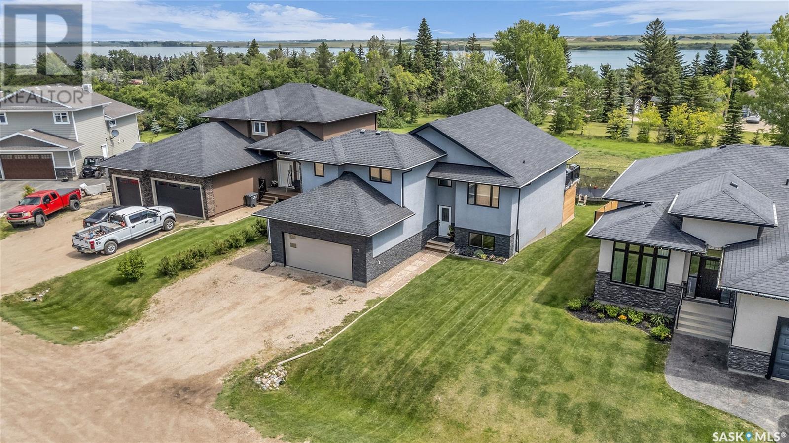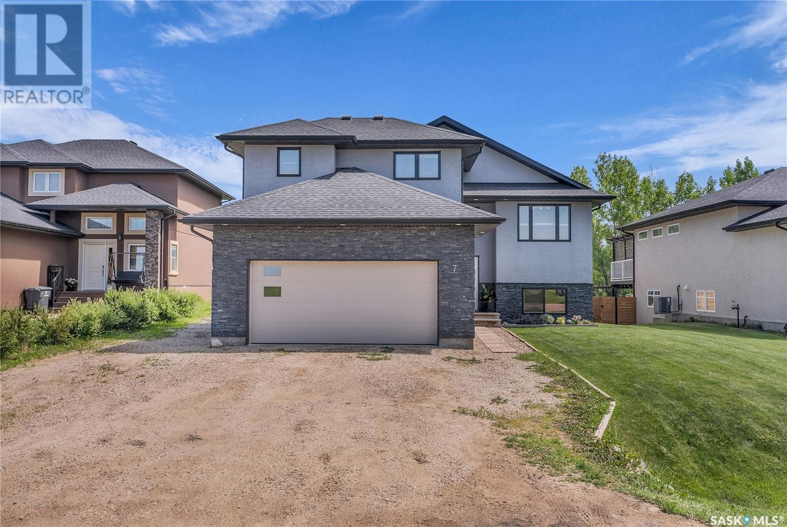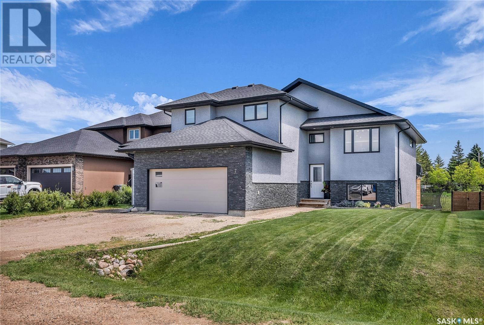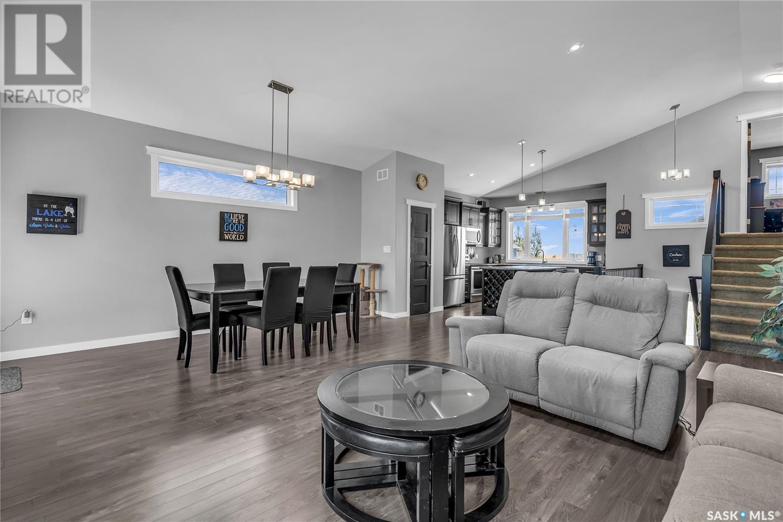 Welcome To Shields on Lake Black Blackstrap. We have a 1530 sq ft modified Bi-level with a fully finished walkout basement situated on a Cue-de-sac. Main floor features wide open floor space with with lots of window's, beautiful kitchen with granite countertops, stainless steel appliances and pantry to optimize storage, you have a large spacious family room great for entertaining and Sunday dinners, great living room with vaulted ceiling and a natural gas fire place, finishing off main floor with 2 larger bedrooms with a 4 pc bath. Moving up to the spacious primary bedroom you have with large walk in closet, his & her sinks along with an upgraded shower. Moving down to your walk out basement you have a nice wide open plan with a great Tv area for family movie nights, with lots of room to add a pool or ping pong table, 2 nice sized bedrooms, along with nice sized utility room for additional storage. Moving outside you have a nice upper deck with some golf course and lake views, the lower patio gives you some shade and will keep you outta the rain. Others features include a double heated garage, central A/C and a great sized yard with fire pit area and the hot tub is negotiable. Best part about this listing is you have Golf course, beach area, sports court, you can apply for dock space to keep your boat in the water and its only 25 mins to Saskatoon (id:43042)