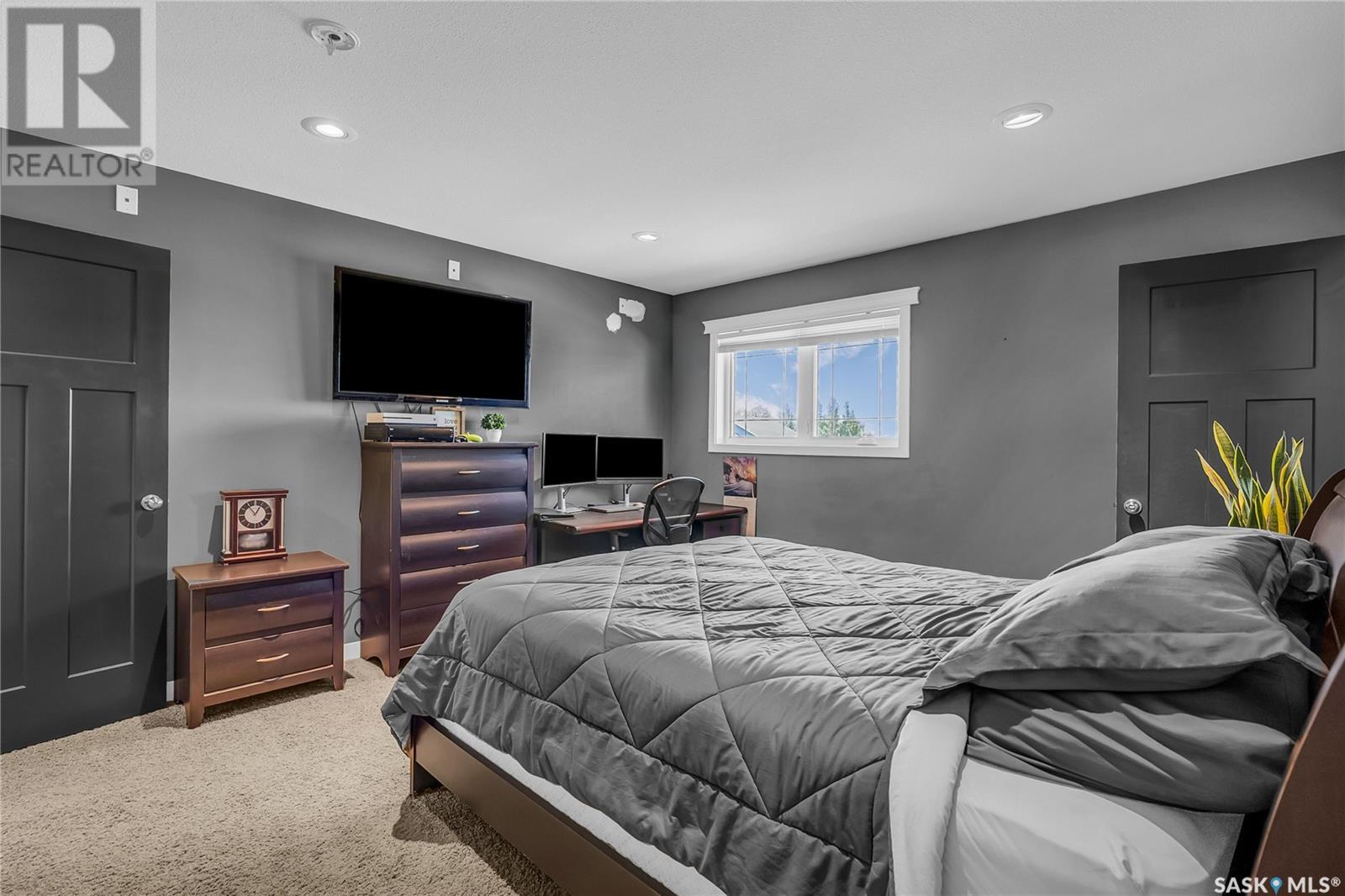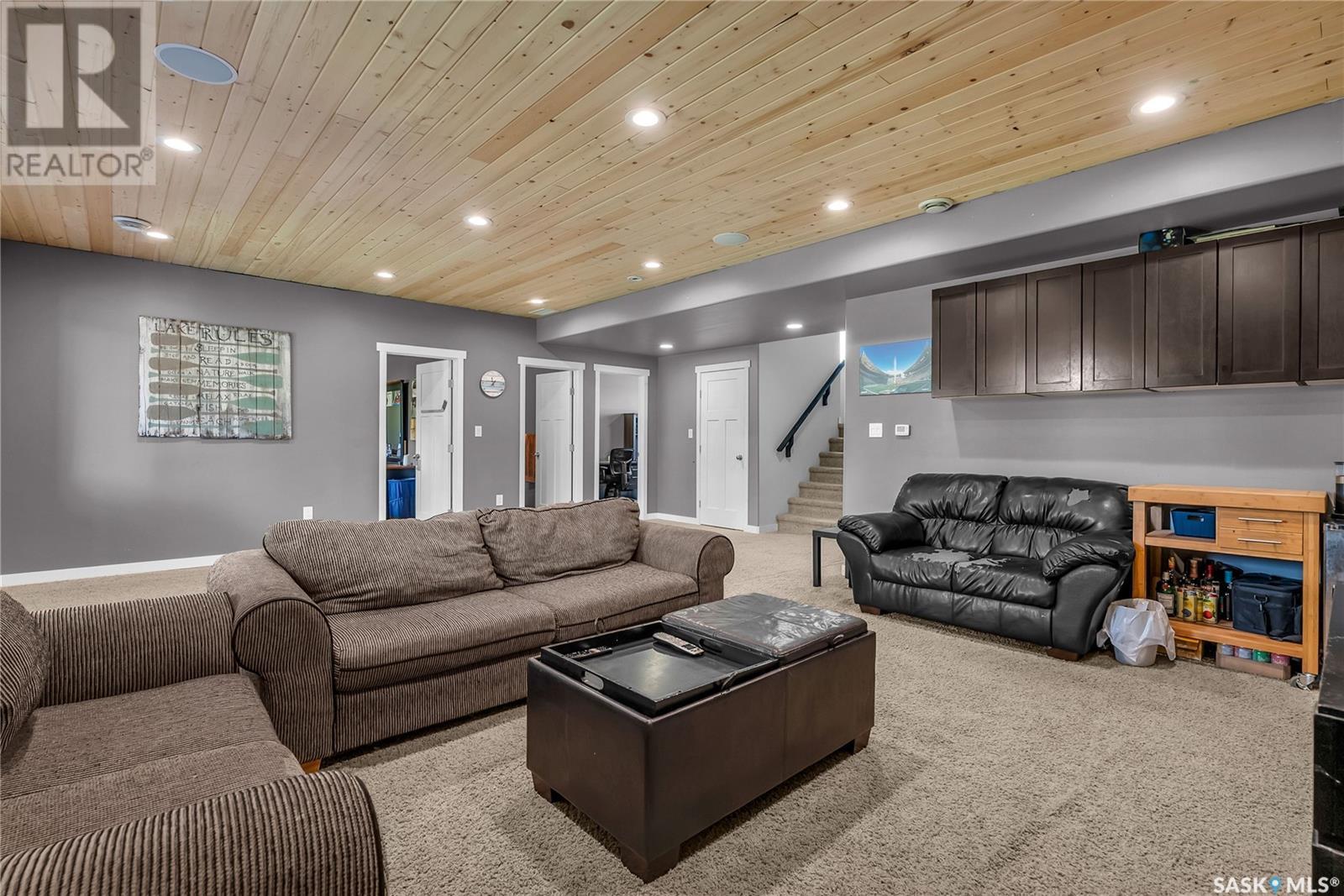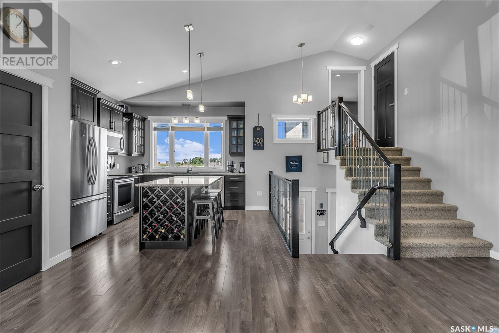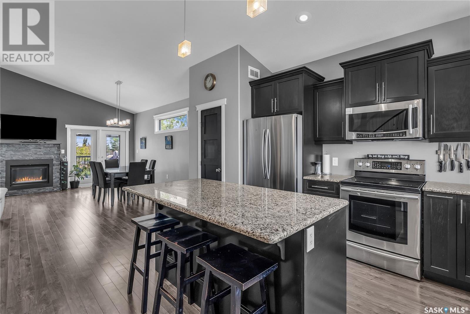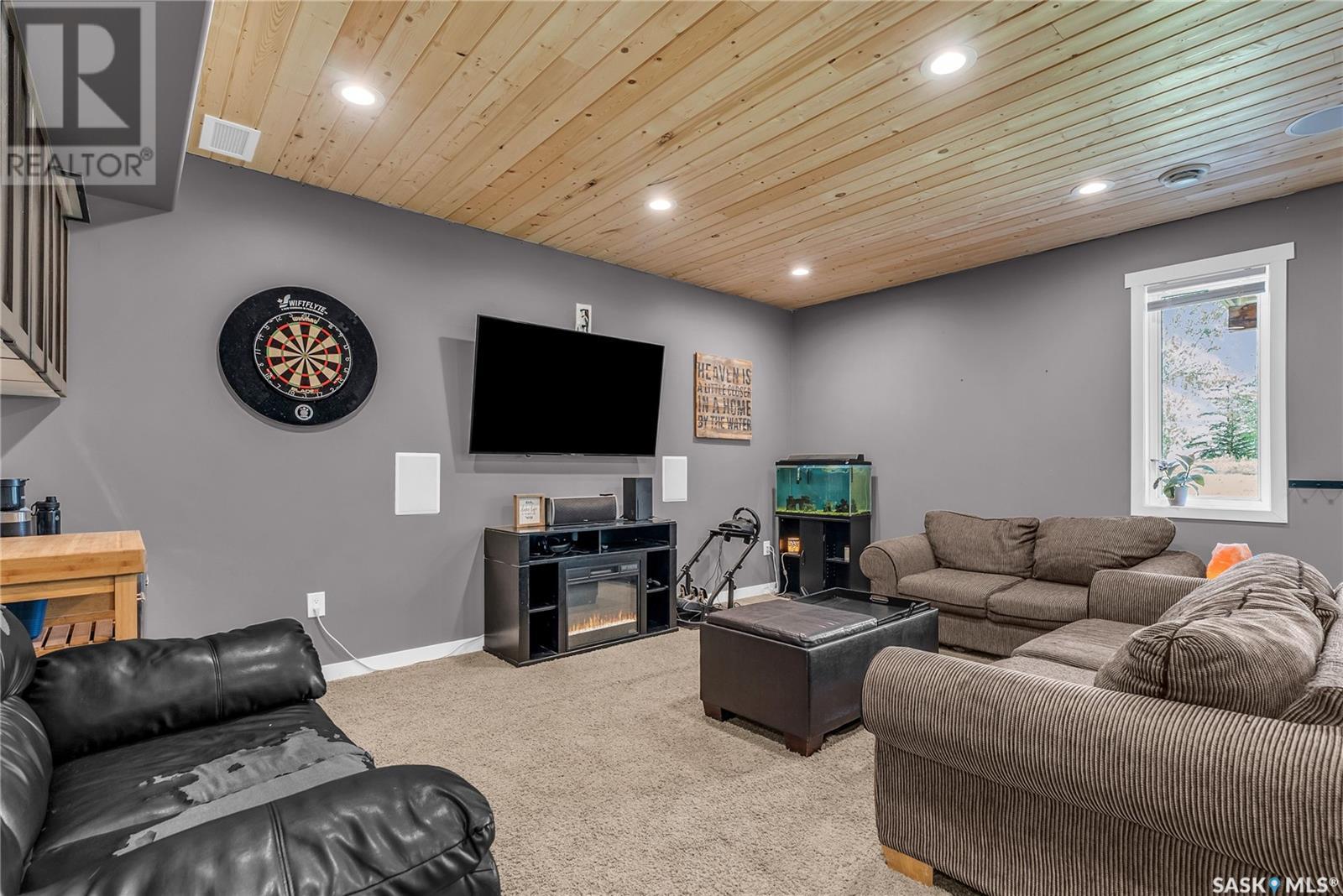 Welcome To Shields on Lake Black Blackstrap. We have a 1530 sq ft modified Bi-level with a fully finished walkout basement situated on a Cue-de-sac. Main floor features wide open floor space with with lots of window's, beautiful kitchen with granite countertops, stainless steel appliances and pantry to optimize storage, you have a large spacious family room great for entertaining and Sunday dinners, great living room with vaulted ceiling and a natural gas fire place, finishing off main floor with 2 larger bedrooms with a 4 pc bath. Moving up to the spacious primary bedroom you have with large walk in closet, his & her sinks along with an upgraded shower. Moving down to your walk out basement you have a nice wide open plan with a great Tv area for family movie nights, with lots of room to add a pool or ping pong table, 2 nice sized bedrooms, along with nice sized utility room for additional storage. Moving outside you have a nice upper deck with some golf course and lake views, the lower patio gives you some shade and will keep you outta the rain. Others features include a double heated garage, central A/C and a great sized yard with fire pit area and the hot tub is negotiable. Best part about this listing is you have Golf course, beach area, sports court, you can apply for dock space to keep your boat in the water and its only 25 mins to Saskatoon (id:43042)