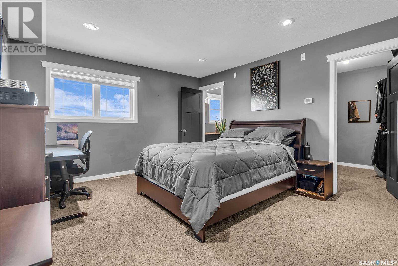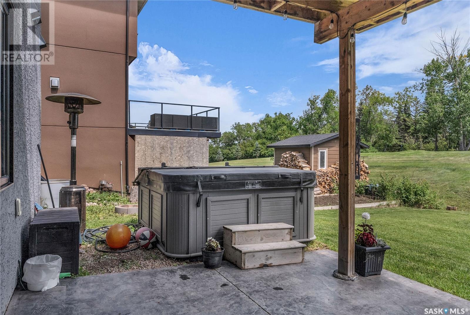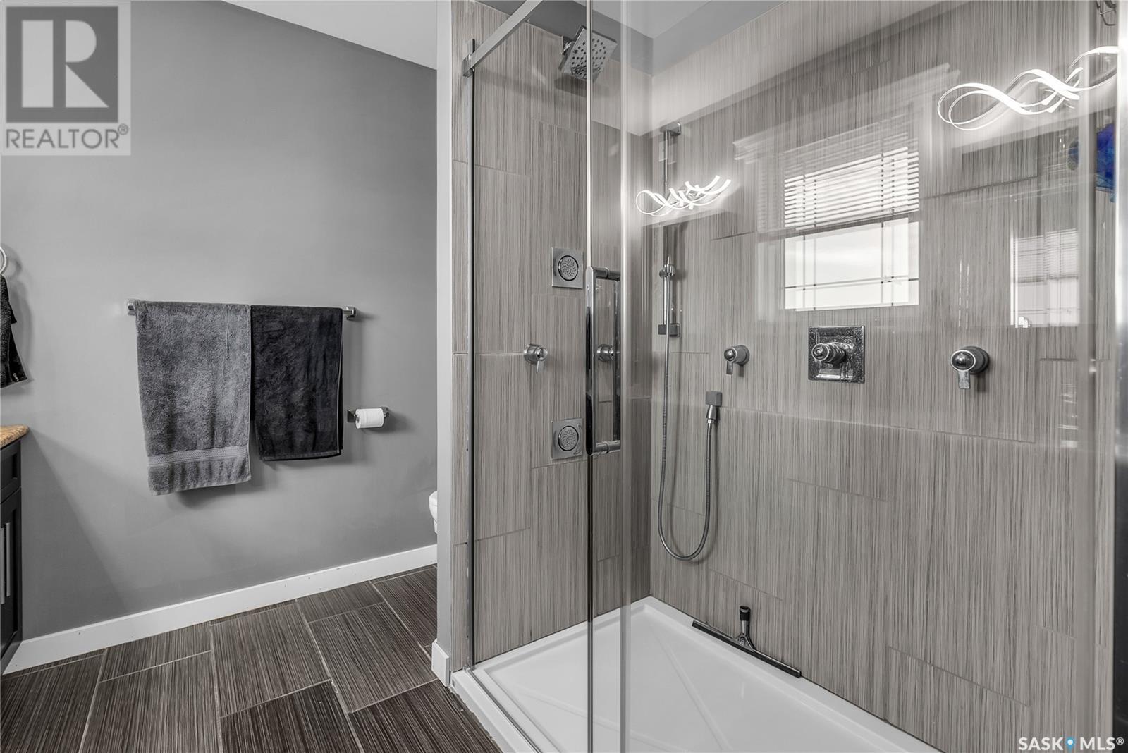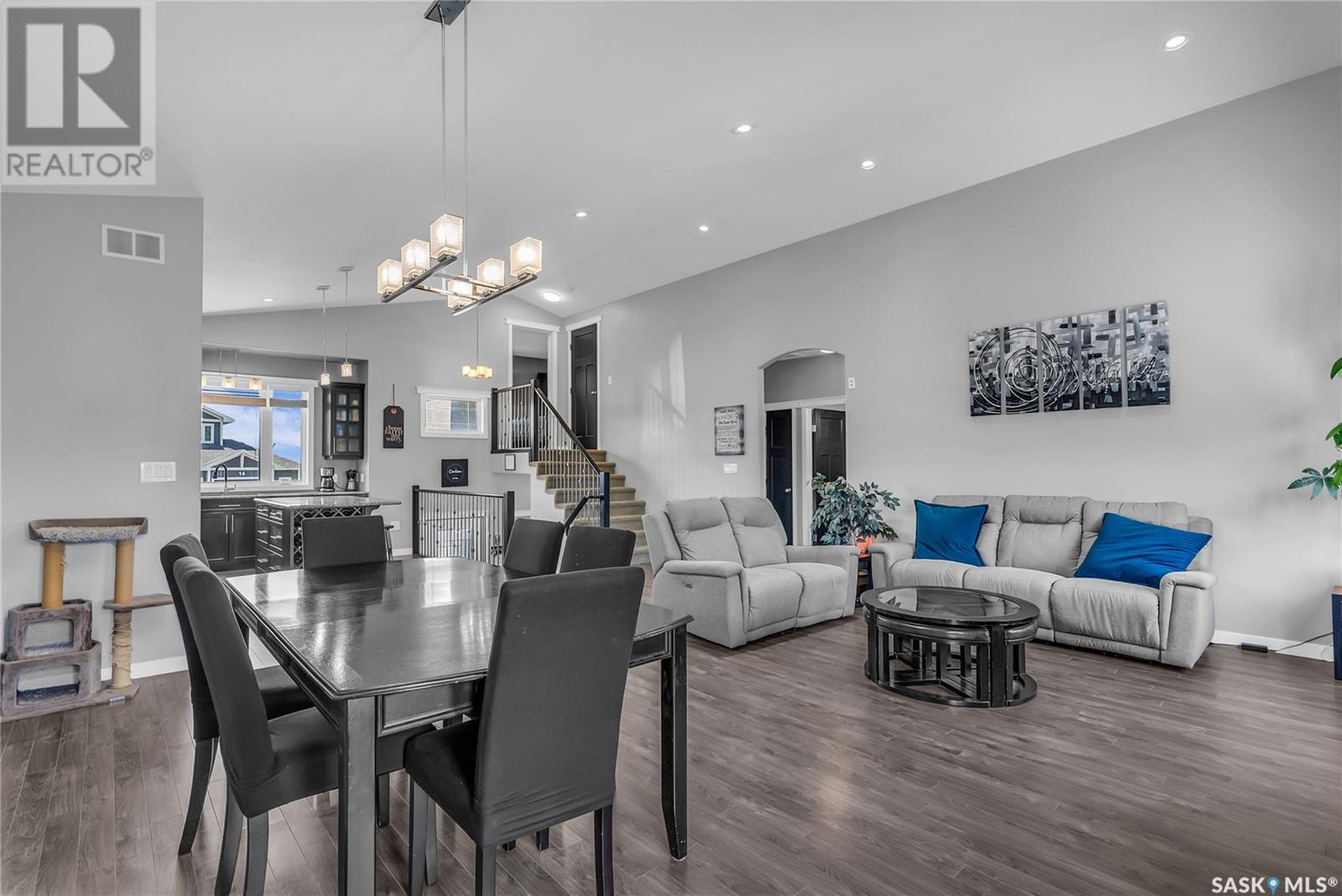 Welcome To Shields on Lake Black Blackstrap. We have a 1530 sq ft modified Bi-level with a fully finished walkout basement situated on a Cue-de-sac. Main floor features wide open floor space with with lots of window's, beautiful kitchen with granite countertops, stainless steel appliances and pantry to optimize storage, you have a large spacious family room great for entertaining and Sunday dinners, great living room with vaulted ceiling and a natural gas fire place, finishing off main floor with 2 larger bedrooms with a 4 pc bath. Moving up to the spacious primary bedroom you have with large walk in closet, his & her sinks along with an upgraded shower. Moving down to your walk out basement you have a nice wide open plan with a great Tv area for family movie nights, with lots of room to add a pool or ping pong table, 2 nice sized bedrooms, along with nice sized utility room for additional storage. Moving outside you have a nice upper deck with some golf course and lake views, the lower patio gives you some shade and will keep you outta the rain. Others features include a double heated garage, central A/C and a great sized yard with fire pit area and the hot tub is negotiable. Best part about this listing is you have Golf course, beach area, sports court, you can apply for dock space to keep your boat in the water and its only 25 mins to Saskatoon (id:43042)