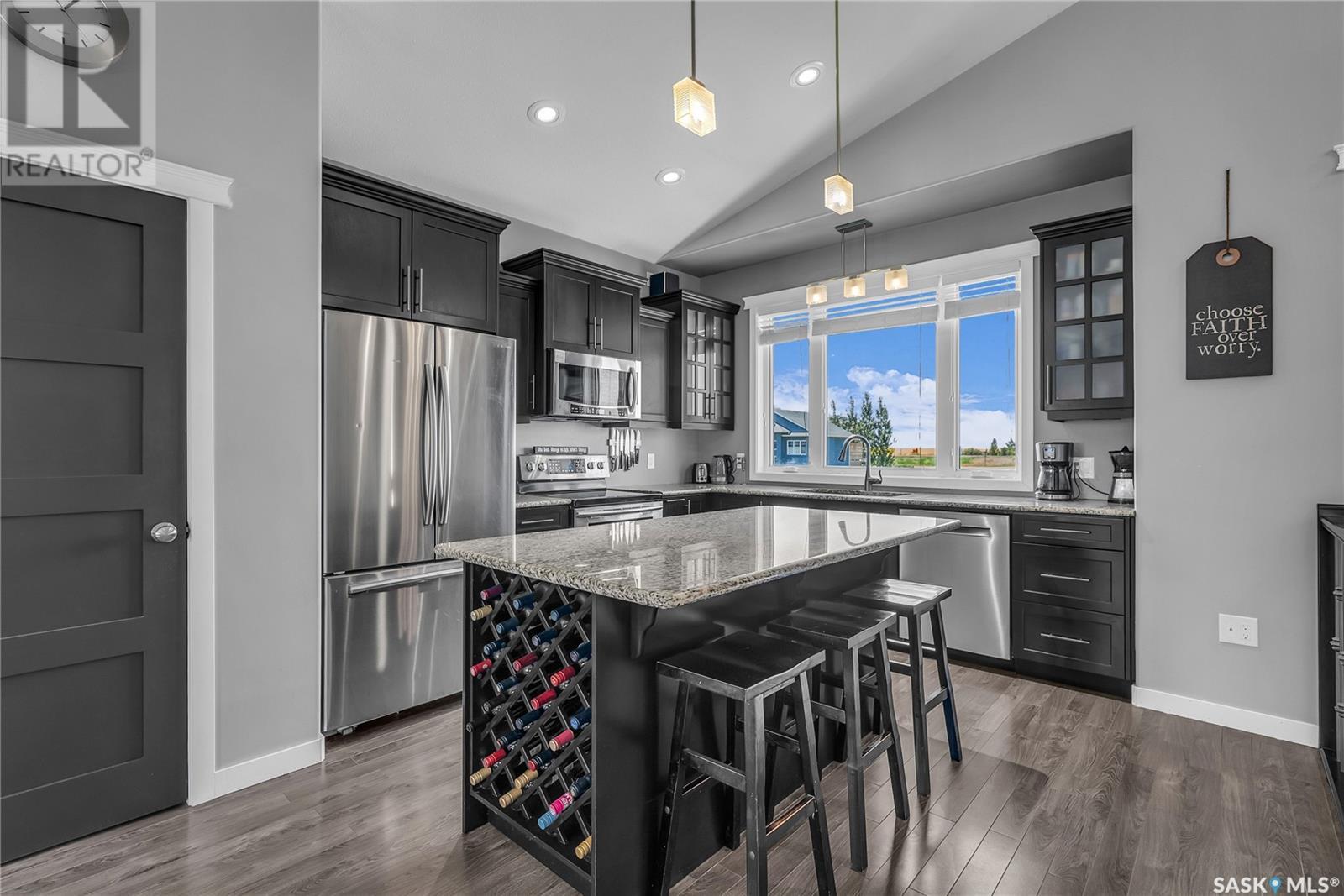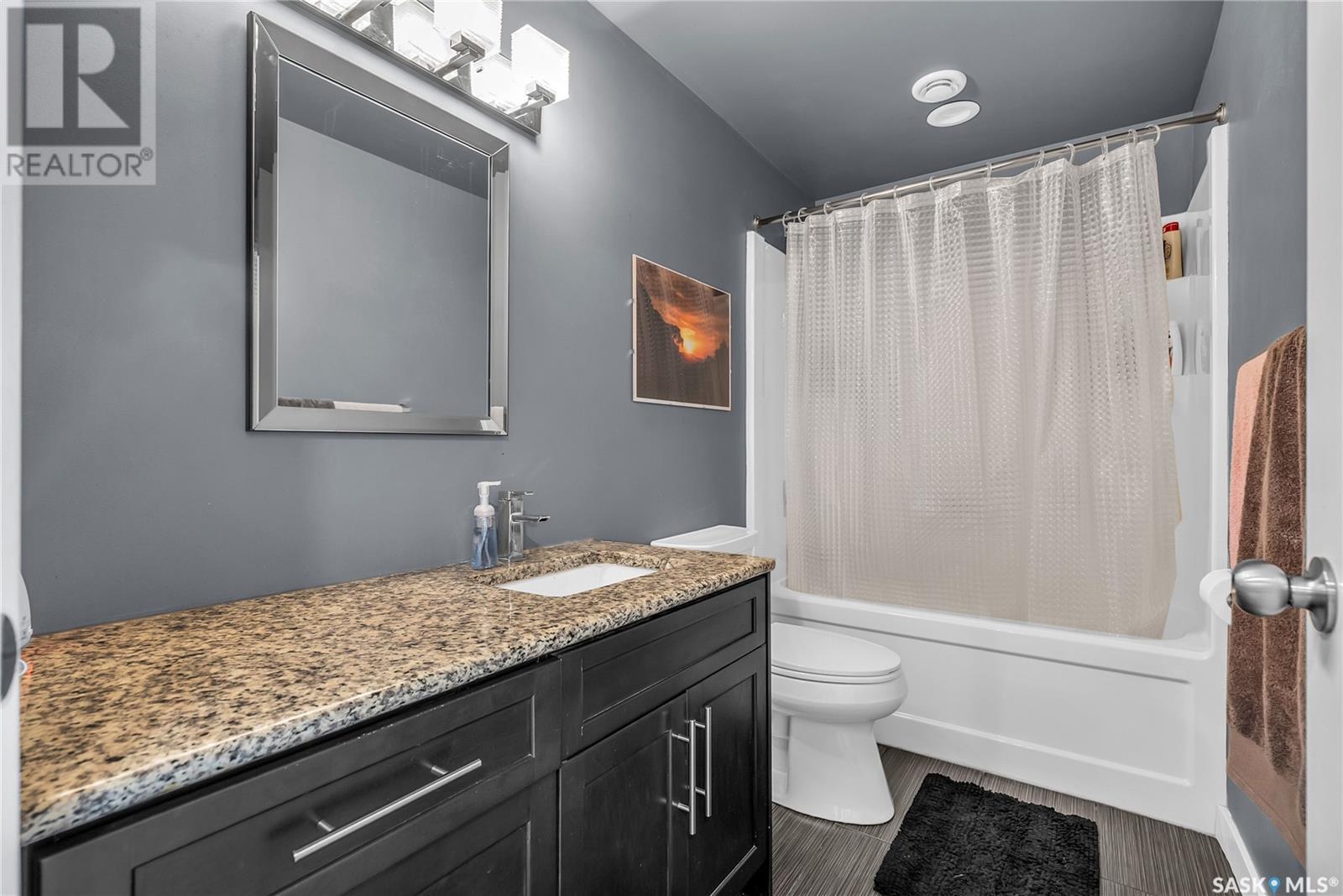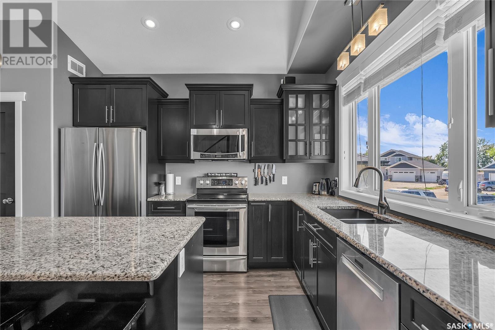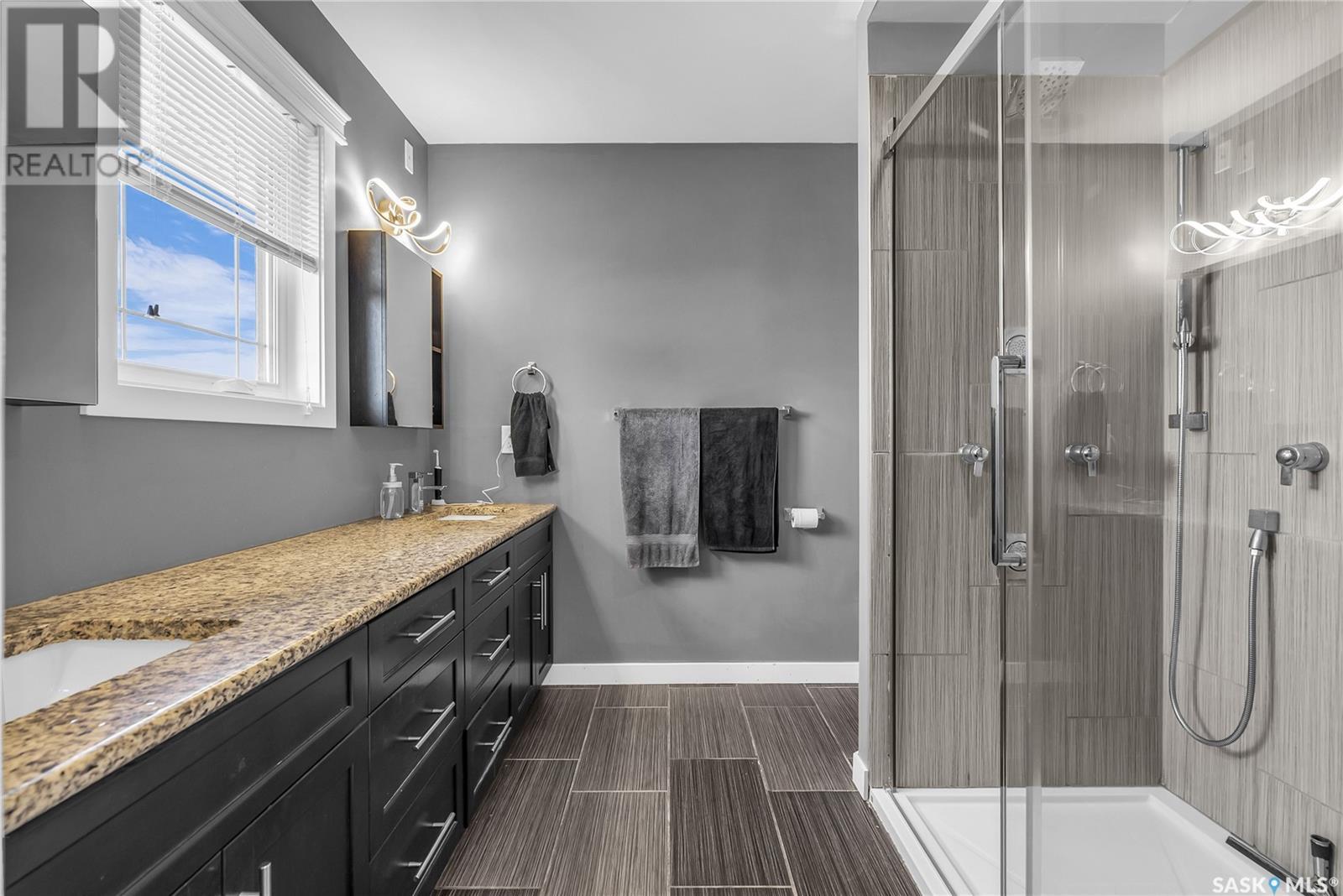 Welcome To Shields on Lake Black Blackstrap. We have a 1530 sq ft modified Bi-level with a fully finished walkout basement situated on a Cue-de-sac. Main floor features wide open floor space with with lots of window's, beautiful kitchen with granite countertops, stainless steel appliances and pantry to optimize storage, you have a large spacious family room great for entertaining and Sunday dinners, great living room with vaulted ceiling and a natural gas fire place, finishing off main floor with 2 larger bedrooms with a 4 pc bath. Moving up to the spacious primary bedroom you have with large walk in closet, his & her sinks along with an upgraded shower. Moving down to your walk out basement you have a nice wide open plan with a great Tv area for family movie nights, with lots of room to add a pool or ping pong table, 2 nice sized bedrooms, along with nice sized utility room for additional storage. Moving outside you have a nice upper deck with some golf course and lake views, the lower patio gives you some shade and will keep you outta the rain. Others features include a double heated garage, central A/C and a great sized yard with fire pit area and the hot tub is negotiable. Best part about this listing is you have Golf course, beach area, sports court, you can apply for dock space to keep your boat in the water and its only 25 mins to Saskatoon (id:43042)