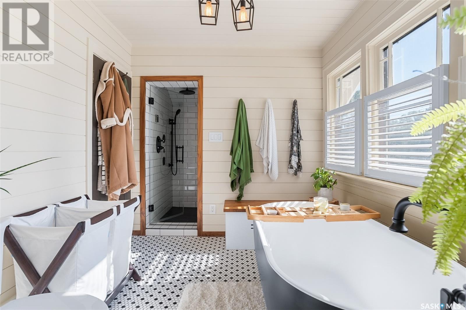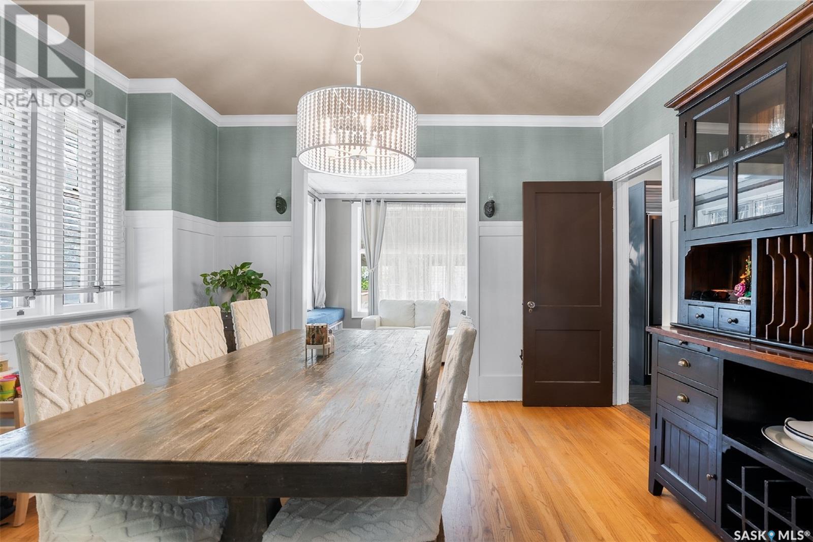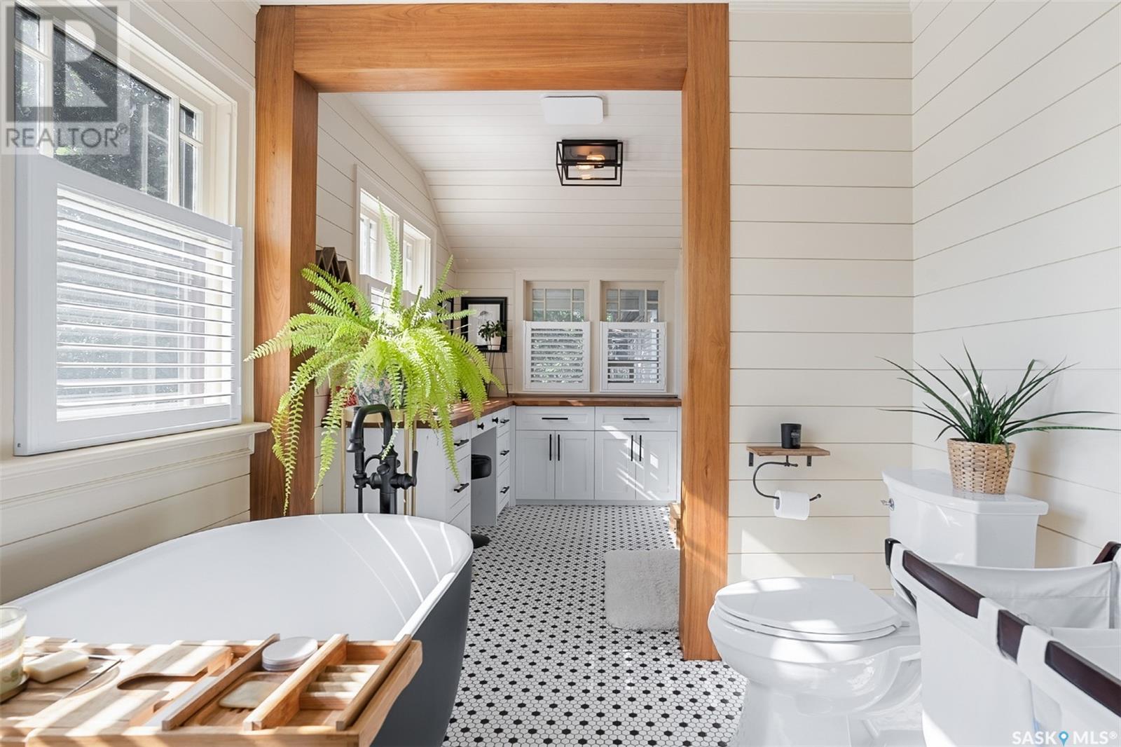 Welcome to 703 4th Avenue North—where timeless charm meets modern upgrades. This beautifully renovated two-storey home in the heart of City Park offers over 1,806 sq ft of living space with 4 bedrooms and 4 bathrooms. The main floor features hardwood and tile throughout, a cozy wood-burning fireplace in the living room, and a formal dining area perfect for entertaining. The custom kitchen blends style and function with high-end finishings. A den and 2-pc powder room complete the main level. Upstairs you'll find three spacious bedrooms, each with bathroom access. The primary suite is a true retreat, showcasing a stunning 5-piece ensuite with soaker tub, steam shower, built-in makeup vanity, and loads of natural light. The walk-in closet is equally impressive, offering ample space and organization. The fully developed basement adds even more living area with a family room, an additional bedroom and den, a 3-pc bathroom, and a stylish wet bar—ideal for guests or relaxing. There's also plenty of storage in the utility room. Extensive updates include a new furnace (2018), tankless water heater, water softener, and reverse osmosis system (2021), plus new A/C and garage heater (2023). Situated on a mature corner lot with great street parking, this property also features a massive 25' x 29' heated double detached garage—perfect for vehicles, tools, or a workshop. Just steps from City Hospital, close to the U of S and RUH, and near downtown and the river. This is a rare opportunity to own a one-of-a-kind home in one of Saskatoon's most sought-after neighborhoods. (id:43042)