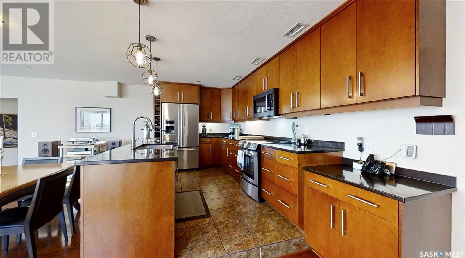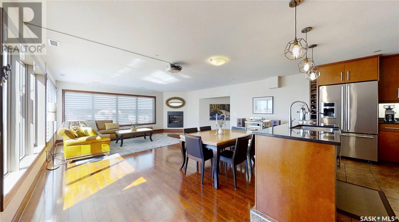 $1,132.57 MonthlyPENTHOUSE! This property is located on the top floor facing South/West in the Wycliffe building. Arguably the best dollars per sqft deal in the city. Condo association is in good standing and the condo fees are on par with the size of the property. This private home boasts 2239 sqft and is the largest in the building. This vibrant location has local retail stores, restaurants, entertainment, sidewalks bustling with activity, parks, walking trails & just a few blocks from the river. Your dream home may be downtown once you see the view from this penthouse. This condo features a raised gourmet kitchen with upper end appliances including a smooth top range, Bosch dishwasher, Bosch over the range microwave/hood fan, wine storage, maple soft close cabinetry & quartz counter tops. Gorgeous flooring is a classy mix of upper end laminate & tile. The size of the kitchen, dining & living room are sure to impress with automated Hunter Douglas blinds. The Primary bedroom bedroom is spacious and has an elegant en suite with heated tile floors, kohler fixtures, double sinks and a double wide tiled shower with frameless glass doors. Then there's the walk in closet - it's a dreamy space to organize all your special garments. There is a second bedroom - you'll be impressed with the generous size and there is a den - use it as you wish - it's already got a murphy bed so it makes the ideal guest room. A gas fireplace spills warmth through the main living area. All this with an amazing outdoor deck ideal for entertaining. The deck features gas hook ups for heaters & BBQ plus a convenient water tap for water features & watering the plants. This penthouse has loads of organized storage & comes with 2 underground heated parking stalls. Very rare find as this condo has a forced air heating & air conditioning system. Just like a house it has separate duct work with a new 2024 furnace & A/C unit. Call your REALTOR® today to book a private viewing. (id:43042)