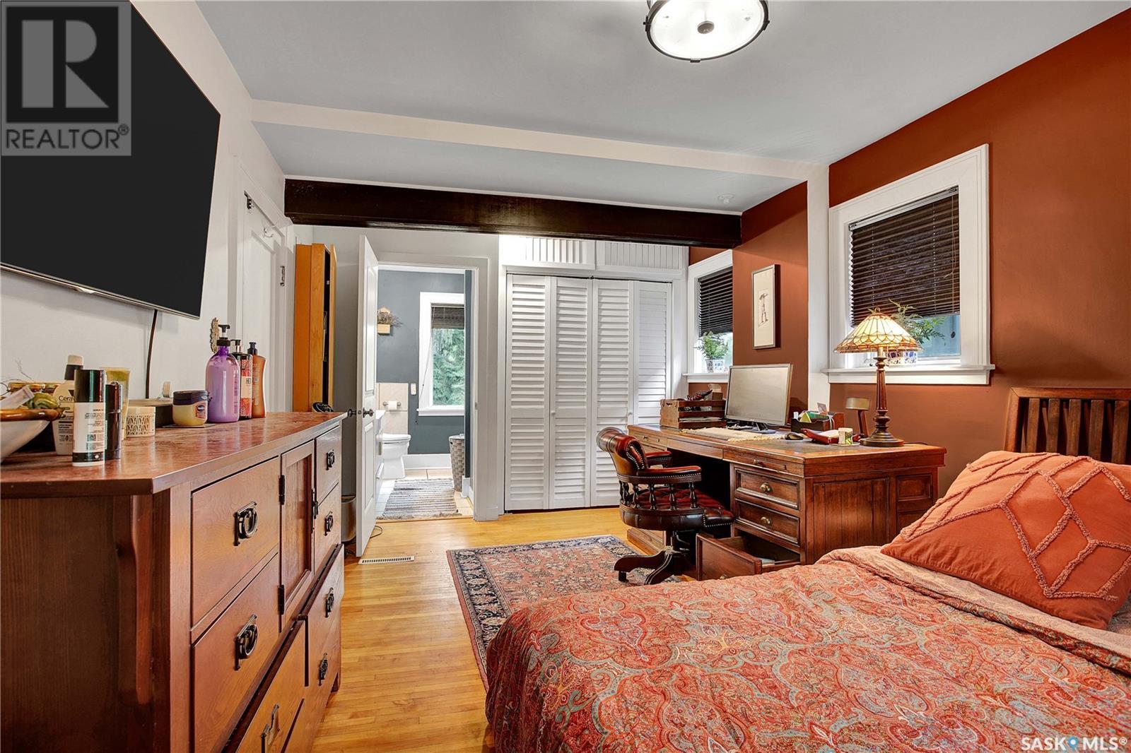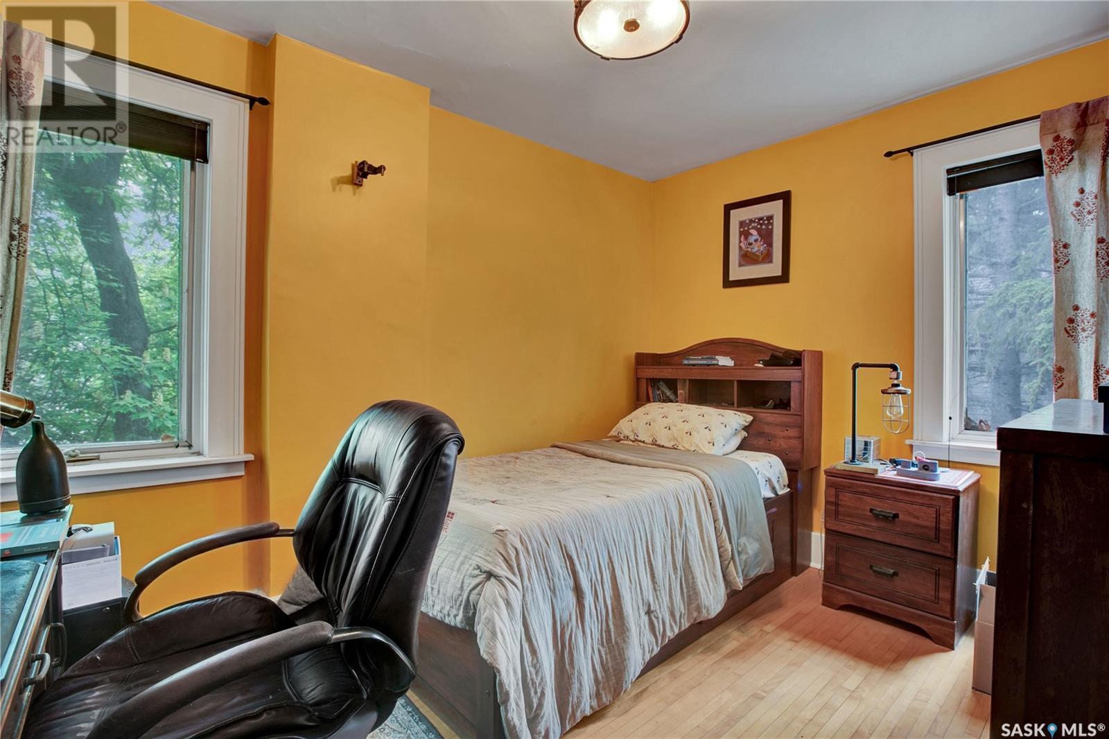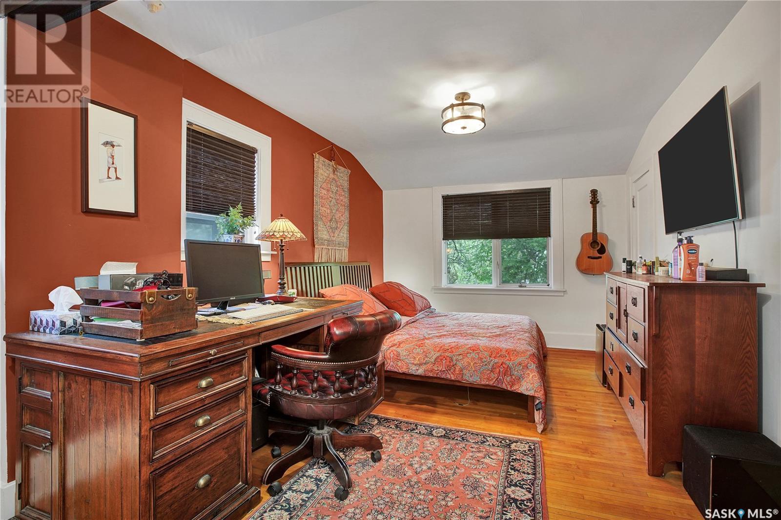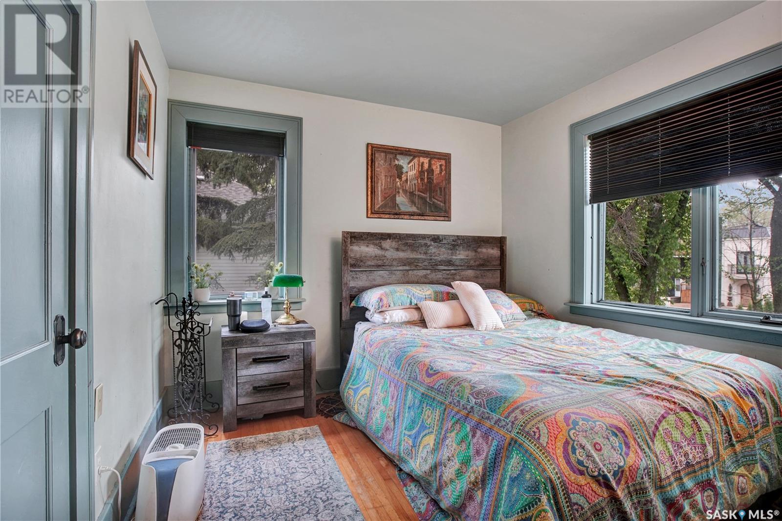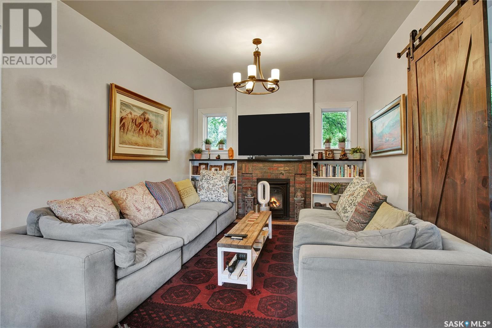 Situated in one of Saskatoon’s most sought-after neighbourhoods, this Dutch Colonial gem on historic University Drive blends timeless charm with thoughtful modern upgrades, just steps from the river. Built in 1926, the two-storey home features 4 bedrooms and 3 bathrooms, original hardwood floors, a cozy living room with fireplace, a stunning sunroom with shuttered windows, and formal dining with character-filled built-ins. The kitchen combines vintage appeal with modern function, featuring a Miele gas cooktop and oven, smart fridge-freezer, farmhouse sink, and garden views. Upstairs offers two secondary bedrooms, a 4-piece bath, and a spacious primary suite with a newly added shower room. The lower level includes a stylish rec room, guest bedroom, updated bathroom, and laundry with a high-end smart washer and dryer. Additional upgrades include a high-efficiency furnace & newer on-demand water heater. Delight in the expansive, tree-lined backyard—complete with a detached garage, additional parking, garden furniture, and bbq w/ gas hookup—offering a seamless blend of comfort and outdoor charm. This exceptional Nutana residence boasts unparalleled walkability to Broadway Avenue’s vibrant boutiques and cafes, as well as the scenic river trails. (id:43042)