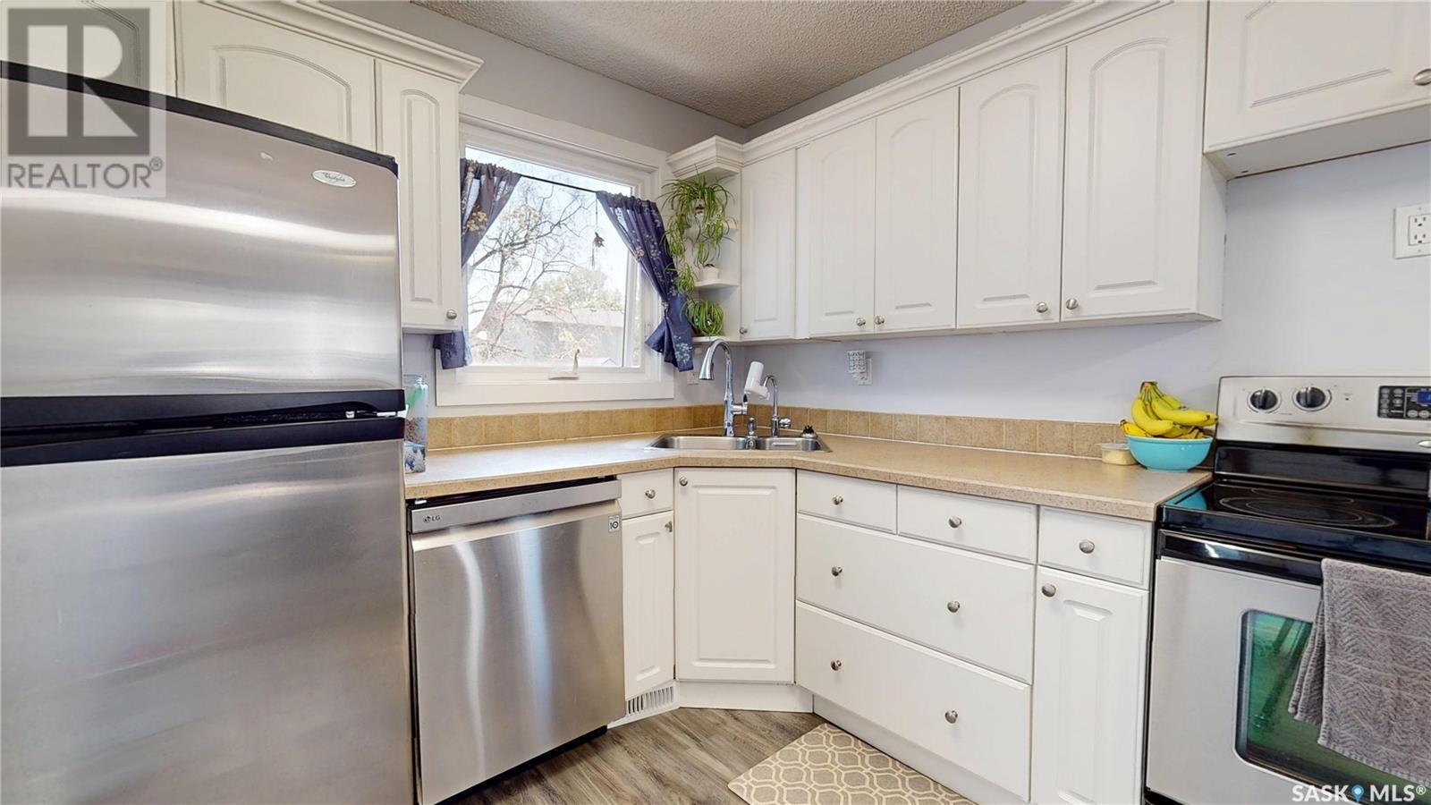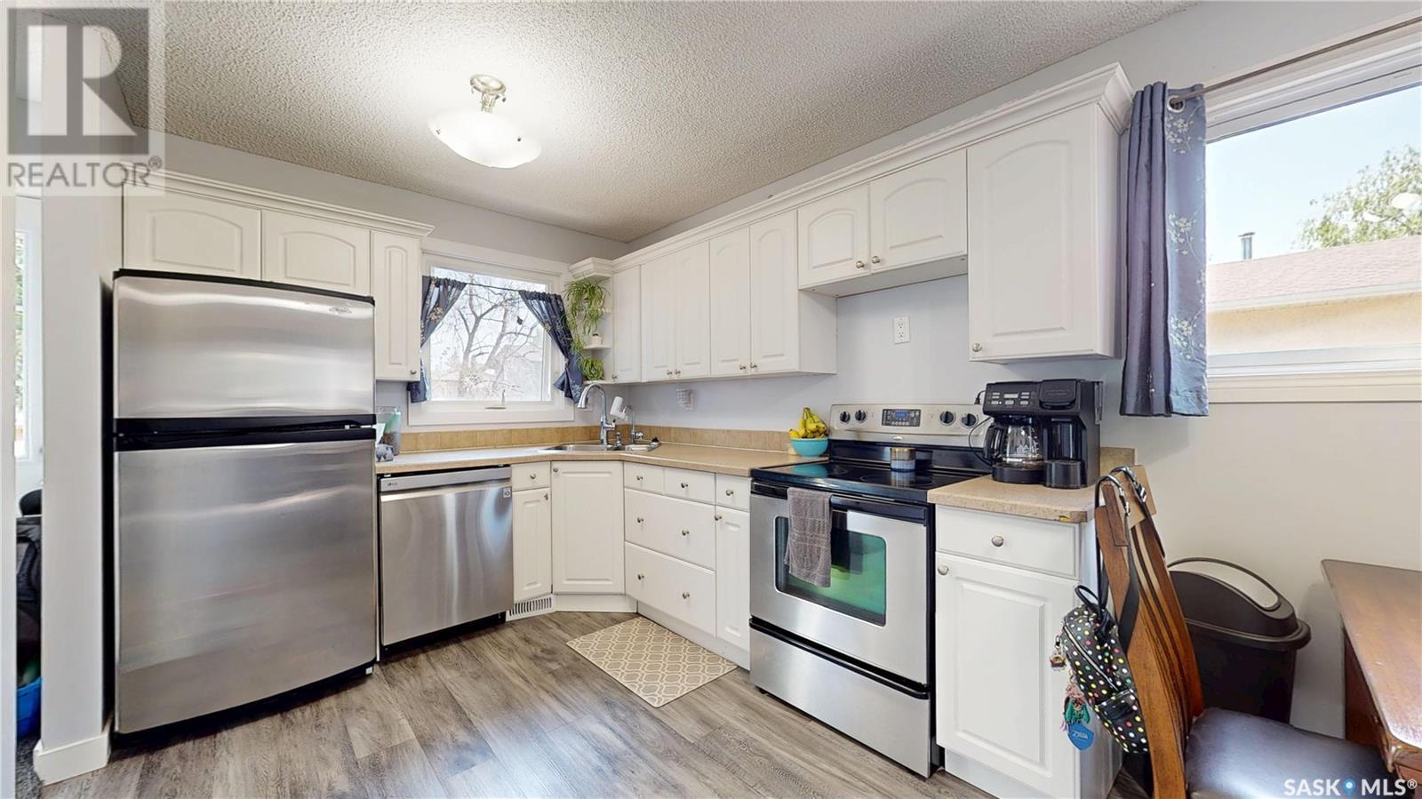 Check out 715 Kelsey Street – a 896 sq. ft. home that makes great use of space, with three bedrooms — including a roomy 120 sq. ft. primary — and a fully finished basement that adds even more flexibility. The bright and open main floor features a clean, modern kitchen with white cabinets, stainless appliances, and a great flow into the living room, making it perfect for hanging out or hosting friends. Big windows throughout let in tons of natural light, giving the whole home a warm, airy vibe. Downstairs, you’ll find a comfy rec room, a dedicated office space for work or study, and lots of storage to keep things tidy. Updates throughout the home include easy-care vinyl plank flooring upstairs, plush carpeting in the basement, and sharp, modern finishes in both bathrooms. The neutral tones give it a fresh feel and make it easy to make the space your own. Located just a short walk from parks, schools, and local shops, this home is in a great spot for anyone looking for a quiet, family-friendly area with easy access to everything you need. Whether you’re starting out, downsizing, or just looking for something move-in ready, 715 Kelsey Street has a lot to offer. (id:43042)