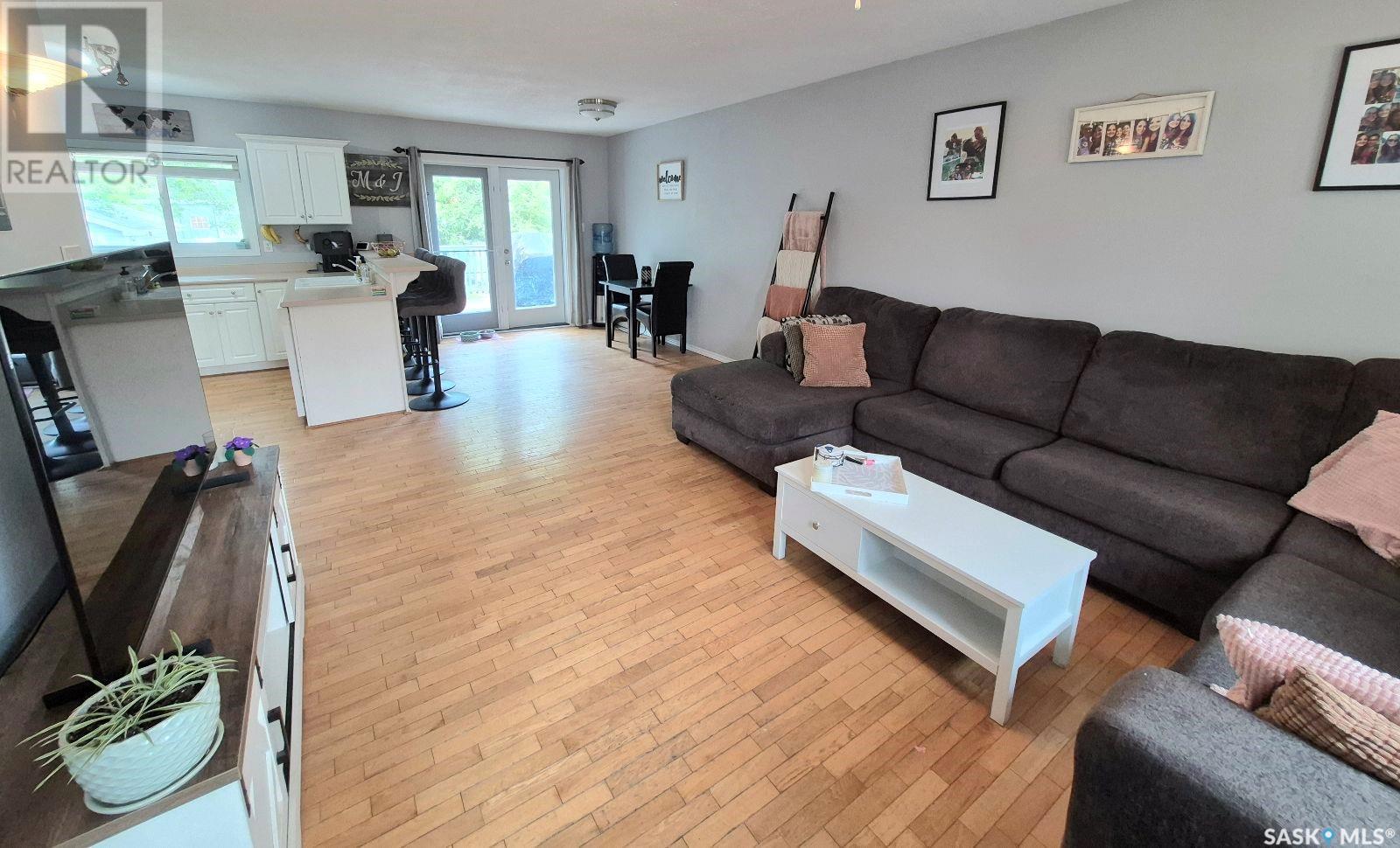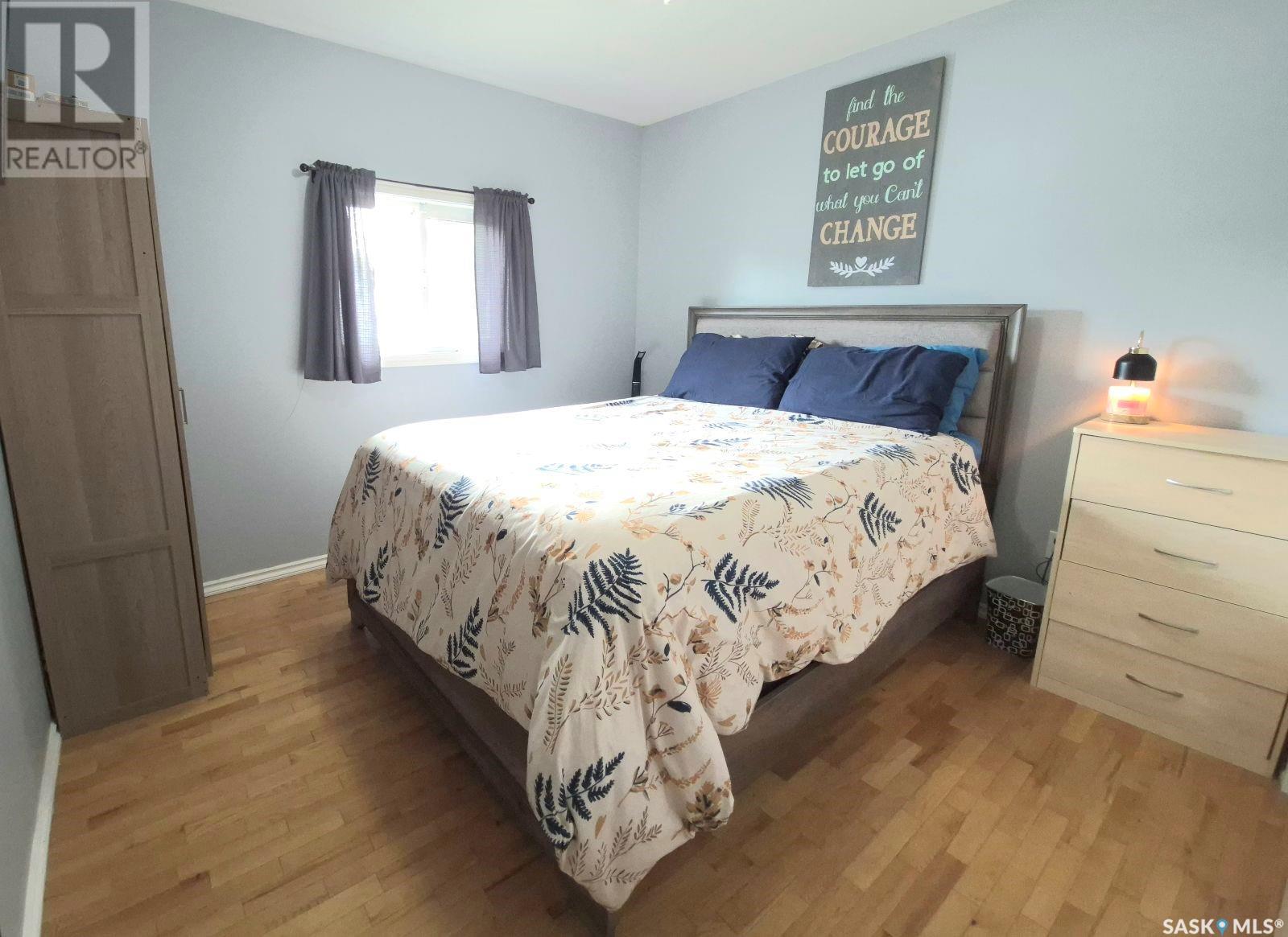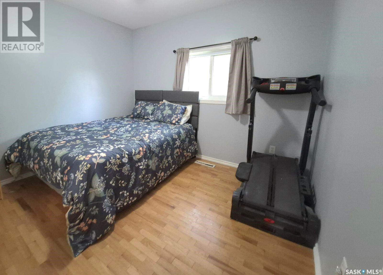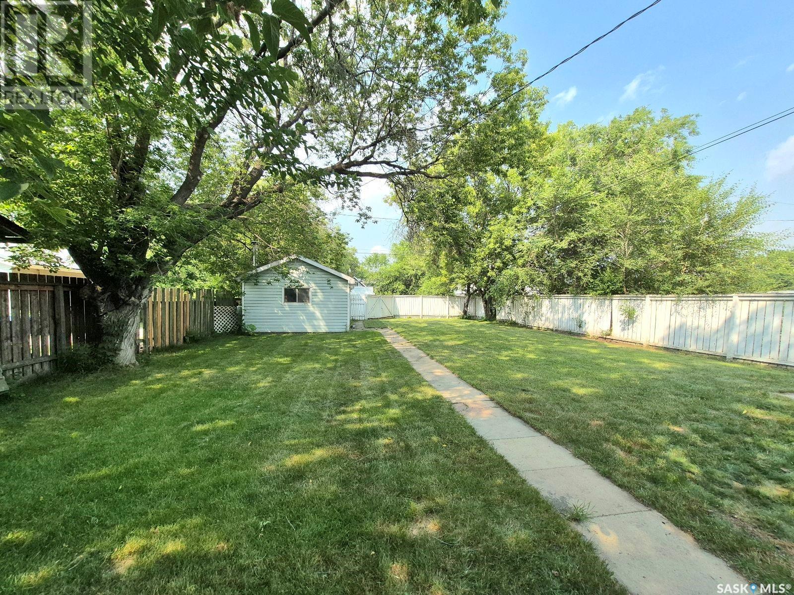 Welcome to this charming 962 sqft bungalow located in a quiet East Flat neighborhood. This well-cared-for home offers an inviting main floor layout with an open-concept kitchen, dining, and living room, all featuring beautiful original hardwood flooring. The main level includes three nicely sized bedrooms and a full 4-piece bathroom complete with a relaxing jacuzzi tub, making it both functional and comfortable for families or first-time buyers. Downstairs, you'll find a shared laundry area and plenty of room for storage. The basement also features a non-conforming one-bedroom suite, which includes its own living room, kitchen, and 4-piece bathroom. This added space provides excellent revenue potential. Outside, the home continues to impress with a fully fenced backyard, a spacious deck equipped with a natural gas BBQ hook-up, and a single detached garage. Additionally, there are two off-street parking spots with electrical outlets, for added convenience during our chilly Saskatchewan winters. Recent updates include a new water heater installed in 2020, new front and back exterior doors replaced in 2024, and a new fridge added in 2024. Whether you're looking to get into your first home or expand your investment portfolio, this property offers great value and flexibility. Don’t miss out—come take a look today!... As per the Seller’s direction, all offers will be presented on 2025-07-17 at 11:00 AM (id:43042)