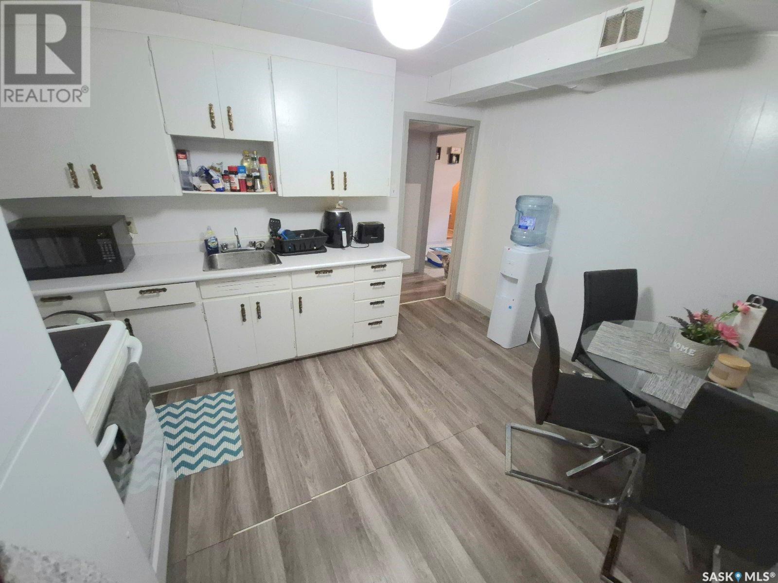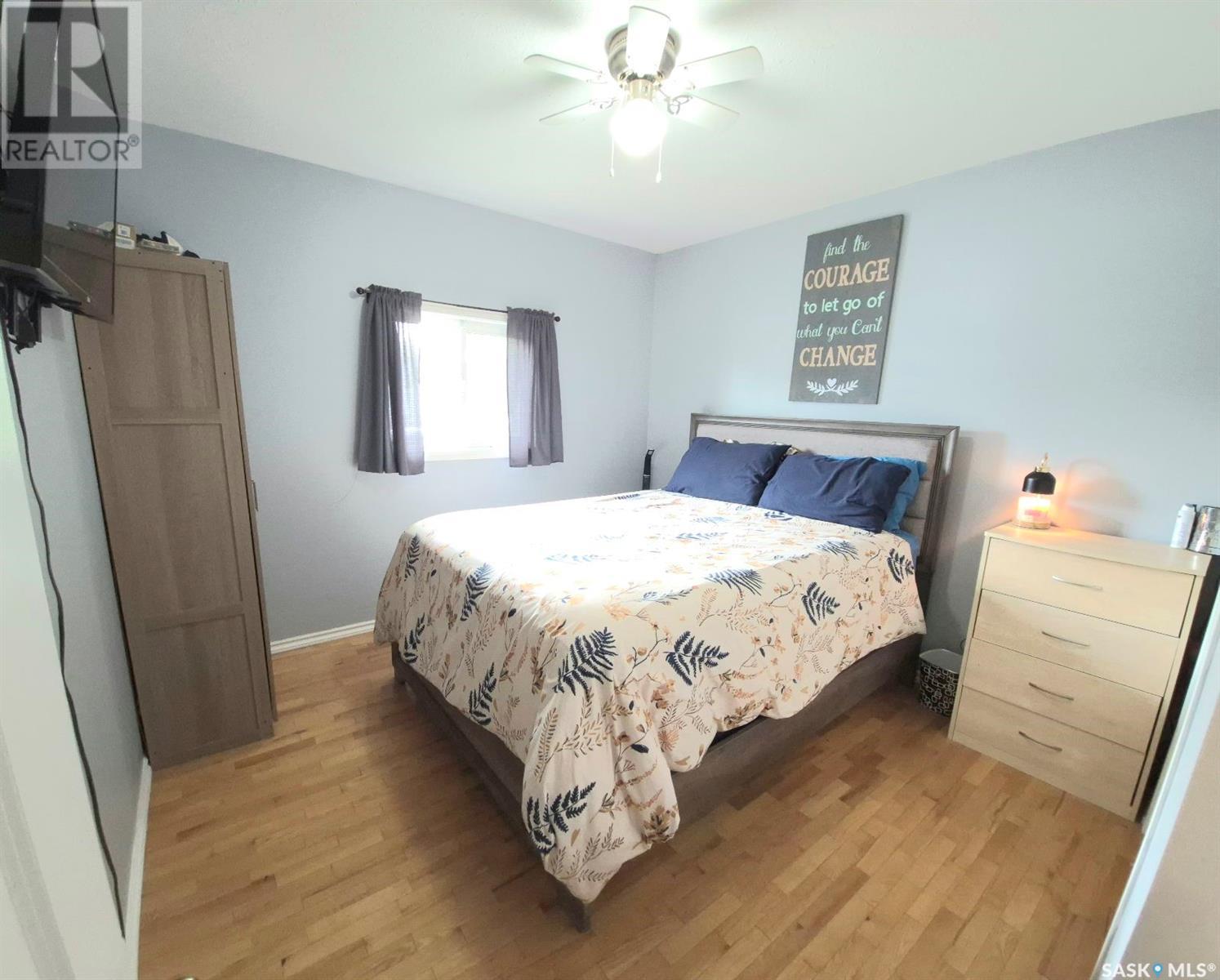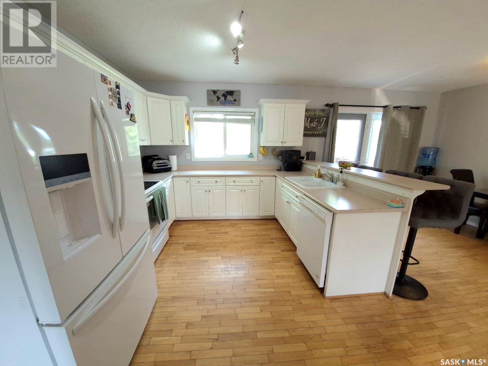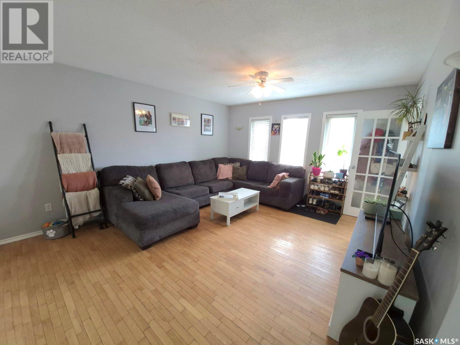 Welcome to this charming 962 sqft bungalow located in a quiet East Flat neighborhood. This well-cared-for home offers an inviting main floor layout with an open-concept kitchen, dining, and living room, all featuring beautiful original hardwood flooring. The main level includes three nicely sized bedrooms and a full 4-piece bathroom complete with a relaxing jacuzzi tub, making it both functional and comfortable for families or first-time buyers. Downstairs, you'll find a shared laundry area and plenty of room for storage. The basement also features a non-conforming one-bedroom suite, which includes its own living room, kitchen, and 4-piece bathroom. This added space provides excellent revenue potential. Outside, the home continues to impress with a fully fenced backyard, a spacious deck equipped with a natural gas BBQ hook-up, and a single detached garage. Additionally, there are two off-street parking spots with electrical outlets, for added convenience during our chilly Saskatchewan winters. Recent updates include a new water heater installed in 2020, new front and back exterior doors replaced in 2024, and a new fridge added in 2024. Whether you're looking to get into your first home or expand your investment portfolio, this property offers great value and flexibility. Don’t miss out—come take a look today!... As per the Seller’s direction, all offers will be presented on 2025-07-17 at 11:00 AM (id:43042)
