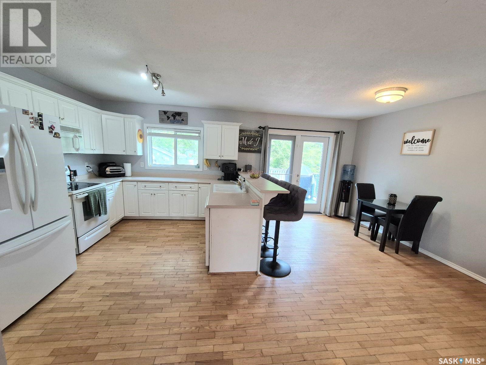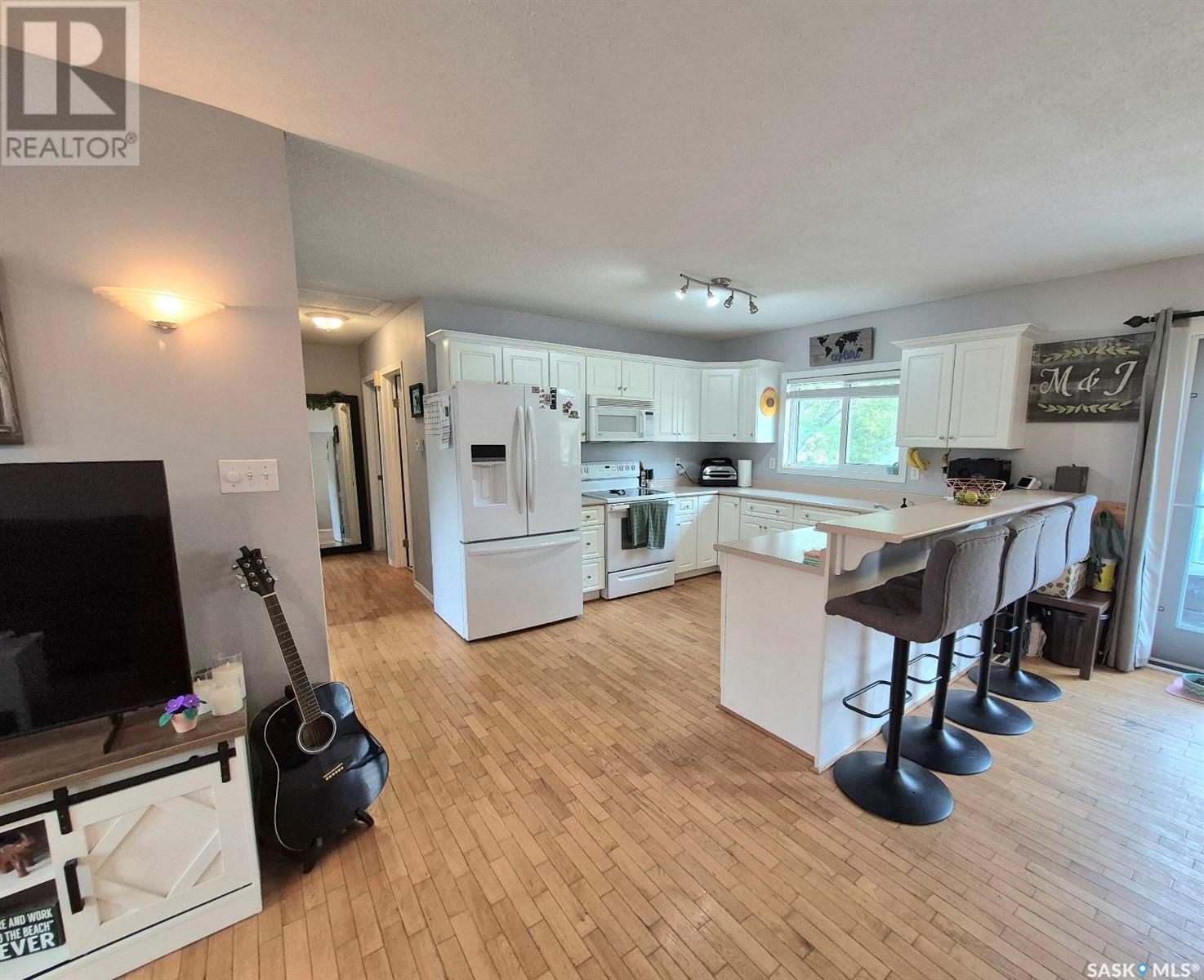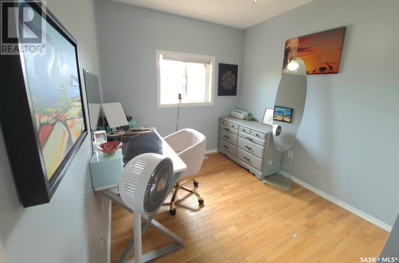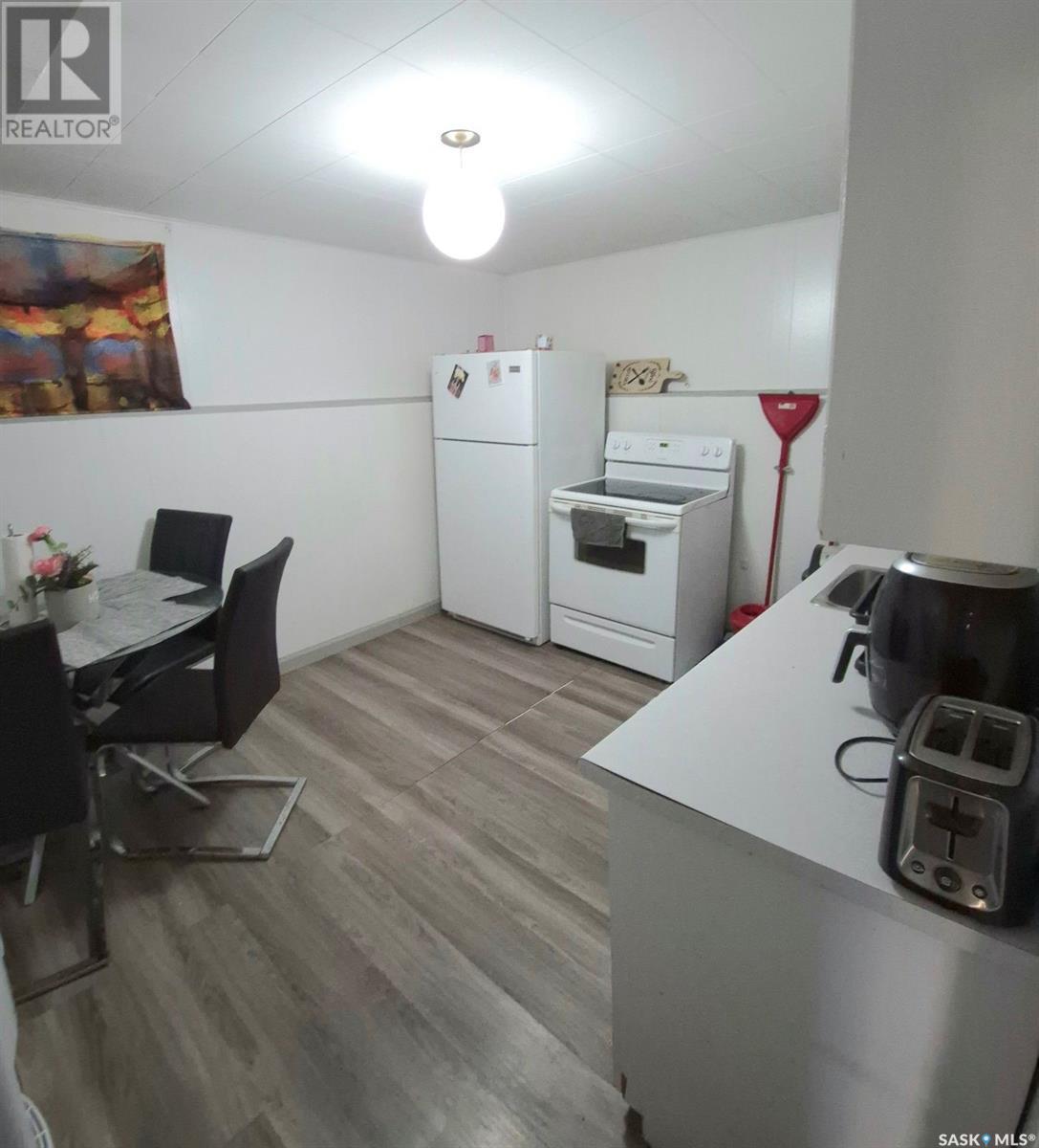Welcome to this charming 962 sqft bungalow located in a quiet East Flat neighborhood. This well-cared-for home offers an inviting main floor layout with an open-concept kitchen, dining, and living room, all featuring beautiful original hardwood flooring. The main level includes three nicely sized bedrooms and a full 4-piece bathroom complete with a relaxing jacuzzi tub, making it both functional and comfortable for families or first-time buyers. Downstairs, you'll find a shared laundry area and plenty of room for storage. The basement also features a non-conforming one-bedroom suite, which includes its own living room, kitchen, and 4-piece bathroom. This added space provides excellent revenue potential. Outside, the home continues to impress with a fully fenced backyard, a spacious deck equipped with a natural gas BBQ hook-up, and a single detached garage. Additionally, there are two off-street parking spots with electrical outlets, for added convenience during our chilly Saskatchewan winters. Recent updates include a new water heater installed in 2020, new front and back exterior doors replaced in 2024, and a new fridge added in 2024. Whether you're looking to get into your first home or expand your investment portfolio, this property offers great value and flexibility. Don’t miss out—come take a look today!... As per the Seller’s direction, all offers will be presented on 2025-07-17 at 11:00 AM (id:43042)