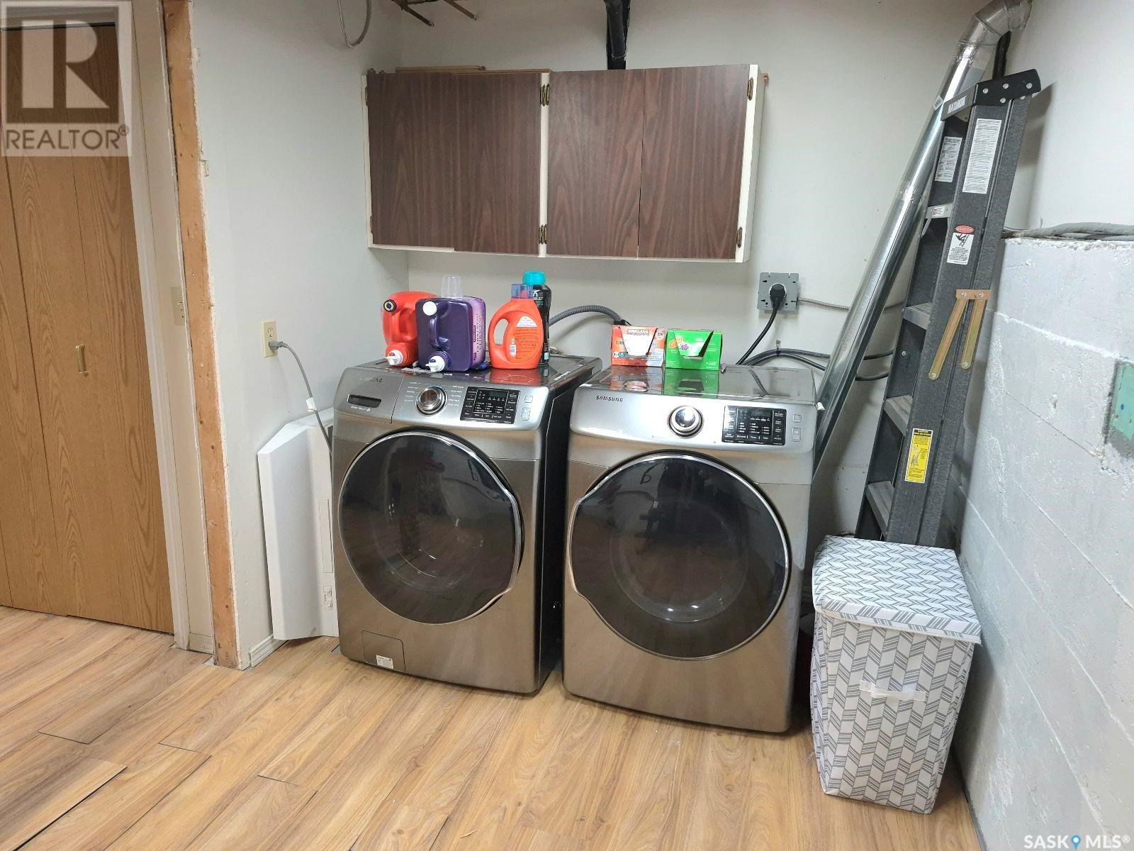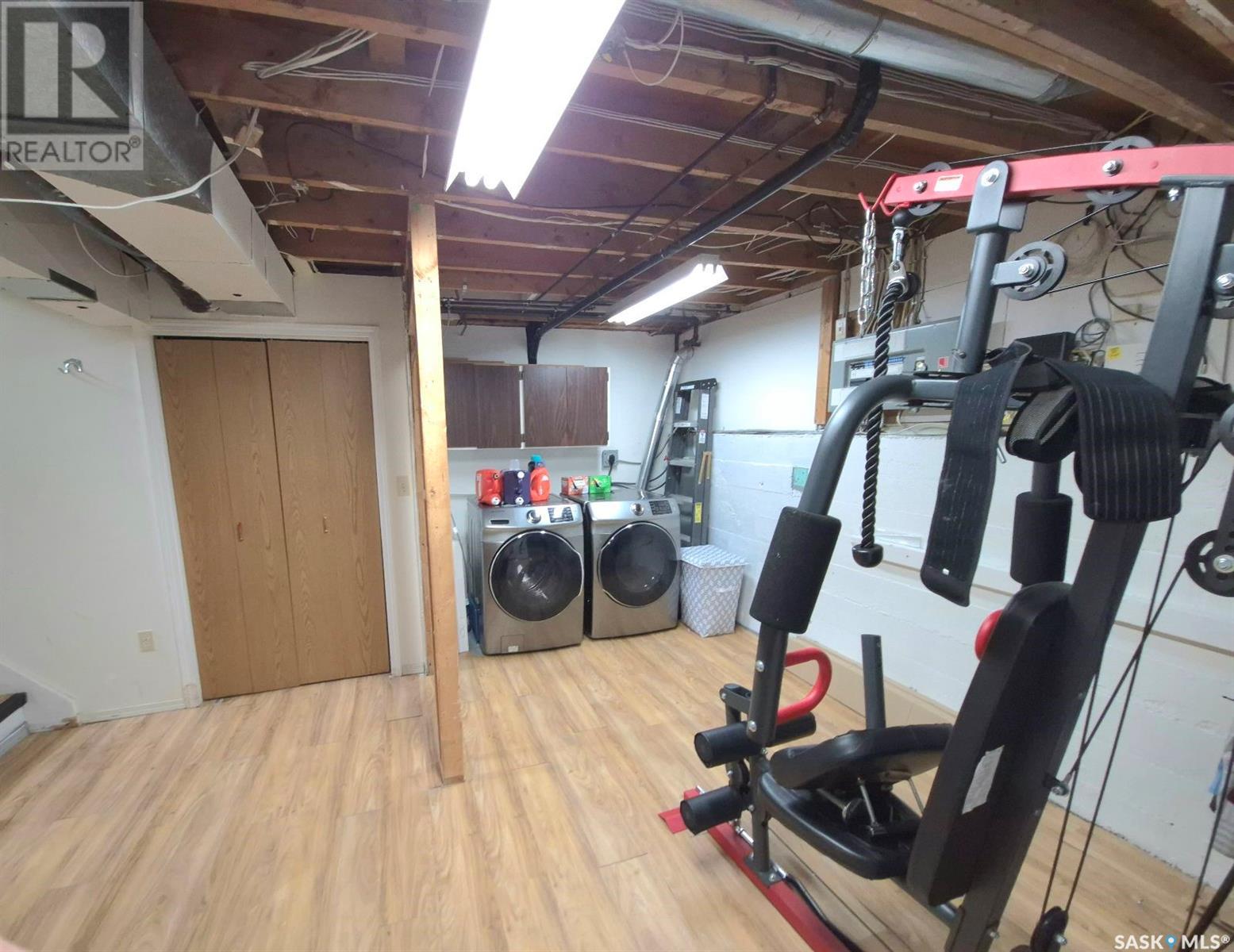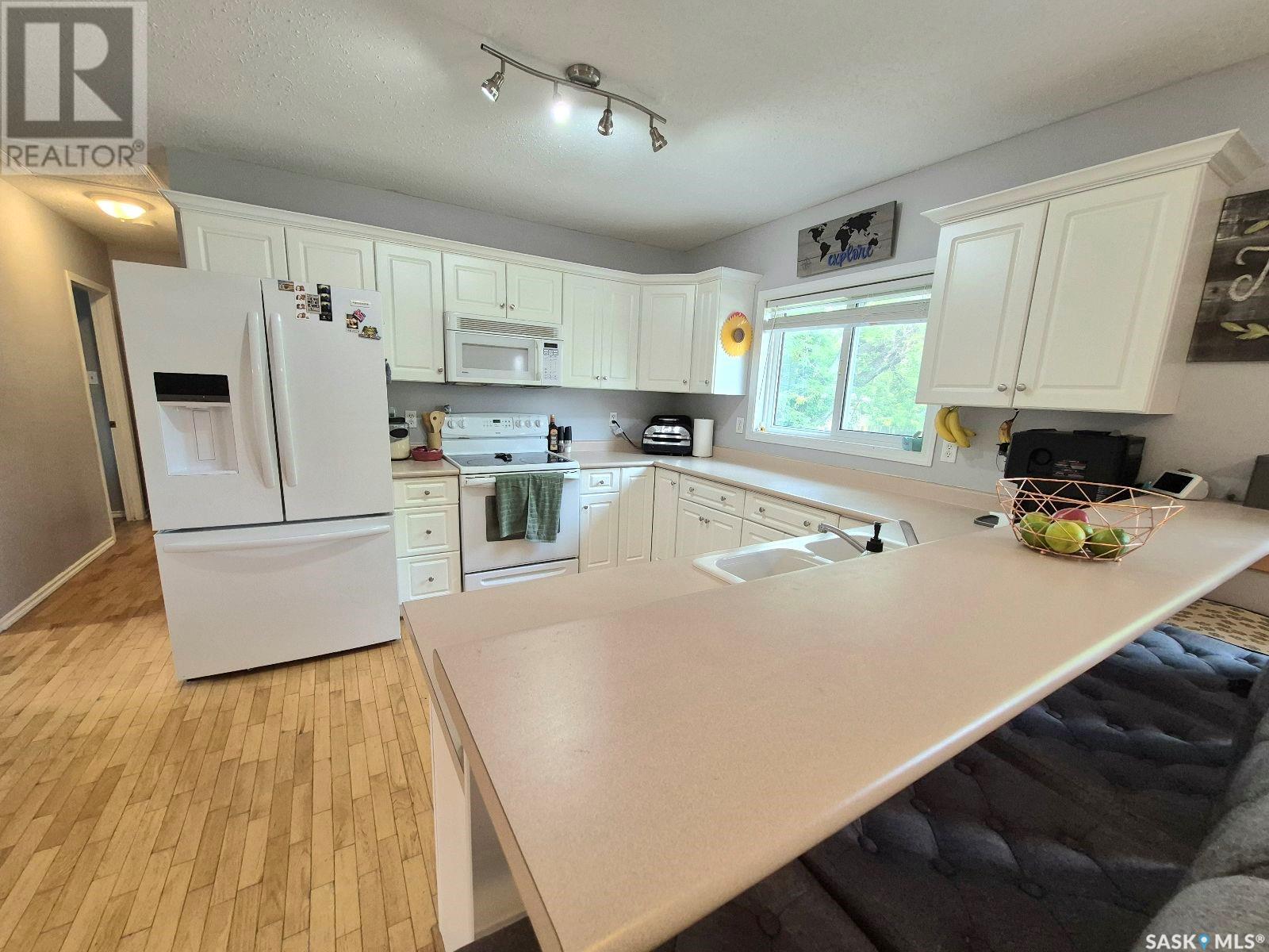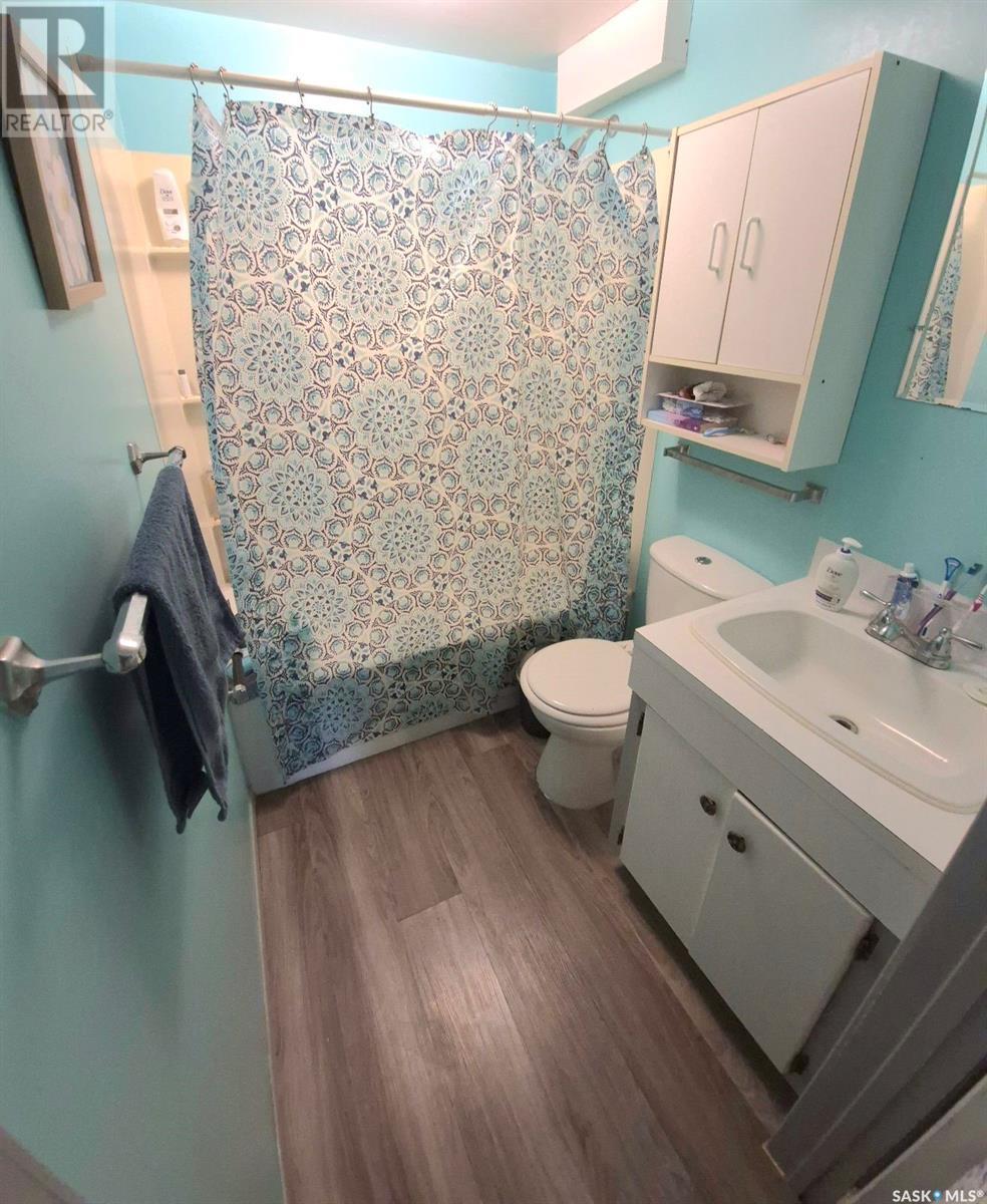 Welcome to this charming 962 sqft bungalow located in a quiet East Flat neighborhood. This well-cared-for home offers an inviting main floor layout with an open-concept kitchen, dining, and living room, all featuring beautiful original hardwood flooring. The main level includes three nicely sized bedrooms and a full 4-piece bathroom complete with a relaxing jacuzzi tub, making it both functional and comfortable for families or first-time buyers. Downstairs, you'll find a shared laundry area and plenty of room for storage. The basement also features a non-conforming one-bedroom suite, which includes its own living room, kitchen, and 4-piece bathroom. This added space provides excellent revenue potential. Outside, the home continues to impress with a fully fenced backyard, a spacious deck equipped with a natural gas BBQ hook-up, and a single detached garage. Additionally, there are two off-street parking spots with electrical outlets, for added convenience during our chilly Saskatchewan winters. Recent updates include a new water heater installed in 2020, new front and back exterior doors replaced in 2024, and a new fridge added in 2024. Whether you're looking to get into your first home or expand your investment portfolio, this property offers great value and flexibility. Don’t miss out—come take a look today!... As per the Seller’s direction, all offers will be presented on 2025-07-17 at 11:00 AM (id:43042)