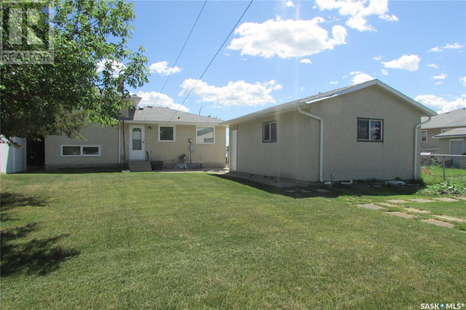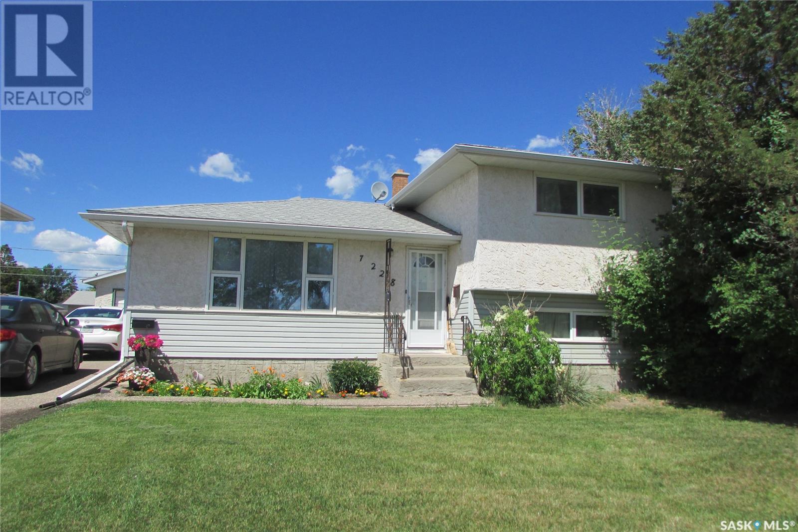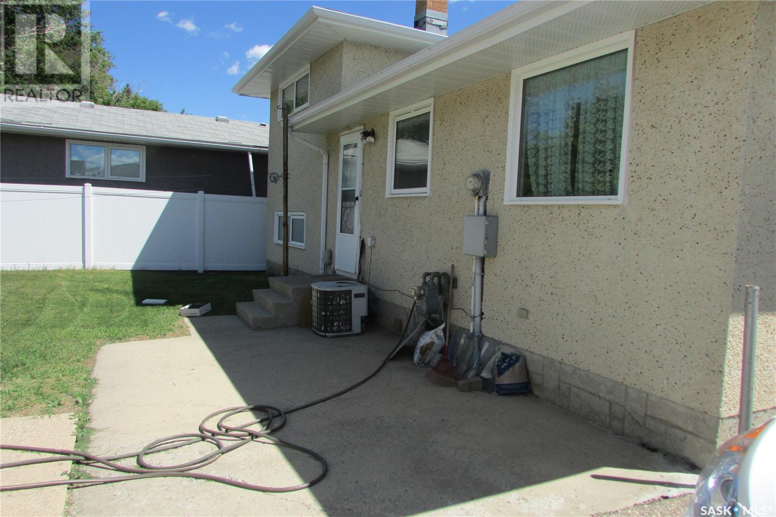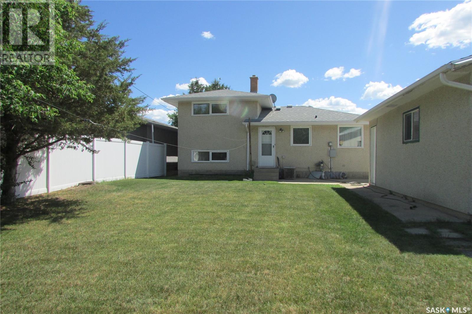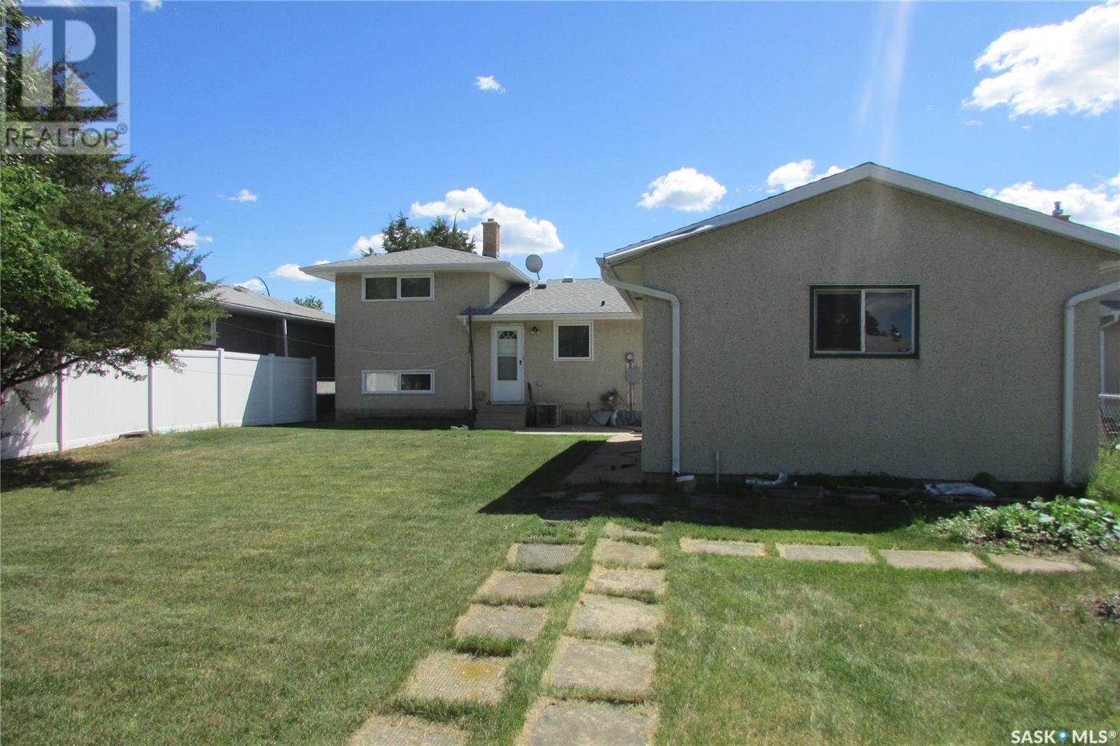 Current owners have enjoyed living here for over 40 years. Practical and functional floor plan featuring 4 bedrooms and 2 bathrooms. The kitchen overlooks the spacious backyard and offers ample cabinet space, seamlessly adjoining a bright, south-facing living room — perfect for everyday living and entertaining. Most windows have been updated, and the shingles are in good condition, offering peace of mind. Enjoy summer comfort with central air conditioning, and make the most of the excellent large backyard. The single detached garage (freezer included) is a good size, with additional parking space for up to 3 vehicles. Conveniently located just steps from a park and bike path, with quick 2-minute access to the Regina Bypass — making commuting a breeze. A great opportunity in a prime location! (id:43042)