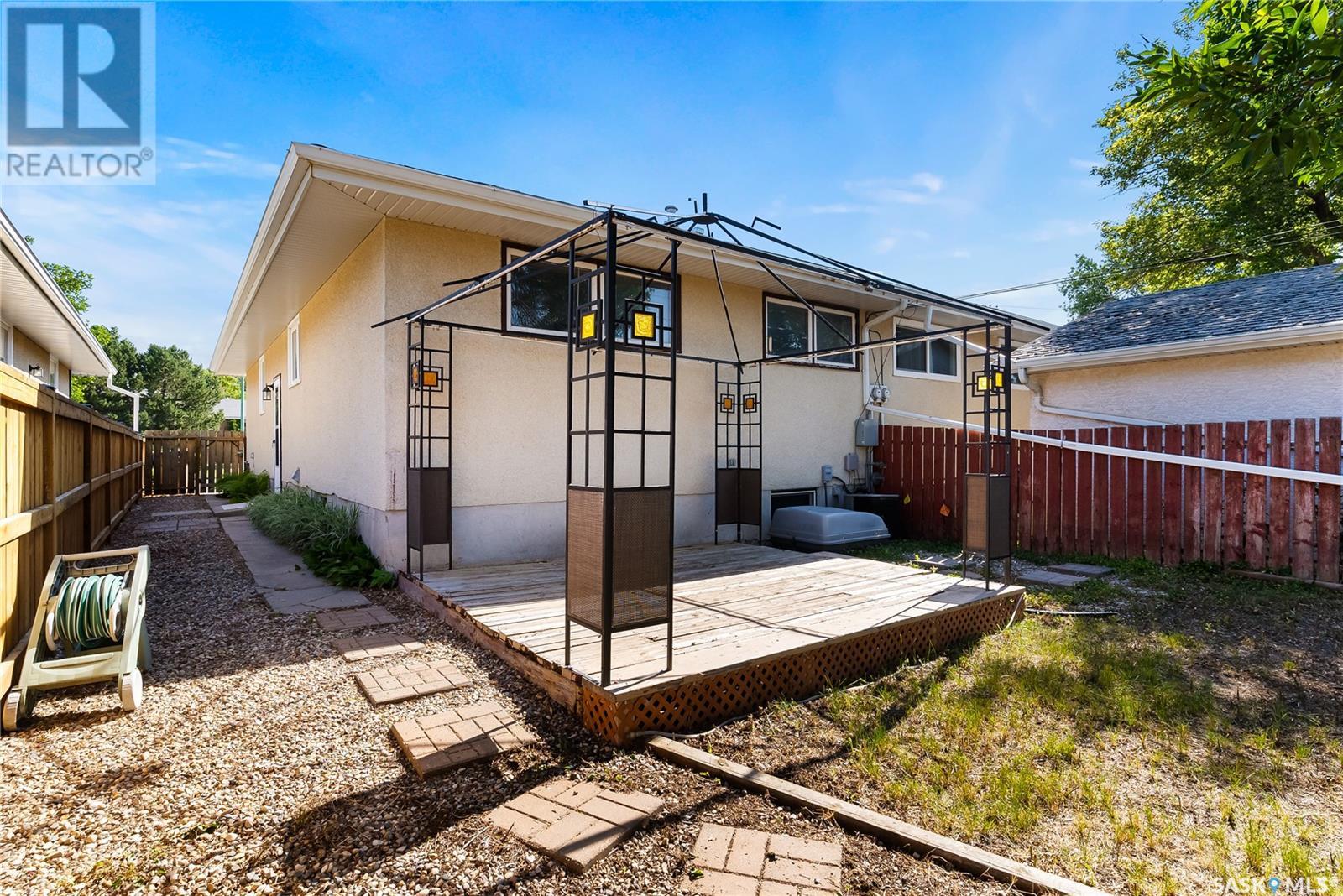 Welcome to 7324 Bowman Avenue. A well maintained three-bedroom semi-detached bungalow in a quaint, quiet community on the edge of Regina’s westside. Clean and move in ready! As you walk into the front door, you'll immediately notice the vinyl plank floors, the spacious living room, and the great kitchen equipped with appliances and plenty of space for a dining room table. Down the hall, you'll find a 4pc. bath and three spacious bedrooms with good closet space. The lower level is open and is ready for your own personal touch. It offers a bedroom (window may not meet egress), storage, laundry area and has lots of potential. This home also offers a separate entry to the basement and a fully fenced backyard with a shed, deck and a gazebo. Extras and updates: Central air conditioning, updated shingles, new vinyl plank flooring in living room, new tub surround, updated soffits facia and eves, many updated windows, updated front screen door and more... This property is close to the beautiful A.E. Wilson Park, Rick Hansen Optimist Park, and miles of walking paths. Great opportunity to break the rental cycle and jump into homeownership to start building up equity! (id:43042)