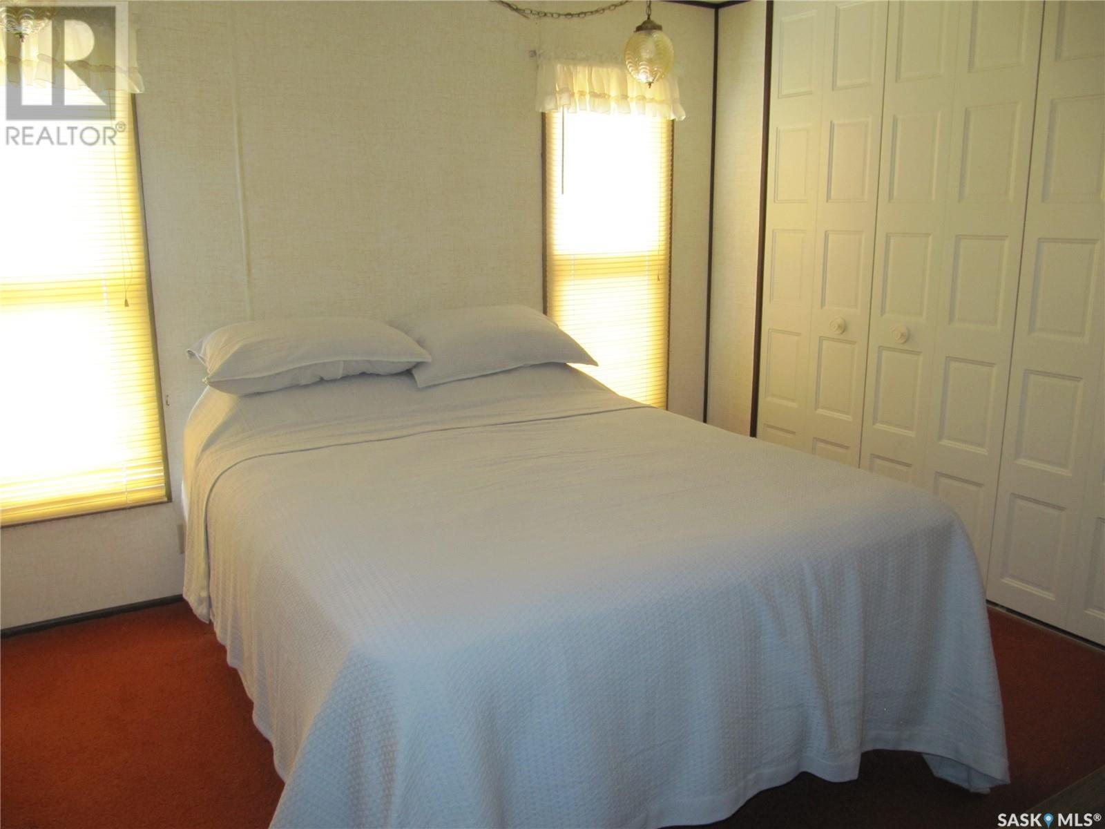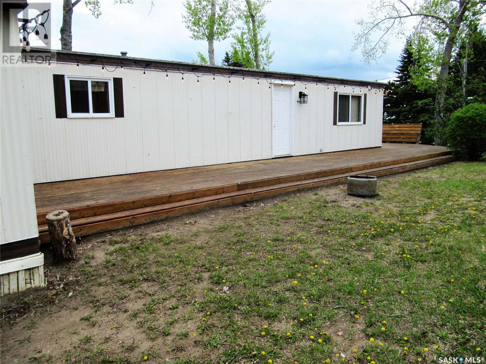 Cabin in the subdivision of Bay View Heights at the north end of the Saskatchewan Provincial Park that is located approximately 3 km’s north of Cochin SK. This cabin has 3 bedrooms and an addition of 280 sq ft that is one open room being used as a rec room or bedroom that could sleep 6-10 people. Windows have been upgraded, 450 sq ft two sided deck and a 12 x 20 ft garage for storage. When insulating the water line with a electric heat tape this cabin can be used year-round. Other than some personal items being removed all chattels will stay as shown. (id:43042)