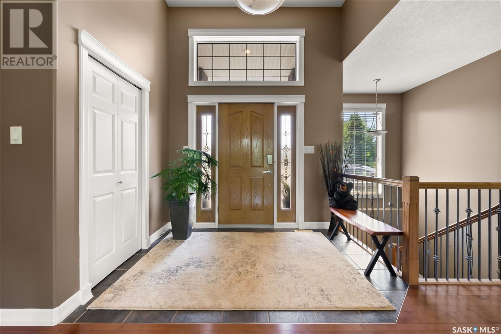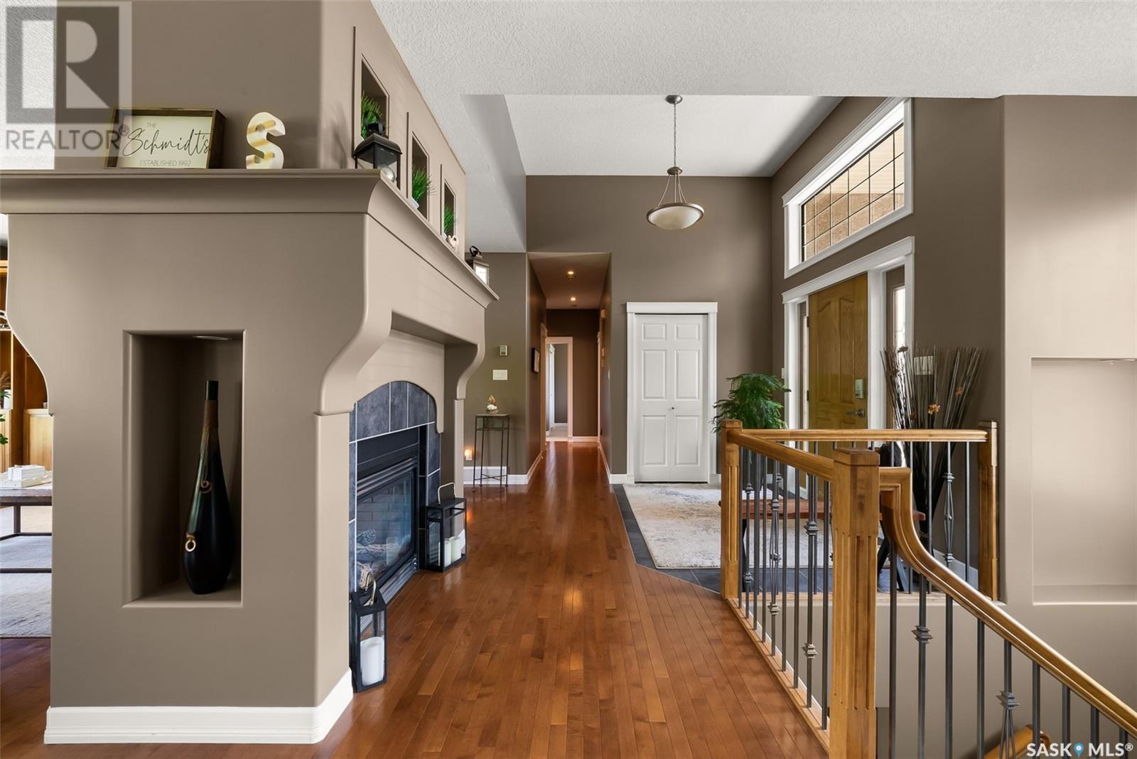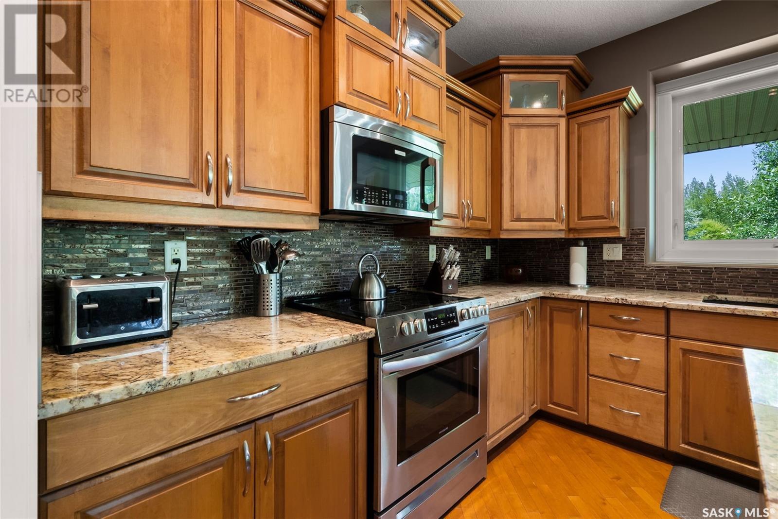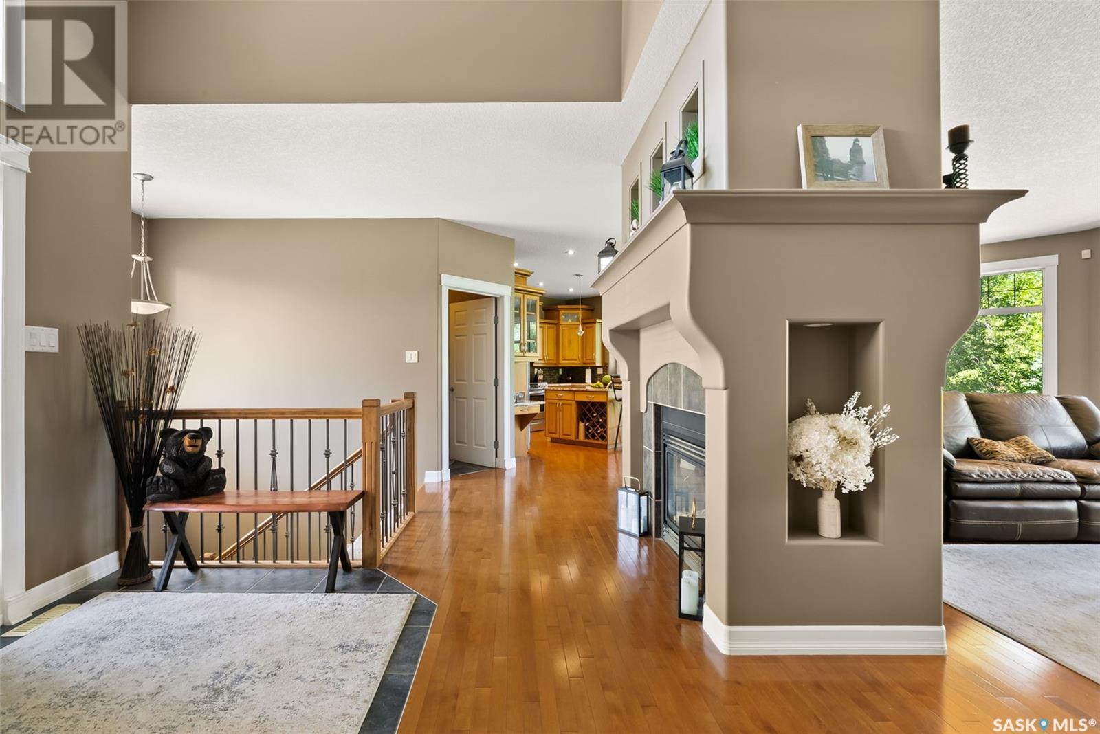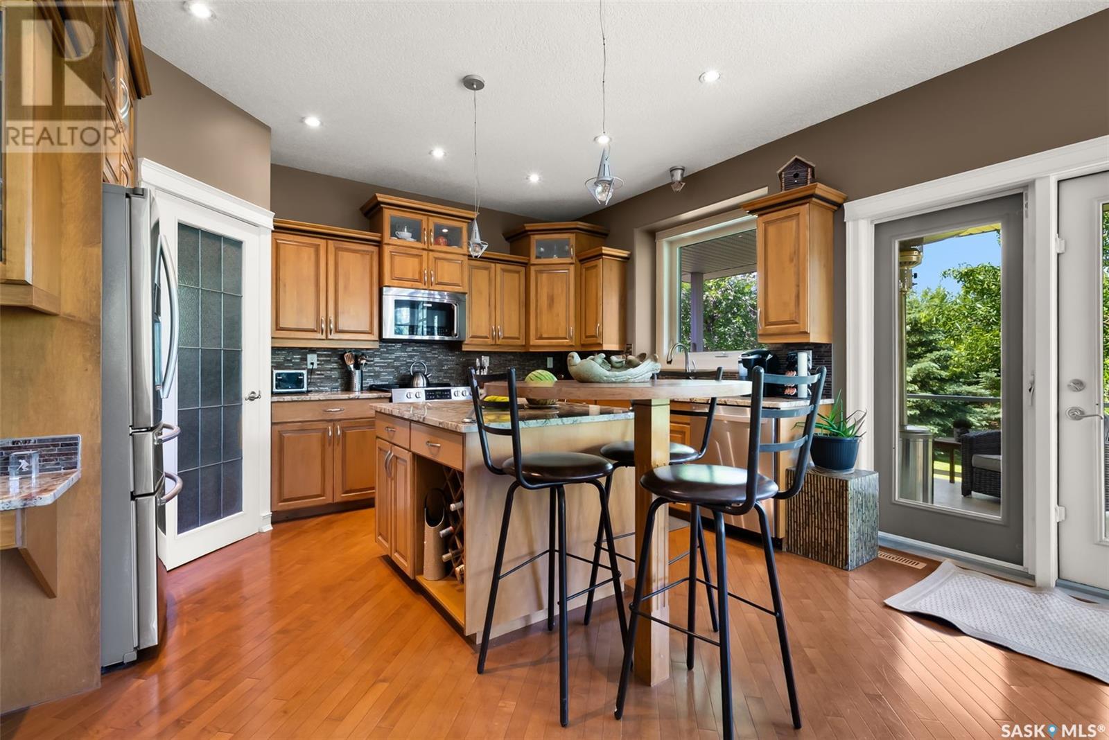 Welcome to 8 Jaxon Road - a stunning walkout bungalow nestled on 4.99 acres of park-like paradise, right on the edge of White City. Pride of ownership is evident in every inch of this meticulously maintained property, lovingly cared for by the original owners over the past 20 years. Just a short drive from Regina, this home offers the best of both worlds - quiet country living with city convenience. Step into the spacious foyer, where a beautiful two-sided gas fireplace greets you and connects the entryway to the sun-filled living room. Enjoy views of your private, tree-lined yard through oversized windows, and cozy up in the living room with built-ins and a hidden TV. The open-concept main floor flows seamlessly into the dining room and kitchen, featuring granite countertops, a corner pantry, ample cabinetry, and a full stainless steel appliance package. The main level also boasts a large primary suite with a walk-in closet and ensuite, two additional bedrooms, a full 4pc bathroom, and a clever laundry chute leading to the lower level. Downstairs, the bright walkout basement with in-floor heat offers a massive rec room complete with a wet bar, perfect for entertaining! You’ll also find two more bedrooms, an additional bathroom, a large laundry room with built-in cabinets and ironing board, and a mechanical/storage room. A mudroom with custom lockers leads into the dream garage—an oversized triple with its own bathroom and a sports locker room ideal for hockey gear or outdoor toys. Step outside to your own private park-like yard. Enjoy the covered deck, sprawling lawn, concrete patio with built-in fire pit, and wired 220V service ready for a hot tub. Underground sprinklers and three yard hydrants (fed by an 85-foot well) make caring for the lush landscape easy, while the home itself is connected to town water. This incredible acreage offers space, privacy, and the comfort of thoughtful design—ready for a new family to love it as much as the current one has. (id:43042)