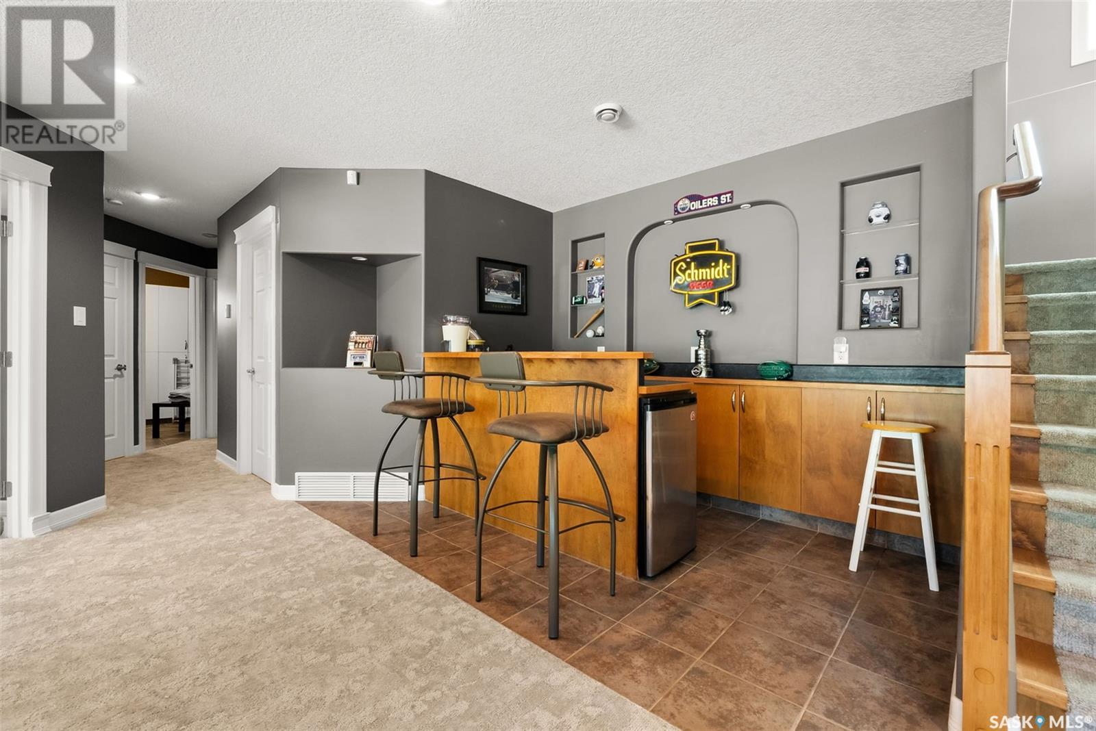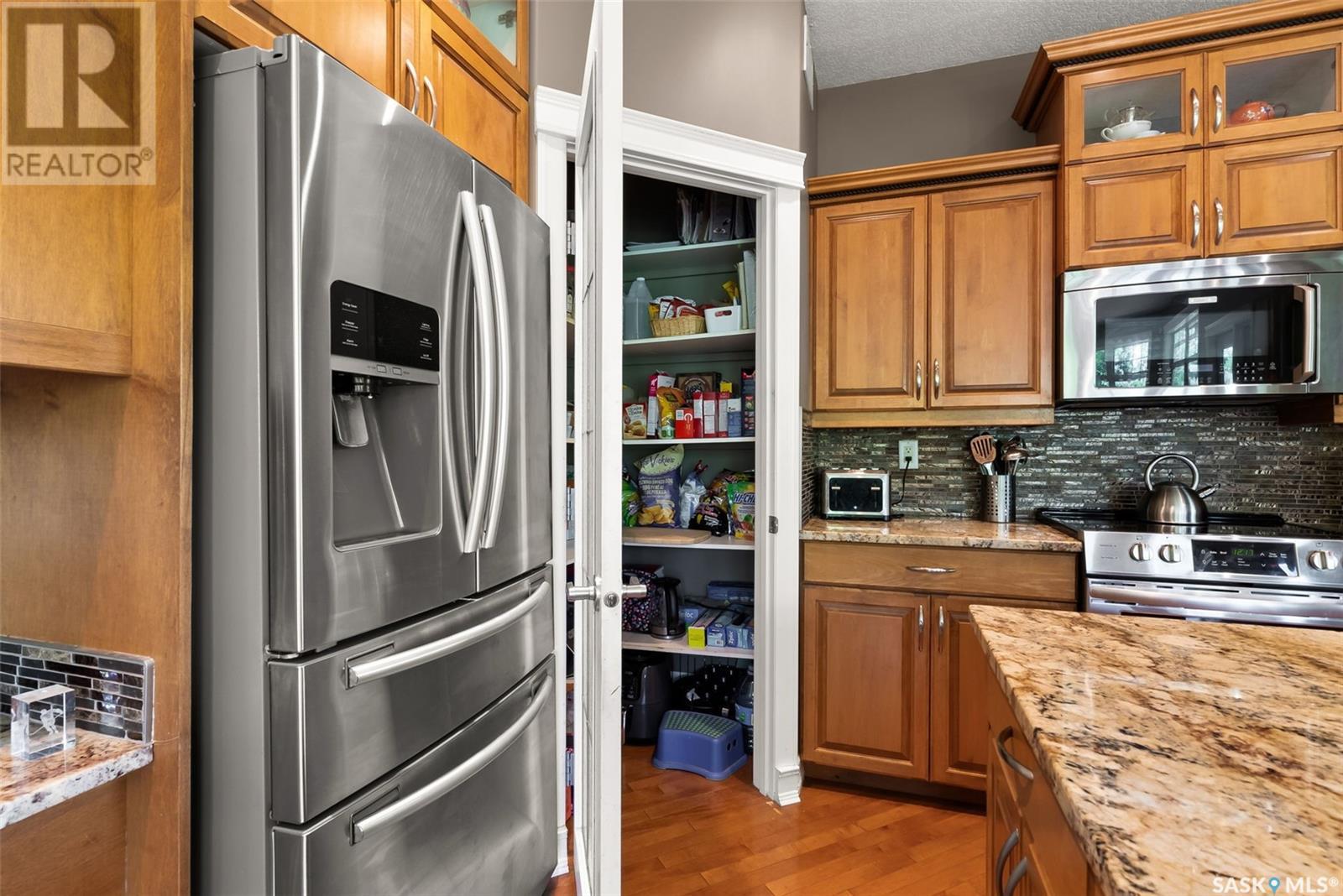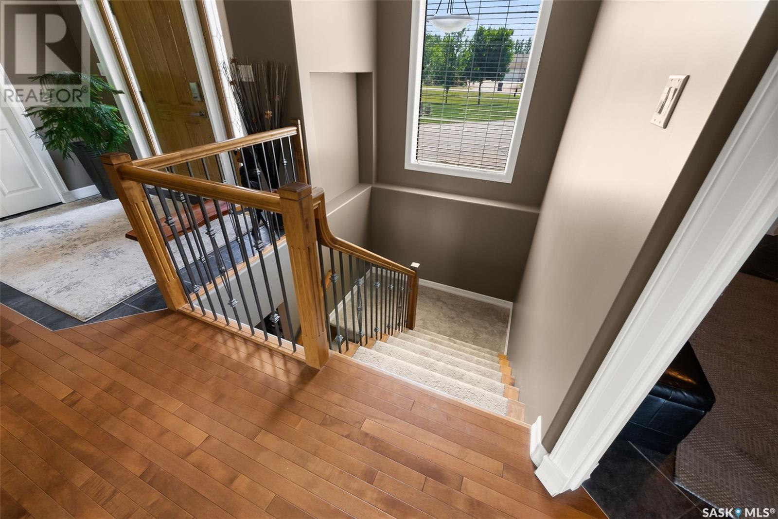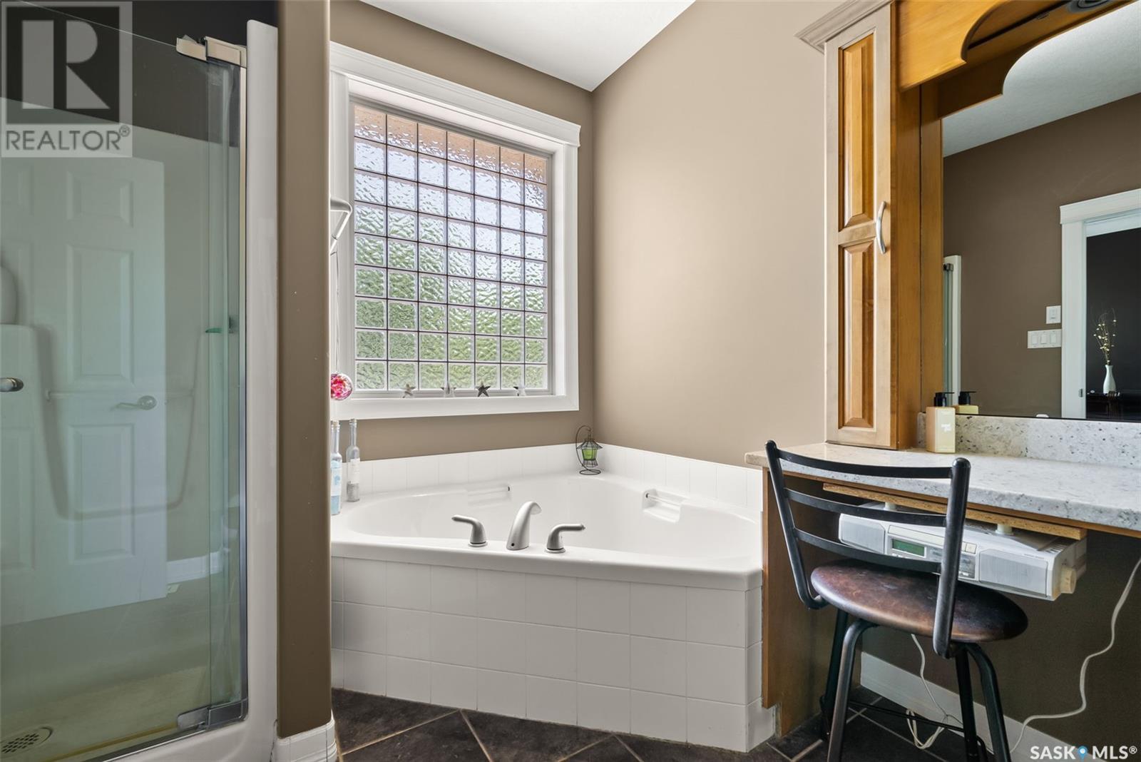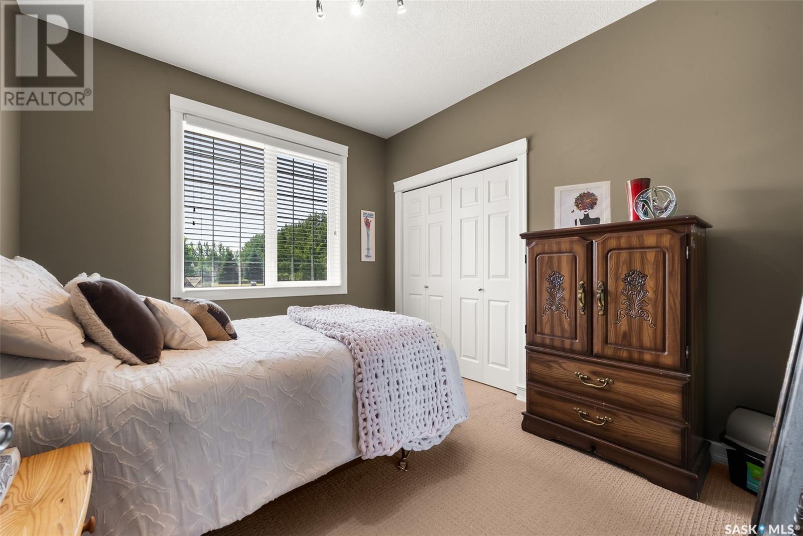 Welcome to 8 Jaxon Road - a stunning walkout bungalow nestled on 4.99 acres of park-like paradise, right on the edge of White City. Pride of ownership is evident in every inch of this meticulously maintained property, lovingly cared for by the original owners over the past 20 years. Just a short drive from Regina, this home offers the best of both worlds - quiet country living with city convenience. Step into the spacious foyer, where a beautiful two-sided gas fireplace greets you and connects the entryway to the sun-filled living room. Enjoy views of your private, tree-lined yard through oversized windows, and cozy up in the living room with built-ins and a hidden TV. The open-concept main floor flows seamlessly into the dining room and kitchen, featuring granite countertops, a corner pantry, ample cabinetry, and a full stainless steel appliance package. The main level also boasts a large primary suite with a walk-in closet and ensuite, two additional bedrooms, a full 4pc bathroom, and a clever laundry chute leading to the lower level. Downstairs, the bright walkout basement with in-floor heat offers a massive rec room complete with a wet bar, perfect for entertaining! You’ll also find two more bedrooms, an additional bathroom, a large laundry room with built-in cabinets and ironing board, and a mechanical/storage room. A mudroom with custom lockers leads into the dream garage—an oversized triple with its own bathroom and a sports locker room ideal for hockey gear or outdoor toys. Step outside to your own private park-like yard. Enjoy the covered deck, sprawling lawn, concrete patio with built-in fire pit, and wired 220V service ready for a hot tub. Underground sprinklers and three yard hydrants (fed by an 85-foot well) make caring for the lush landscape easy, while the home itself is connected to town water. This incredible acreage offers space, privacy, and the comfort of thoughtful design—ready for a new family to love it as much as the current one has. (id:43042)