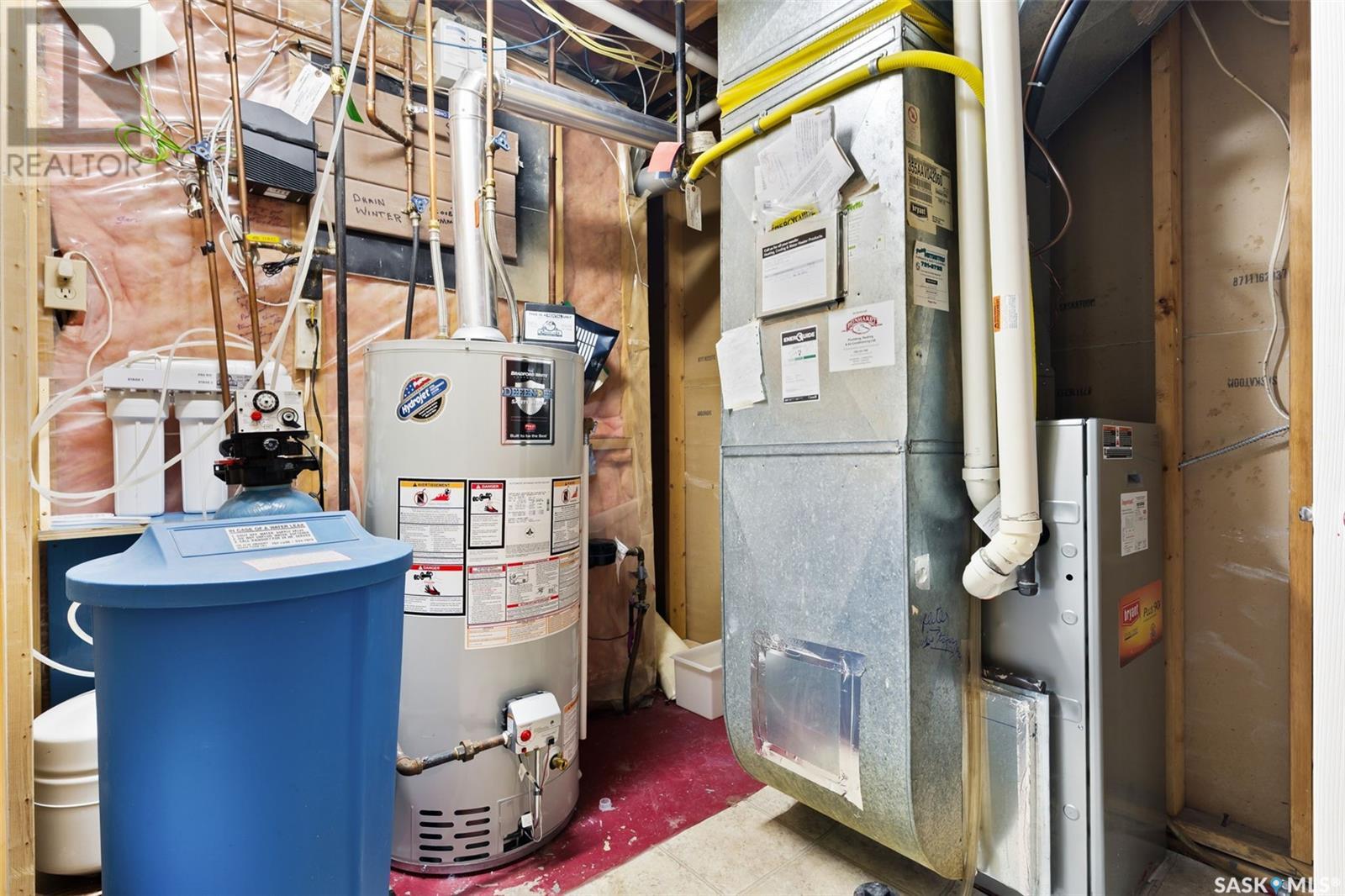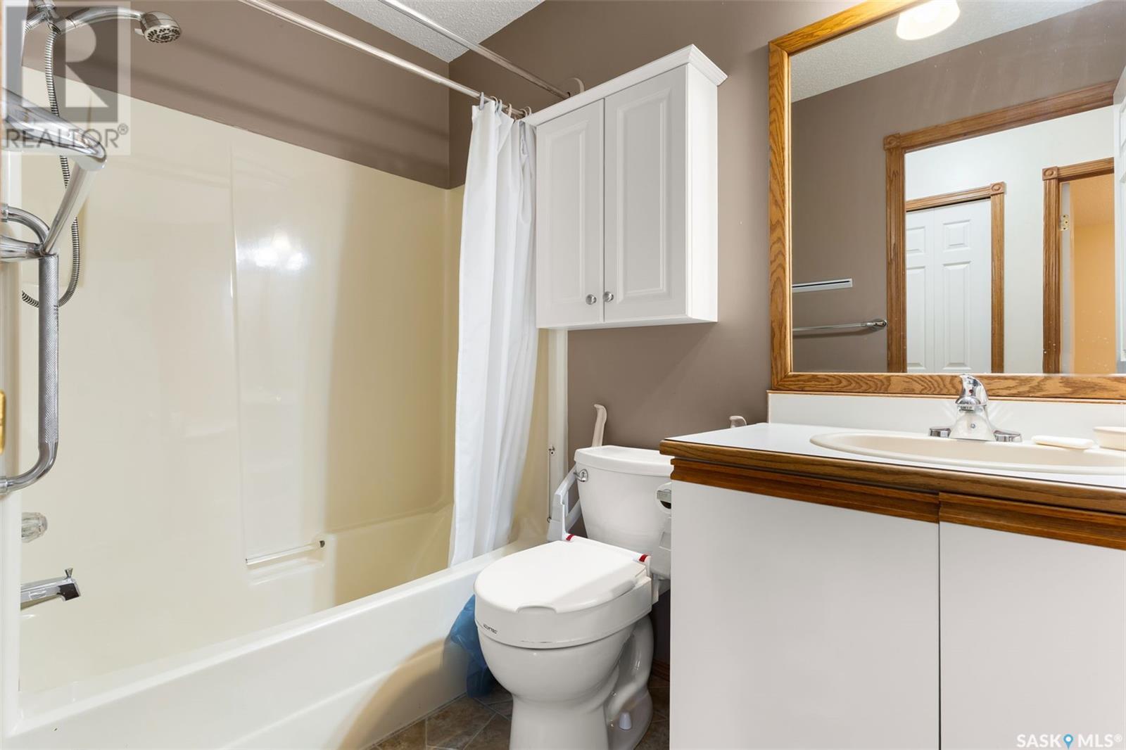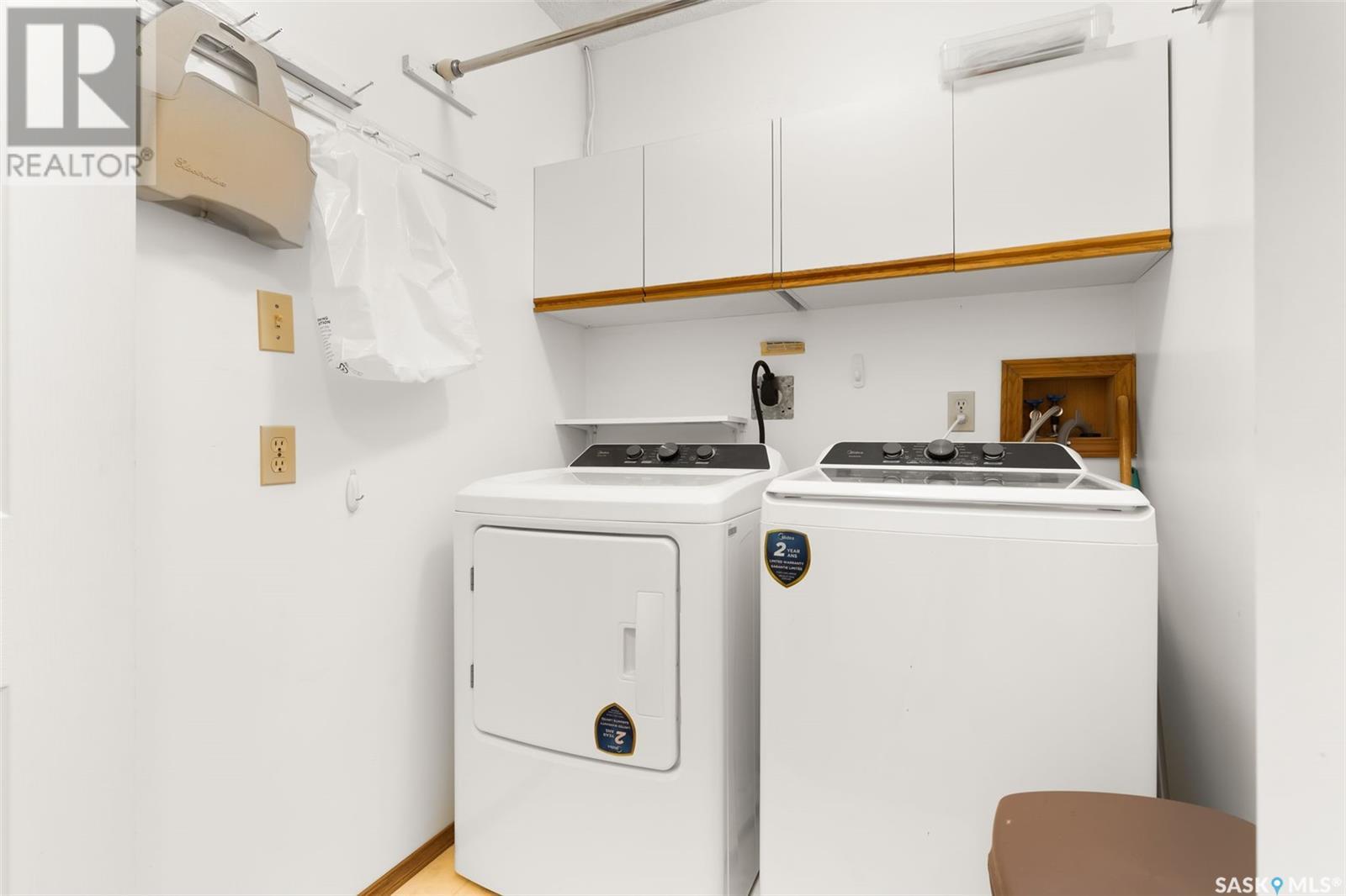 $439.64 MonthlyLOCATION, LOCATION, LOCATION! Surrounded by luscious greenspace and beautiful prairie views, this beautifully maintained bungalow-style condo, nestled in the heart of Albert Park. Main floor boasts of hardwood flooring throughout, vaulted ceilings, dining area and large bay window in living room allowing for plenty of natural sunlight. Spacious eat-in kitchen with lots of cabinetry and ample counter space with stainless steel appliances and patio doors leading to the back deck, perfect for morning coffee or family barbecues. Large primary bedroom with walk-in closet and ensuite with shower and beautiful corner tub. Main floor also has a good size second bedroom, full bathroom and conveniently located main floor laundry. Fully developed basement offers loads of additional living space, excellent for a home office, family room, or entertainment area, definitely no shortage of storage space in this house. Attached double car garage located directly off front entrance with visitor parking stalls located right beside the condo. Located in a very well-established neighborhood, perfect for those seeking a peaceful lifestyle with easy access to parks and near plenty of shopping and dining amenities. *basement bedroom windows do not meet current egress window requirements (id:43042)