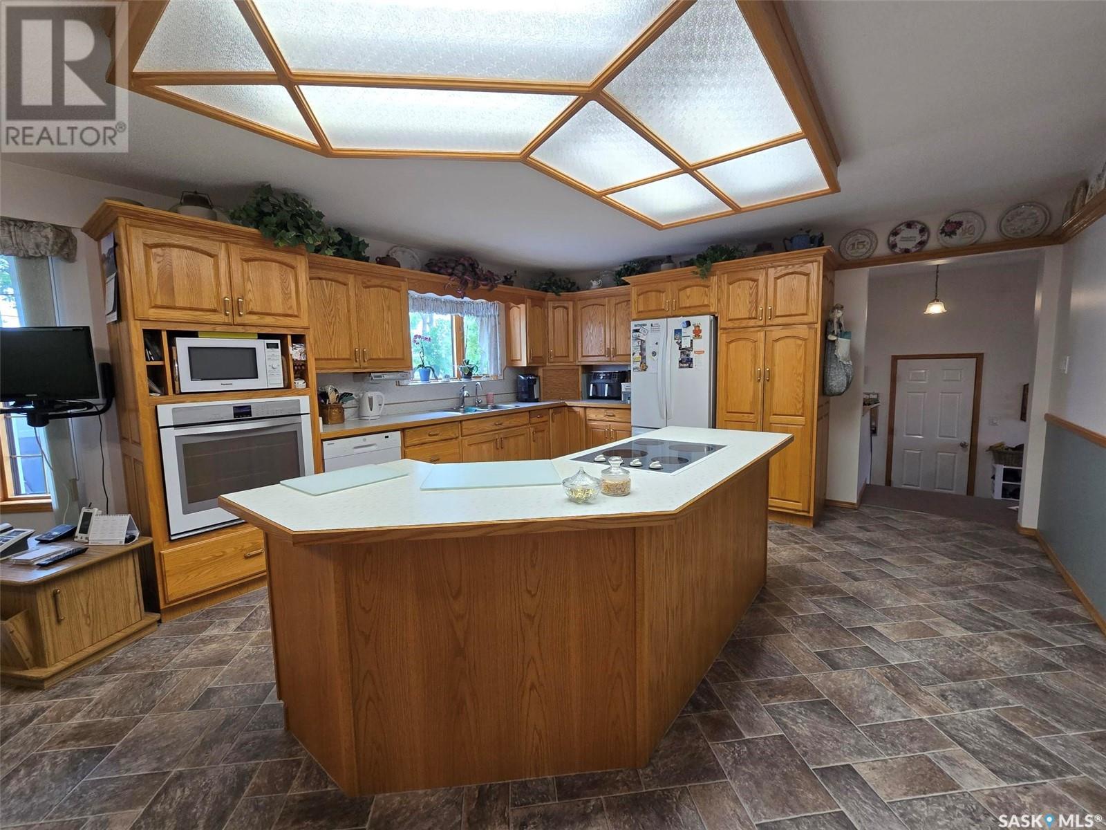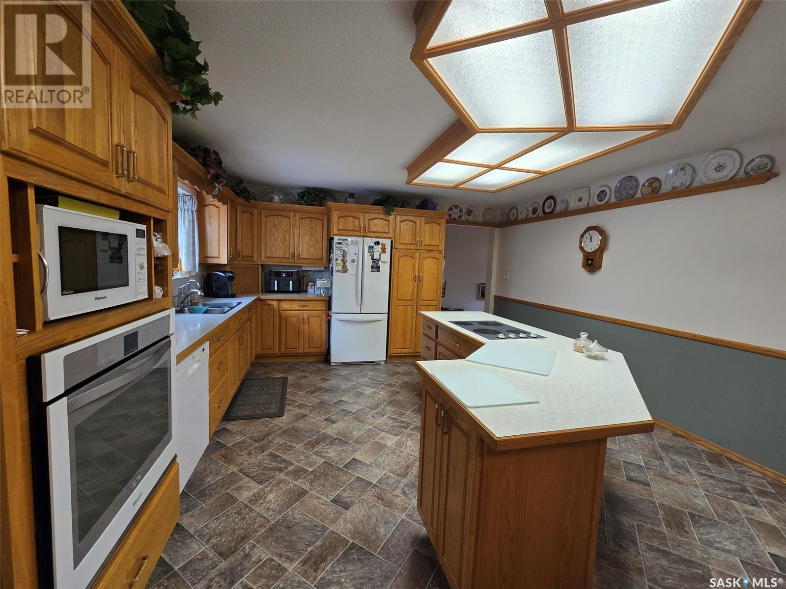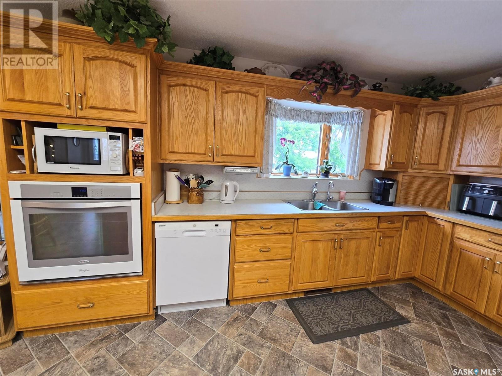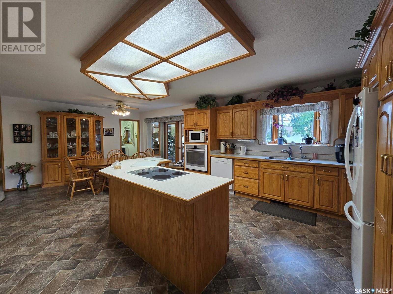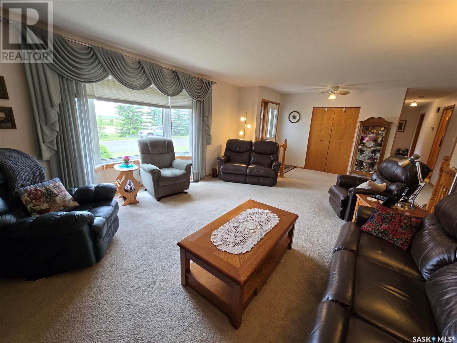 ONE OWNER HOME with 5 bedrooms + 3 baths and 1714 sq ft is awaiting a new family...800 Black Avenue has been pet and smoke free and provides all the features needed to live your best life in Grenfell. Built in 1994 with a double heated garage 26' x 28' on a 105' x 100' south facing lot , well manicured with of beautiful perennials, 2 sheds and back lane access. Welcome to the spacious main floor , from the minute you enter this BEAUTY , the grand foyer/breezeway meets you. Here there is an office at the end and access to the the heated garage. Step into the open kitchen and dining area with large island, many cabinets and counters for the cook. Oak table and 6 chairs and oak hutch will be included to match the cabinets. Love to read? Find an added sunroom off the dining room and small north deck both great places to capture some relaxation. Main floor laundry is convenient with laundry sink and wall cabinets. Storage is not a concern anywhere in this bungalow. Living room allows for the sunny south to filter through the new picture window entering into this cozy but roomy area. 3 large bedrooms down the extra wide hallways and a 4 piece bath with a linen closet. The Primary bedroom has a 3 piece ensuite . The color palette is neutral throughout this home and some new lino in the kitchen / dining area. Built in stove and dishwasher are a few years old. Finished basement will provide you another 1440 sq ft and a NG Stove in the rec area , 2 large bedrooms and a 3 piece bath , a huge storage room , cold room (Costco corner) . Extra notes: Underground sprinklers (5 zones),new garage doors, 16" centers for roof, 100 amp panel, NG HE furnace (2014). Water heater (2021), Shingles replaced 5- 10 years ago, central vac (house and garage). Take a tour through 800 Black Avenue soon, the pictures don't do this HOME justice. (id:43042)