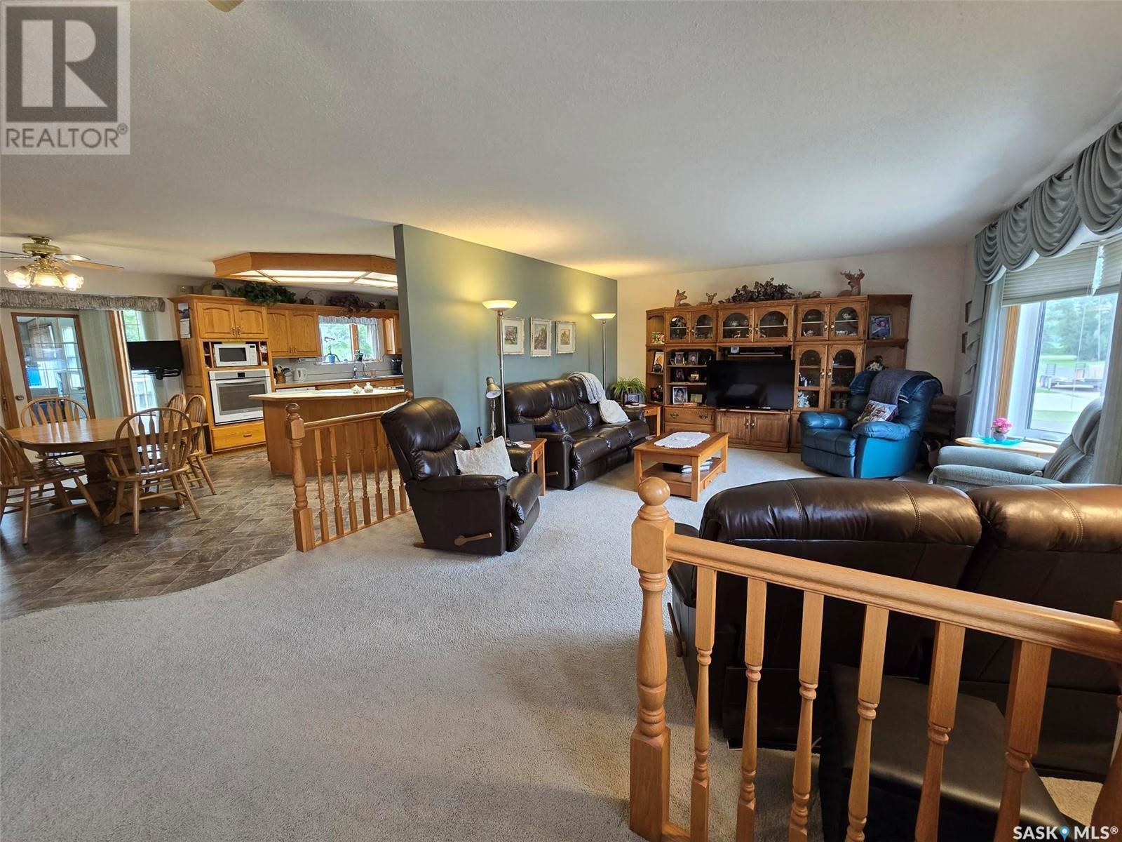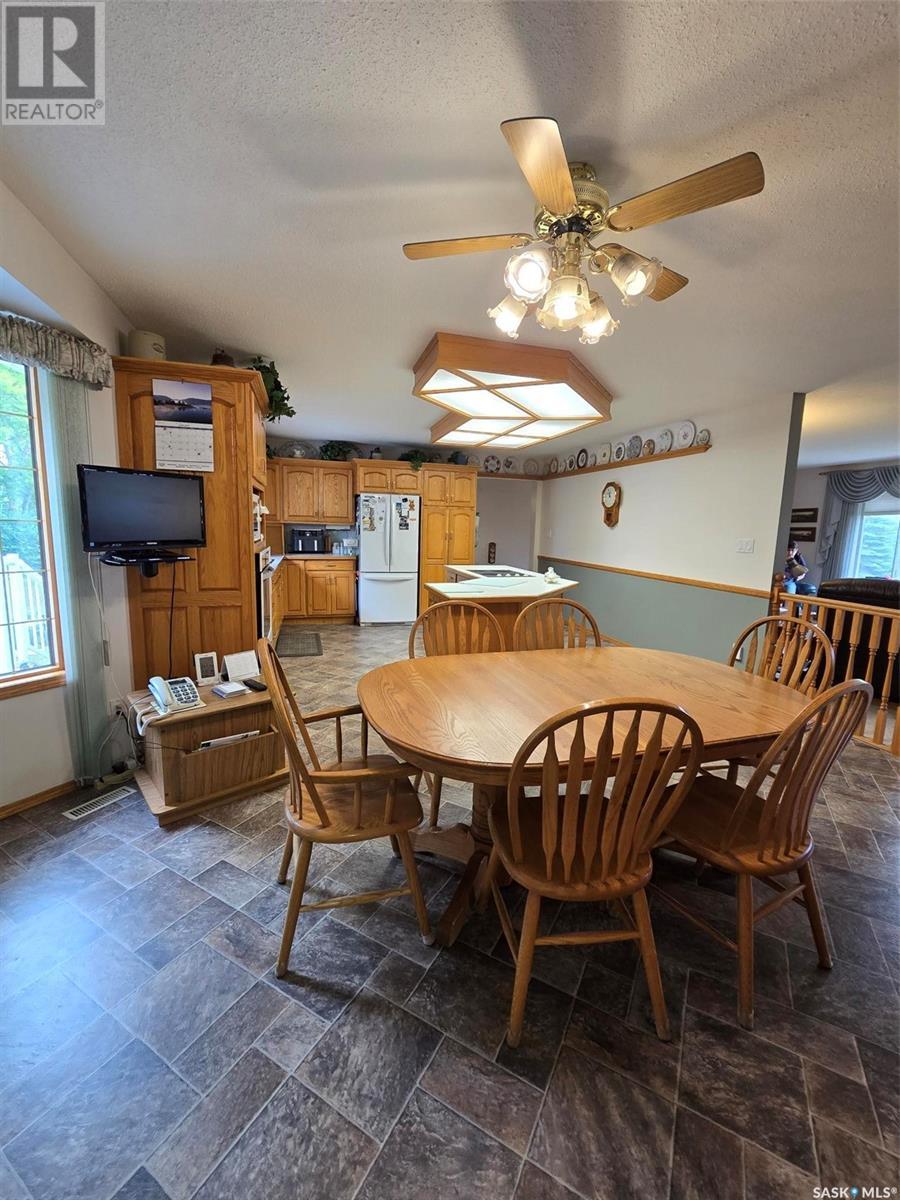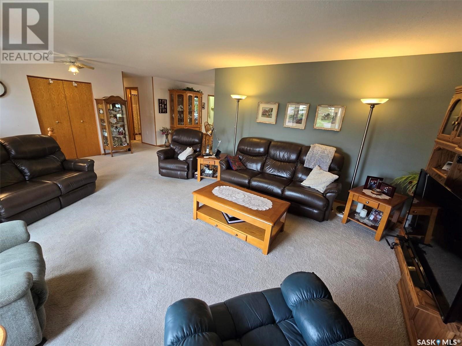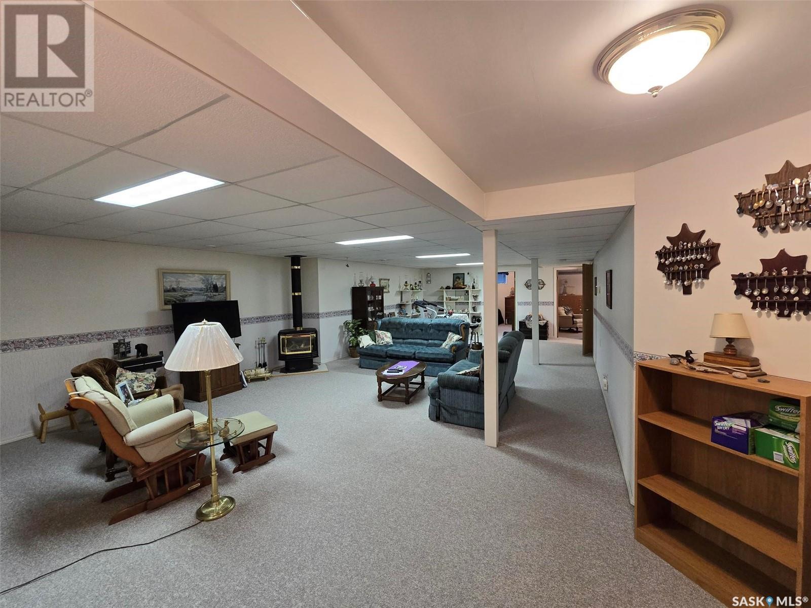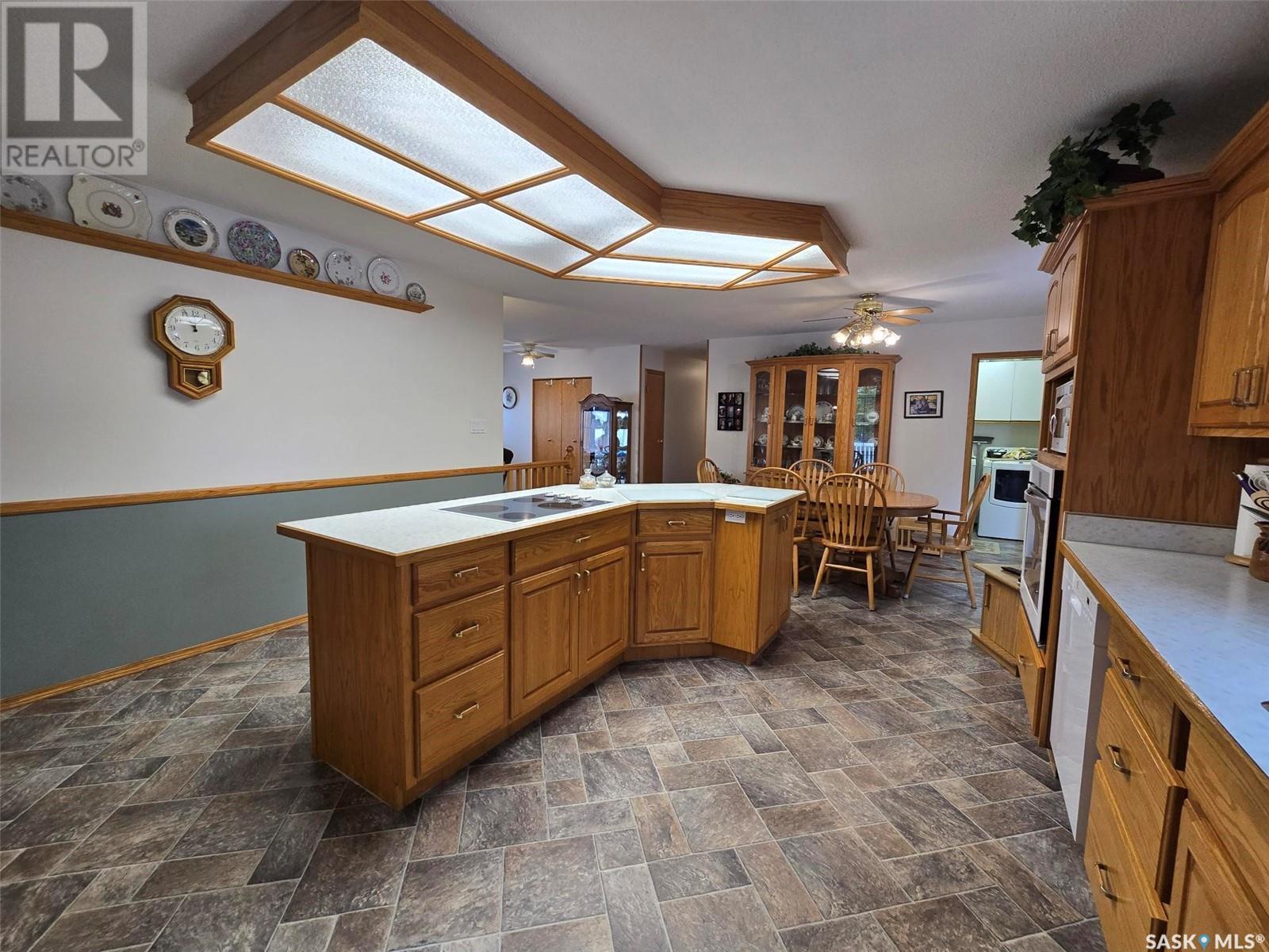 ONE OWNER HOME with 5 bedrooms + 3 baths and 1714 sq ft is awaiting a new family...800 Black Avenue has been pet and smoke free and provides all the features needed to live your best life in Grenfell. Built in 1994 with a double heated garage 26' x 28' on a 105' x 100' south facing lot , well manicured with of beautiful perennials, 2 sheds and back lane access. Welcome to the spacious main floor , from the minute you enter this BEAUTY , the grand foyer/breezeway meets you. Here there is an office at the end and access to the the heated garage. Step into the open kitchen and dining area with large island, many cabinets and counters for the cook. Oak table and 6 chairs and oak hutch will be included to match the cabinets. Love to read? Find an added sunroom off the dining room and small north deck both great places to capture some relaxation. Main floor laundry is convenient with laundry sink and wall cabinets. Storage is not a concern anywhere in this bungalow. Living room allows for the sunny south to filter through the new picture window entering into this cozy but roomy area. 3 large bedrooms down the extra wide hallways and a 4 piece bath with a linen closet. The Primary bedroom has a 3 piece ensuite . The color palette is neutral throughout this home and some new lino in the kitchen / dining area. Built in stove and dishwasher are a few years old. Finished basement will provide you another 1440 sq ft and a NG Stove in the rec area , 2 large bedrooms and a 3 piece bath , a huge storage room , cold room (Costco corner) . Extra notes: Underground sprinklers (5 zones),new garage doors, 16" centers for roof, 100 amp panel, NG HE furnace (2014). Water heater (2021), Shingles replaced 5- 10 years ago, central vac (house and garage). Take a tour through 800 Black Avenue soon, the pictures don't do this HOME justice. (id:43042)