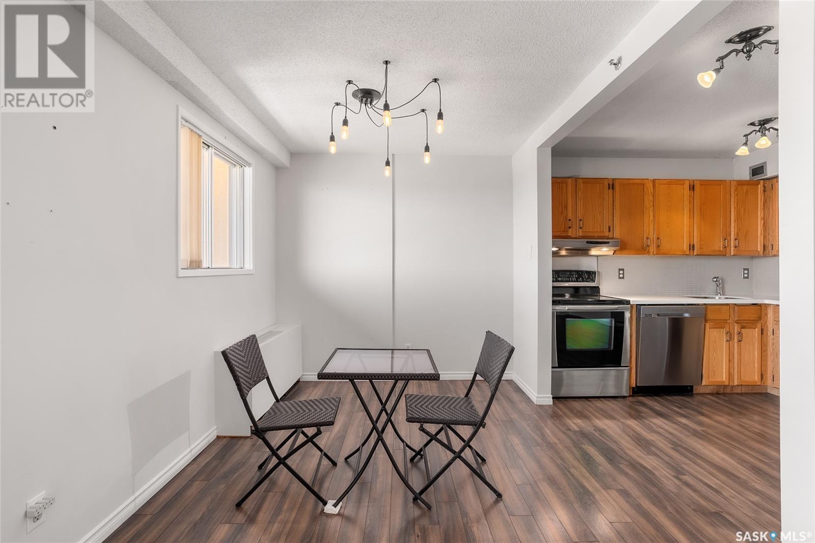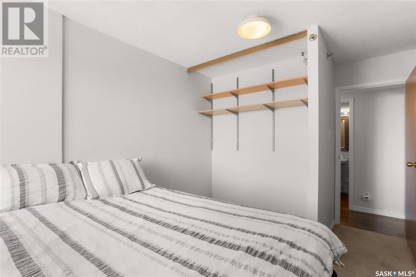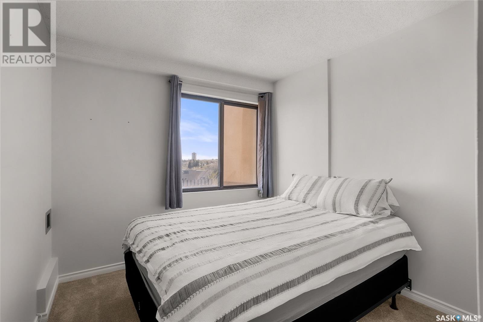 $614 MonthlyReady for its new owners, this wonderful downtown Saskatoon condo for sale has beautiful views towards the river, downtown and Kinsmen Park. Enjoy the views and sunlight from your oversized balcony while living the easy life of condo ownership. Located within short walking distance to downtown with its many pubs and restaurants plus an easy walk to City Hospital, U of S, Royal University and Children’s Hospital. Enjoy the many walking trails and all other amenities and services nearby. The unit has seen tasteful updates over the years including flooring, lighting, corian counters in the kitchen, stainless steel appliances and an updated bathroom. The oversized primary bedroom has a walk-in closet and the second bedroom is great for a roommate, guests and/or home office. In unit laundry plus additional storage are added bonuses. The building offers a secure but welcoming foyer, elevator, indoor pool, hot tub, sauna and amenities room. Comes with a covered parking stall. Call your Saskatoon and area real estate agent to view. (id:43042)