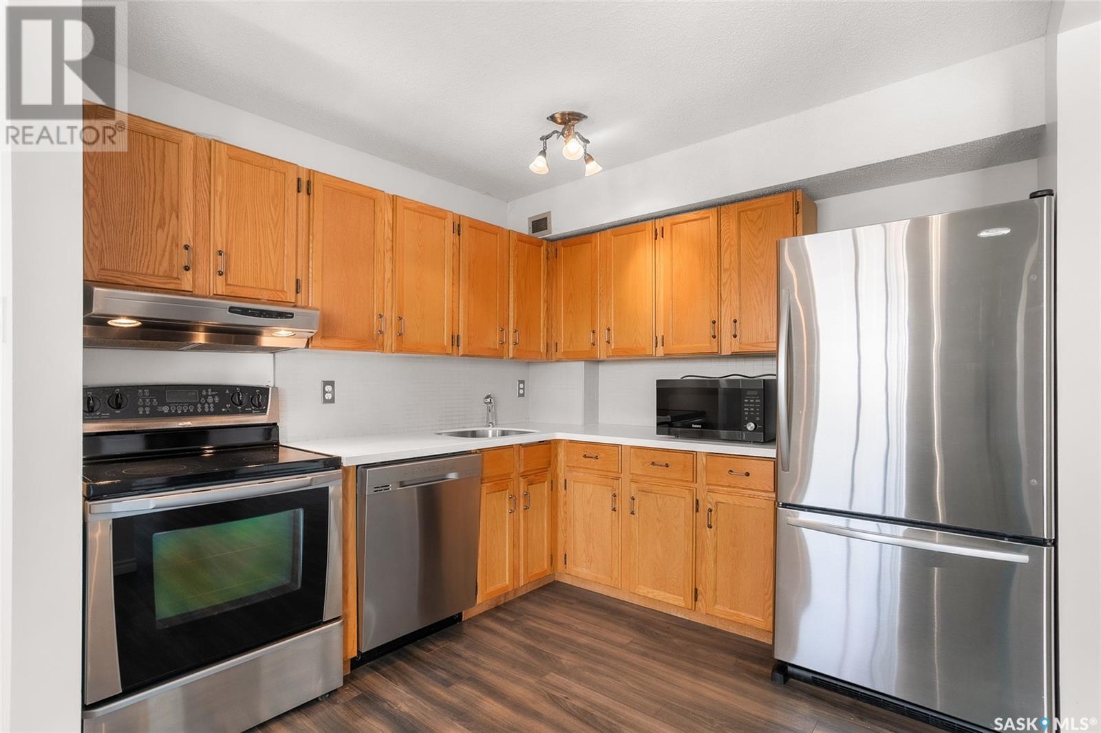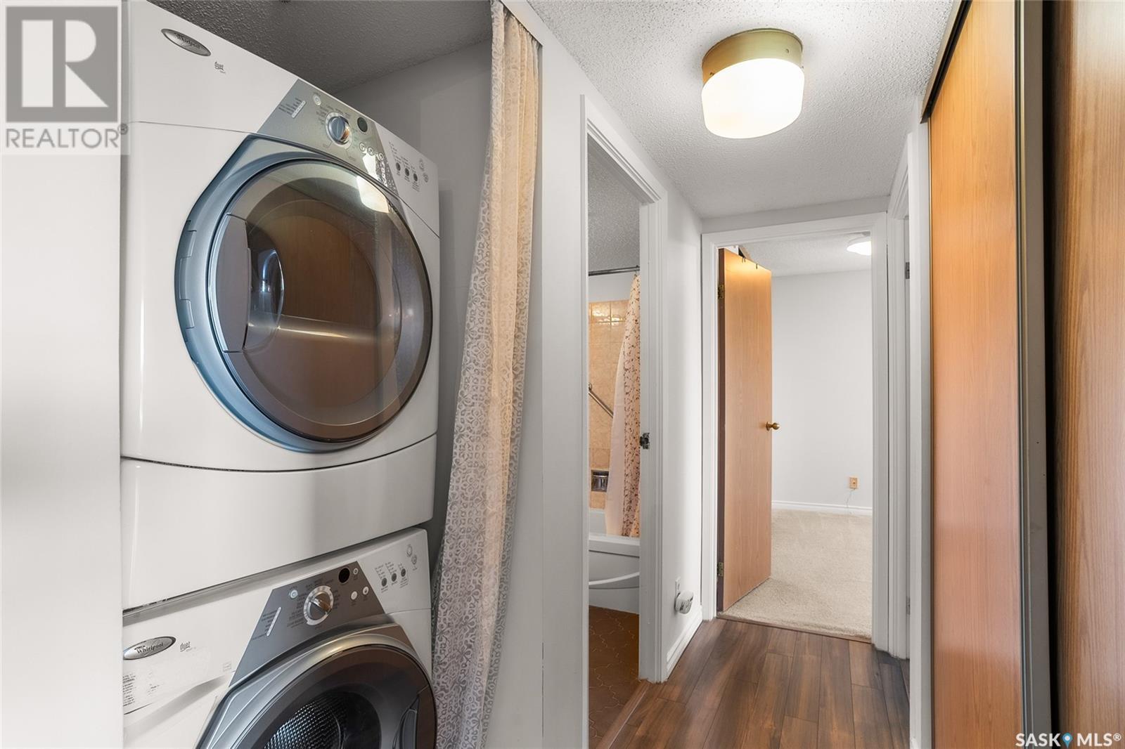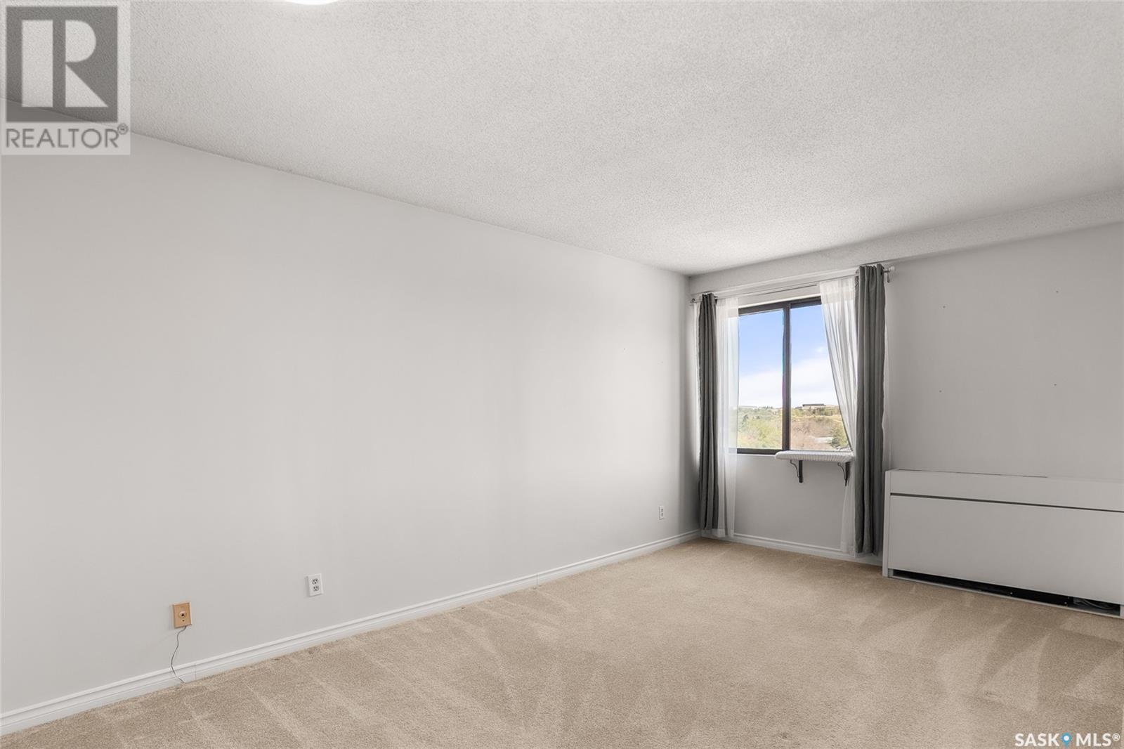 $614 MonthlyReady for its new owners, this wonderful downtown Saskatoon condo for sale has beautiful views towards the river, downtown and Kinsmen Park. Enjoy the views and sunlight from your oversized balcony while living the easy life of condo ownership. Located within short walking distance to downtown with its many pubs and restaurants plus an easy walk to City Hospital, U of S, Royal University and Children’s Hospital. Enjoy the many walking trails and all other amenities and services nearby. The unit has seen tasteful updates over the years including flooring, lighting, corian counters in the kitchen, stainless steel appliances and an updated bathroom. The oversized primary bedroom has a walk-in closet and the second bedroom is great for a roommate, guests and/or home office. In unit laundry plus additional storage are added bonuses. The building offers a secure but welcoming foyer, elevator, indoor pool, hot tub, sauna and amenities room. Comes with a covered parking stall. Call your Saskatoon and area real estate agent to view. (id:43042)