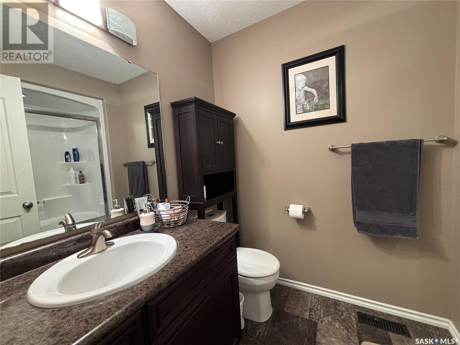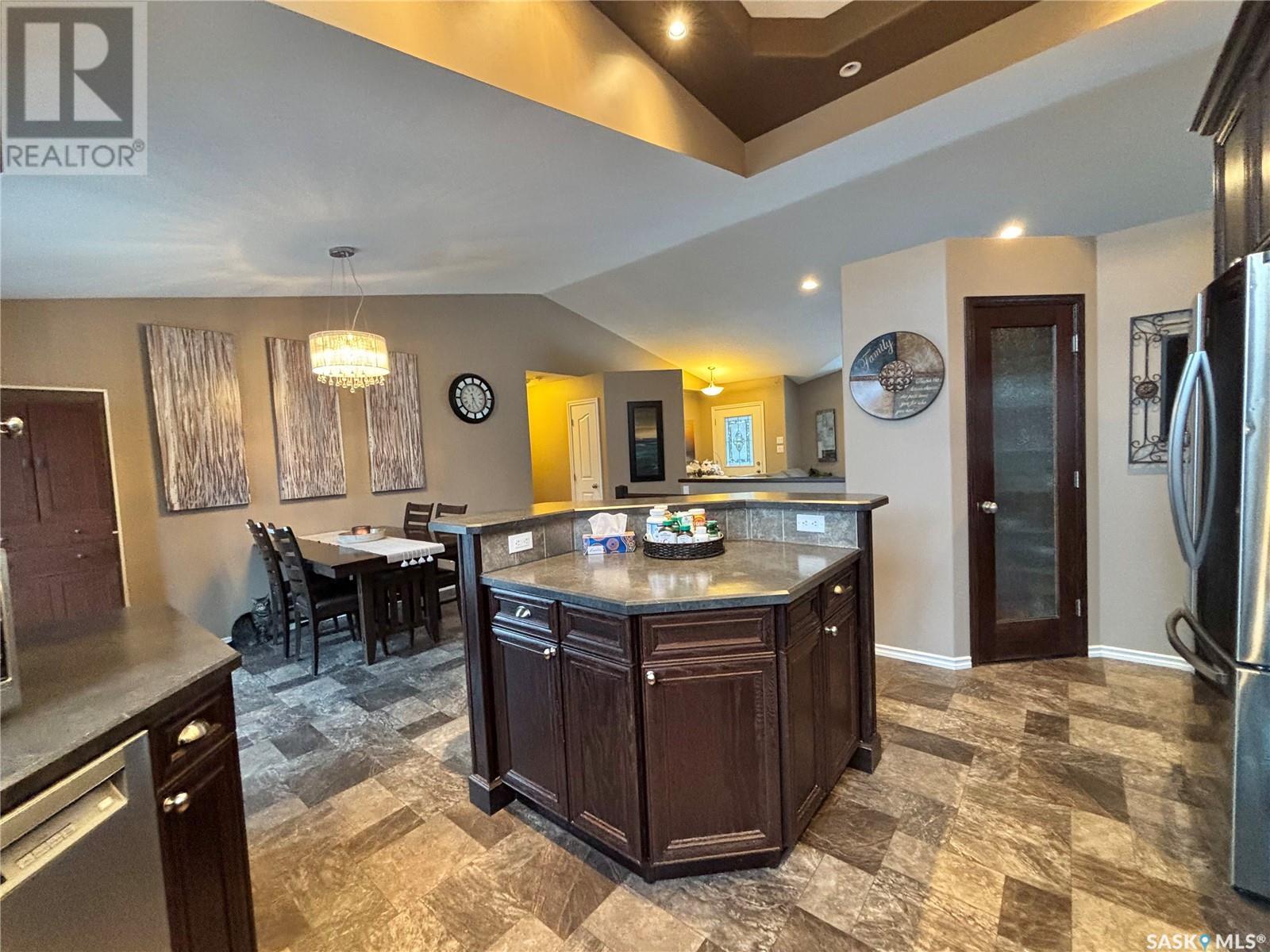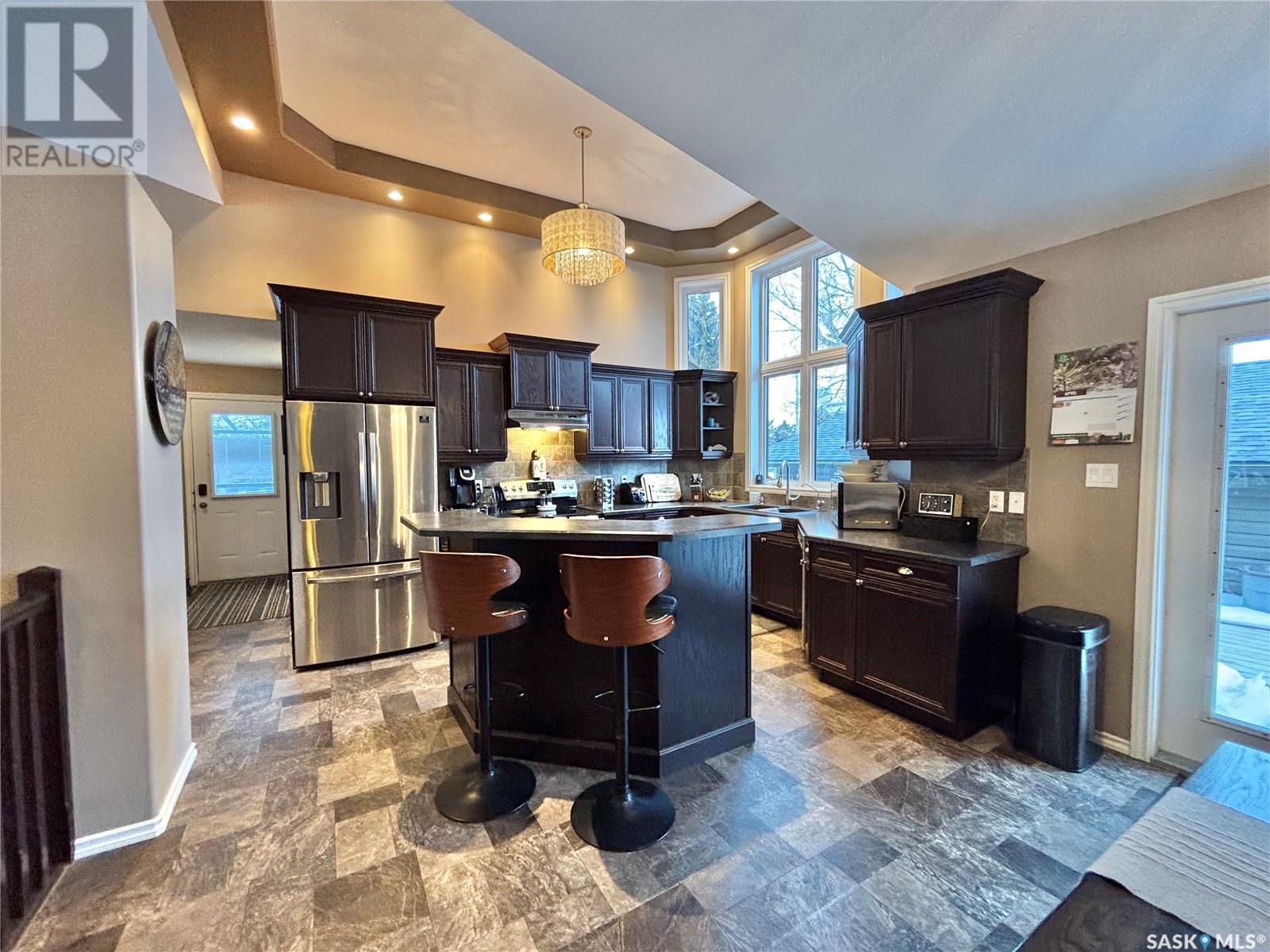 This beautiful newer build home is situated in a quiet Saskatchewan Town of Lemberg. With over 1600 sq ft and is located on a double lot (120' x 117') with green space all around, double detached garage (24'x x24'), 4 beds and 4 baths!!!!Loads of storage and space for toys. The Kitchen is beautifully designed with tall ceilings and lots of natural lighting through the large windows. Espresso Oak Cabinets , large island and walk in pantry with the stainless steel appliances is what kitchen dreams are made of. The open concept layout provides a great entertaining space into the vaulted living room. Down the hall to find 3 large bedroom and a full piece bathroom. Th primary bedroom has a 3 piece ensuite and walk in closet. Entering the home you will see it provides an office (currently used as Salon) , large mudroom area , 3 closets and a 2 piece bath /laundry fore your convenience .The basement has 9' ceilings and can be used for so many things in the open layout. One room can be used for the 4th bedroom, large utility room , games room and massive rec area. A home of this quality, age and design is rare in this price point. Dreaming of small town living? You don't want to miss out on this one of a kind property!!!! (id:43042)
