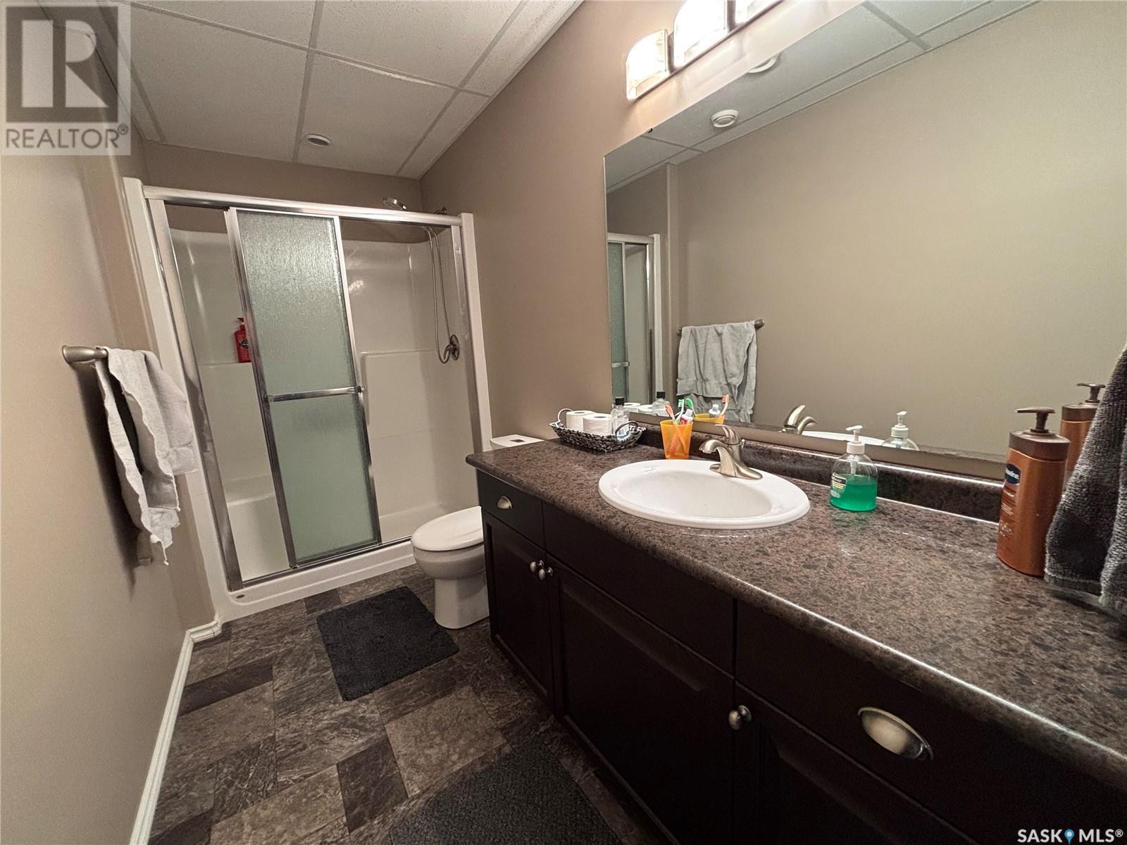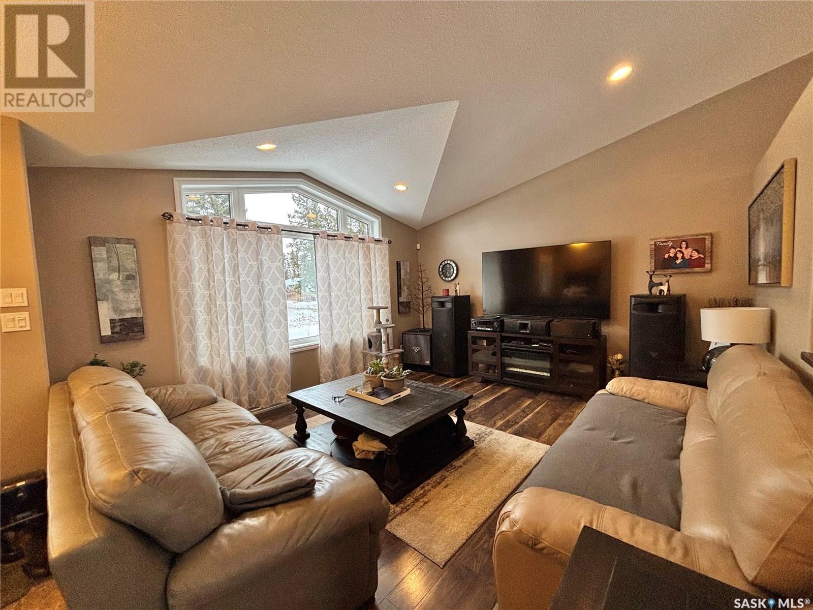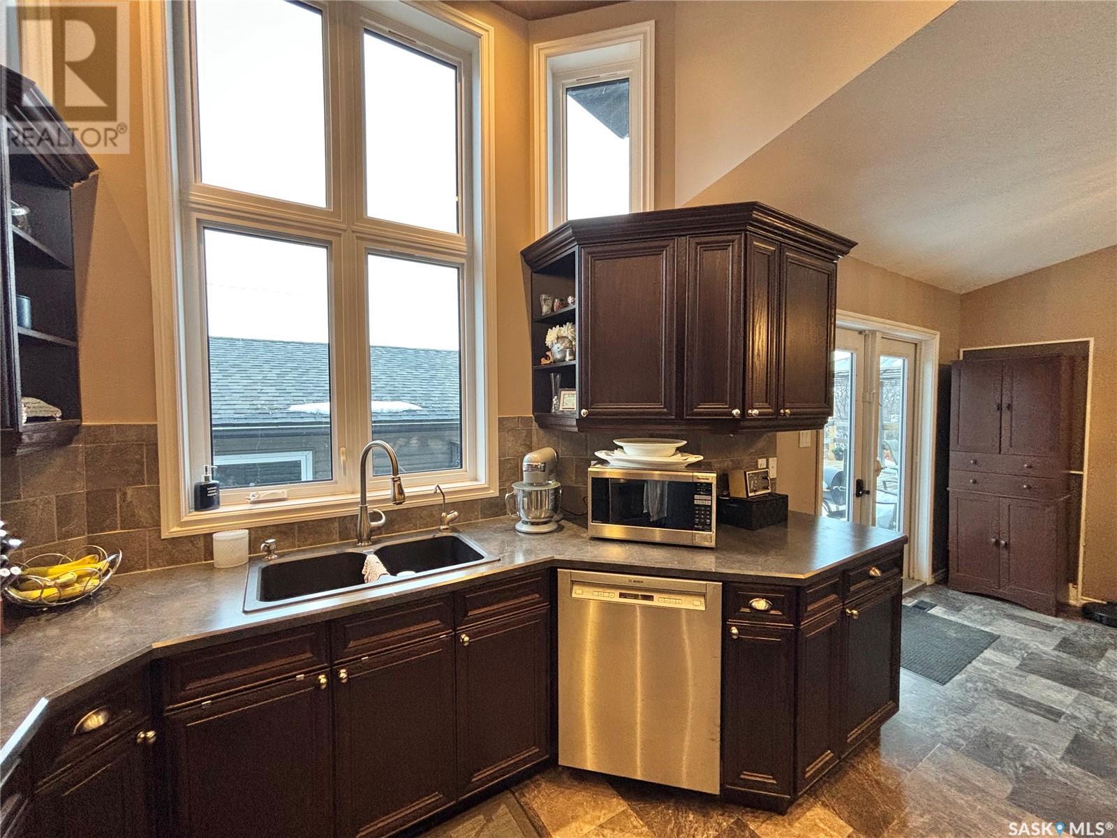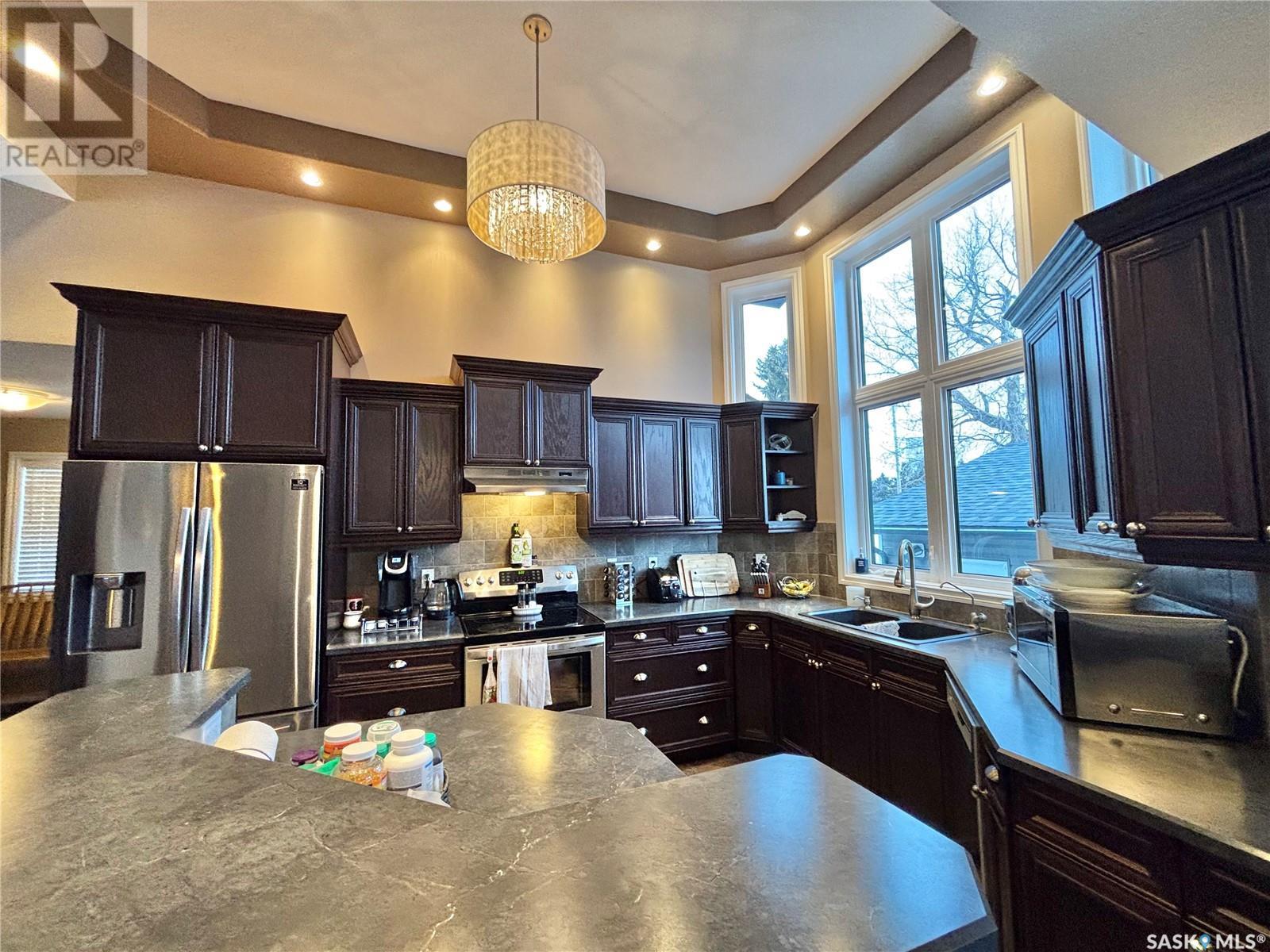 This beautiful newer build home is situated in a quiet Saskatchewan Town of Lemberg. With over 1600 sq ft and is located on a double lot (120' x 117') with green space all around, double detached garage (24'x x24'), 4 beds and 4 baths!!!!Loads of storage and space for toys. The Kitchen is beautifully designed with tall ceilings and lots of natural lighting through the large windows. Espresso Oak Cabinets , large island and walk in pantry with the stainless steel appliances is what kitchen dreams are made of. The open concept layout provides a great entertaining space into the vaulted living room. Down the hall to find 3 large bedroom and a full piece bathroom. Th primary bedroom has a 3 piece ensuite and walk in closet. Entering the home you will see it provides an office (currently used as Salon) , large mudroom area , 3 closets and a 2 piece bath /laundry fore your convenience .The basement has 9' ceilings and can be used for so many things in the open layout. One room can be used for the 4th bedroom, large utility room , games room and massive rec area. A home of this quality, age and design is rare in this price point. Dreaming of small town living? You don't want to miss out on this one of a kind property!!!! (id:43042)