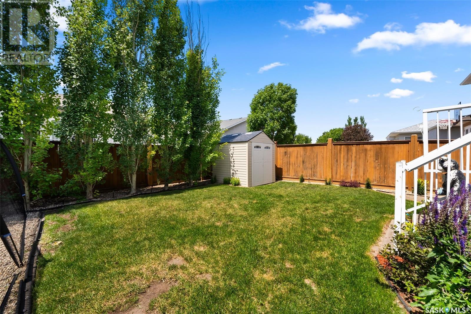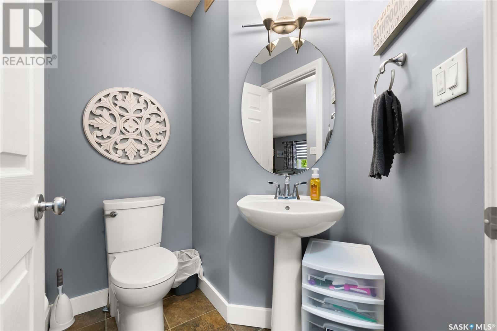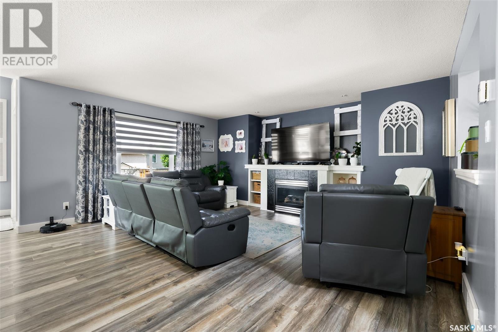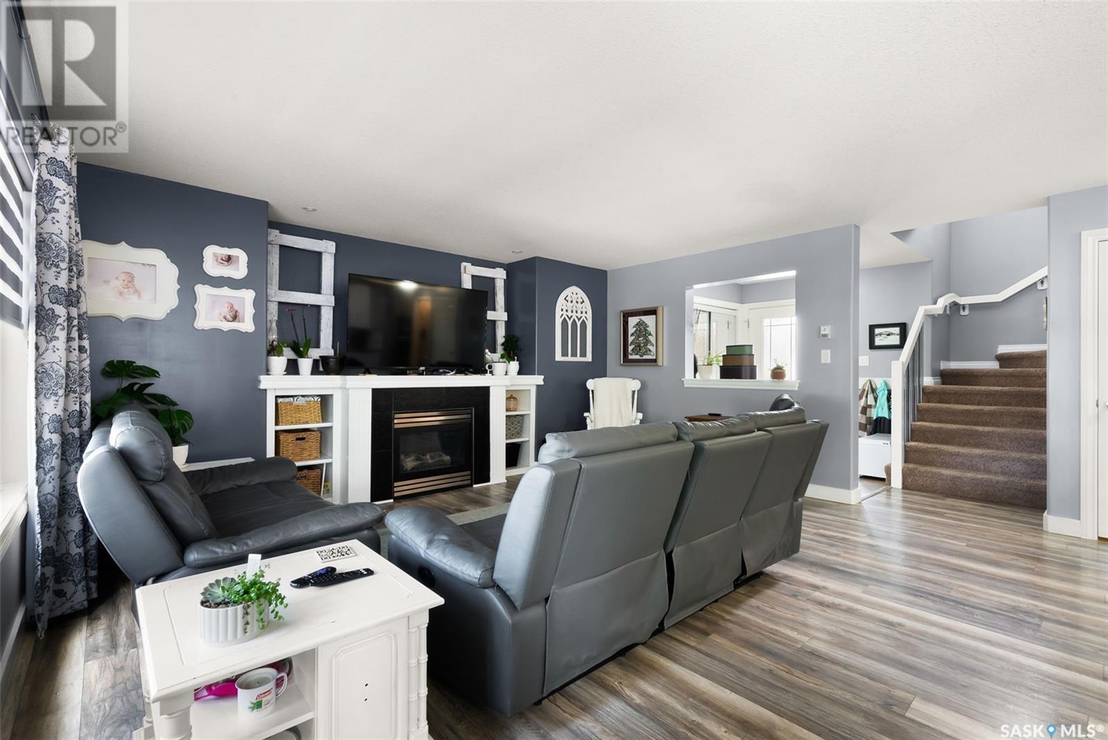 Welcome to your dream home in the desirable Fairways West community, where convenience meets comfort! This stunning property is ideally situated near picturesque parks, walking paths, and all essential amenities. Step inside to discover an inviting open-concept living, dining, and kitchen area, highlighted by a cozy fireplace that anchors the living room, creating a warm and welcoming atmosphere. The newly refreshed kitchen offers a delightful view of the backyard, making it perfect for reconnecting with friends and family. A conveniently tucked away half bath and main floor laundry add to the home's functionality. Venture upstairs to find three generously sized bedrooms, including a private ensuite and walk-in closet for the primary suite, alongside a full bath designed to make mornings a breeze with kids. The fully developed basement expands your living space with two additional bedrooms and a three-piece bathroom, making it an ideal retreat for teens or guests. The rec room would be the perfect spot to catch a Saskatchewan Roughrider game or binge watch the latest season of Love Island. Outside, enjoy a beautifully landscaped yard featuring a large deck, perfect for summer gatherings, and ample room for a batting cage for sports enthusiasts. The garage is a true standout, fully finished and heated, complete with epoxy flooring and built-in shelving for all your storage needs. This home has been loved and cared for by the current owner who is looking forward to passing it along to someone new. Don't miss out on this exceptional property that combines modern living with a serene neighborhood setting! (id:43042)