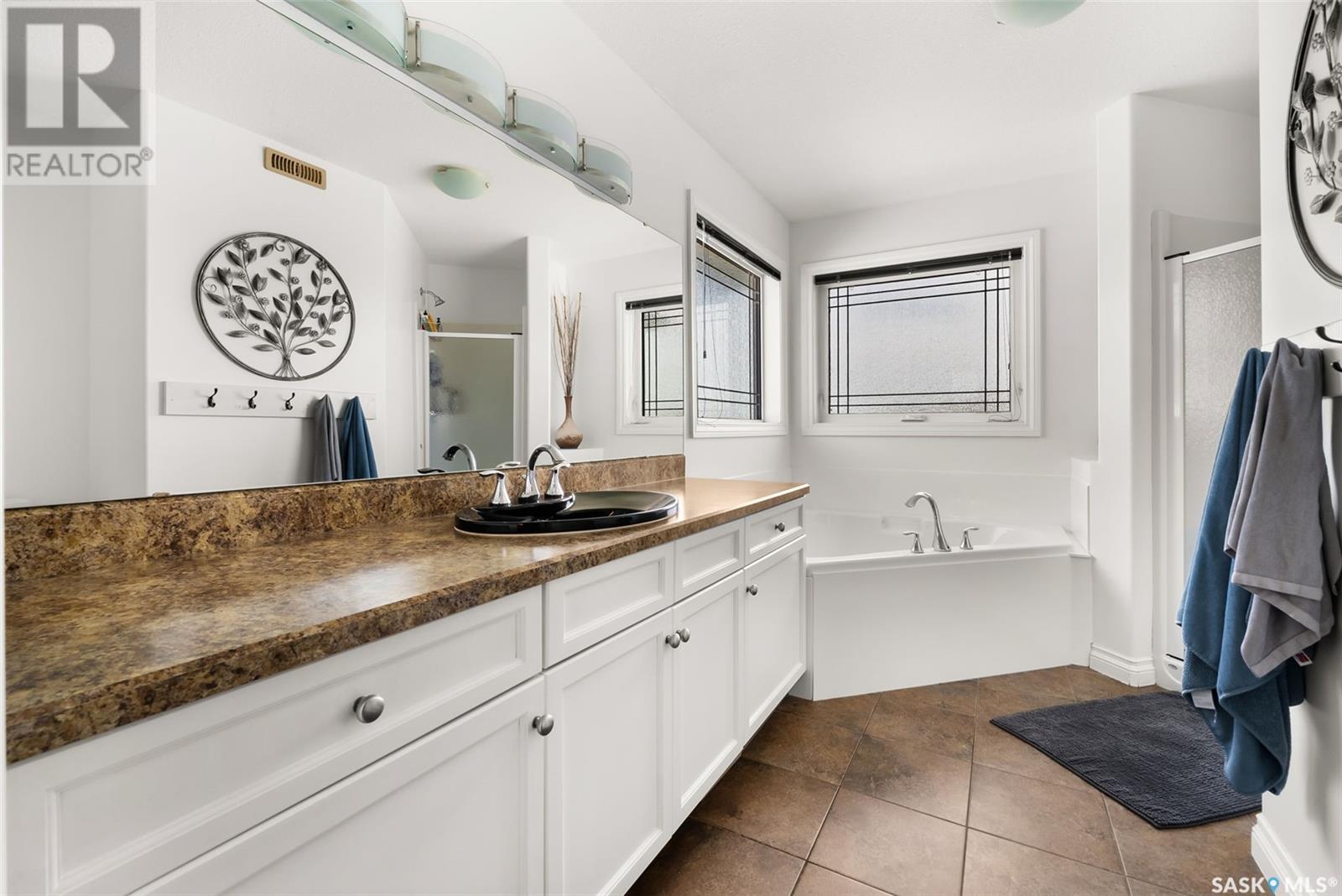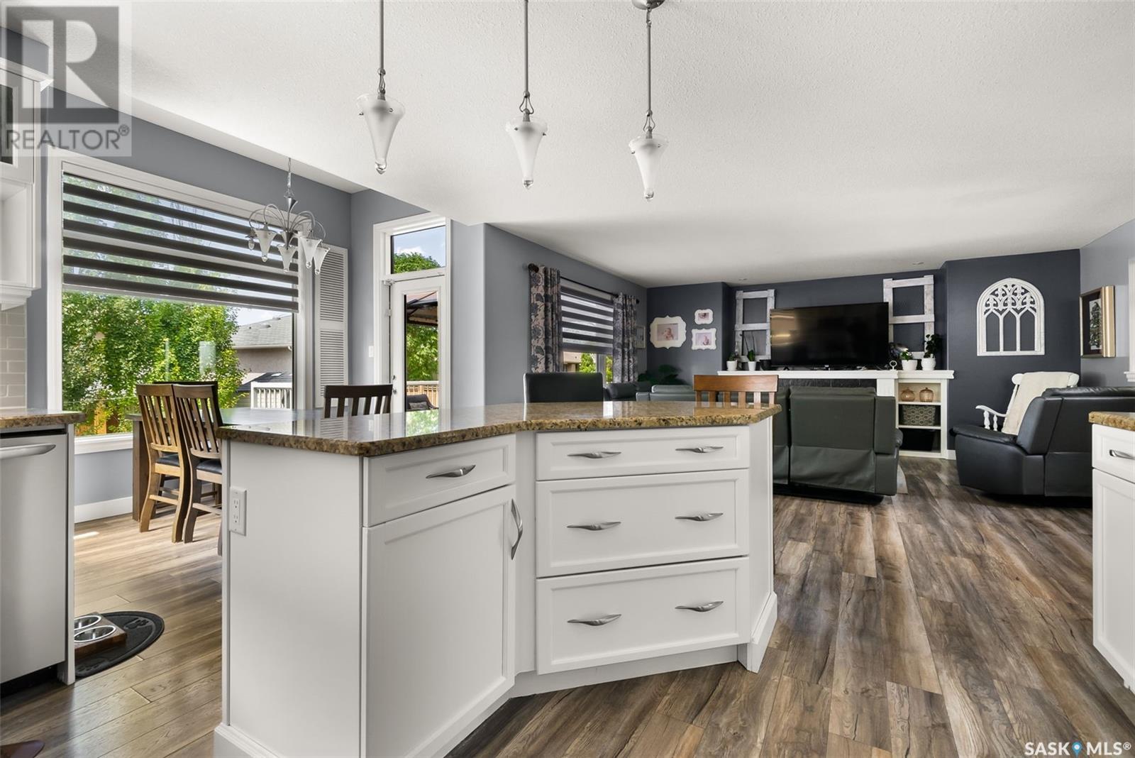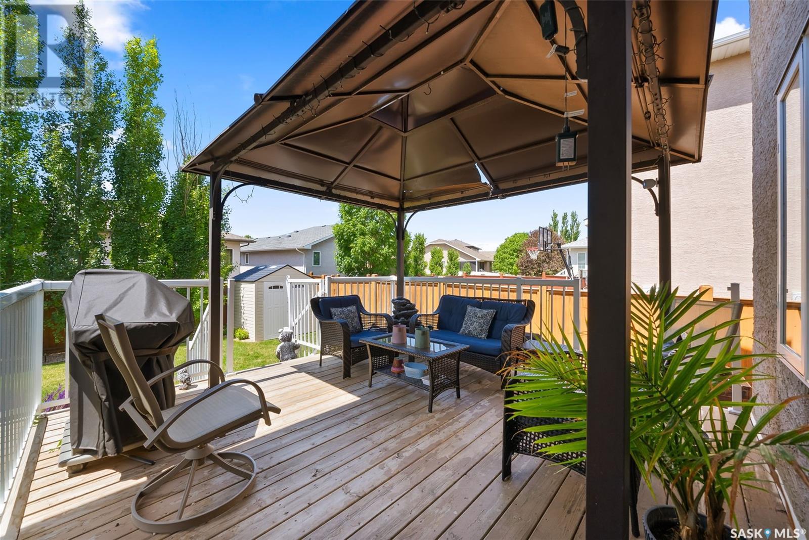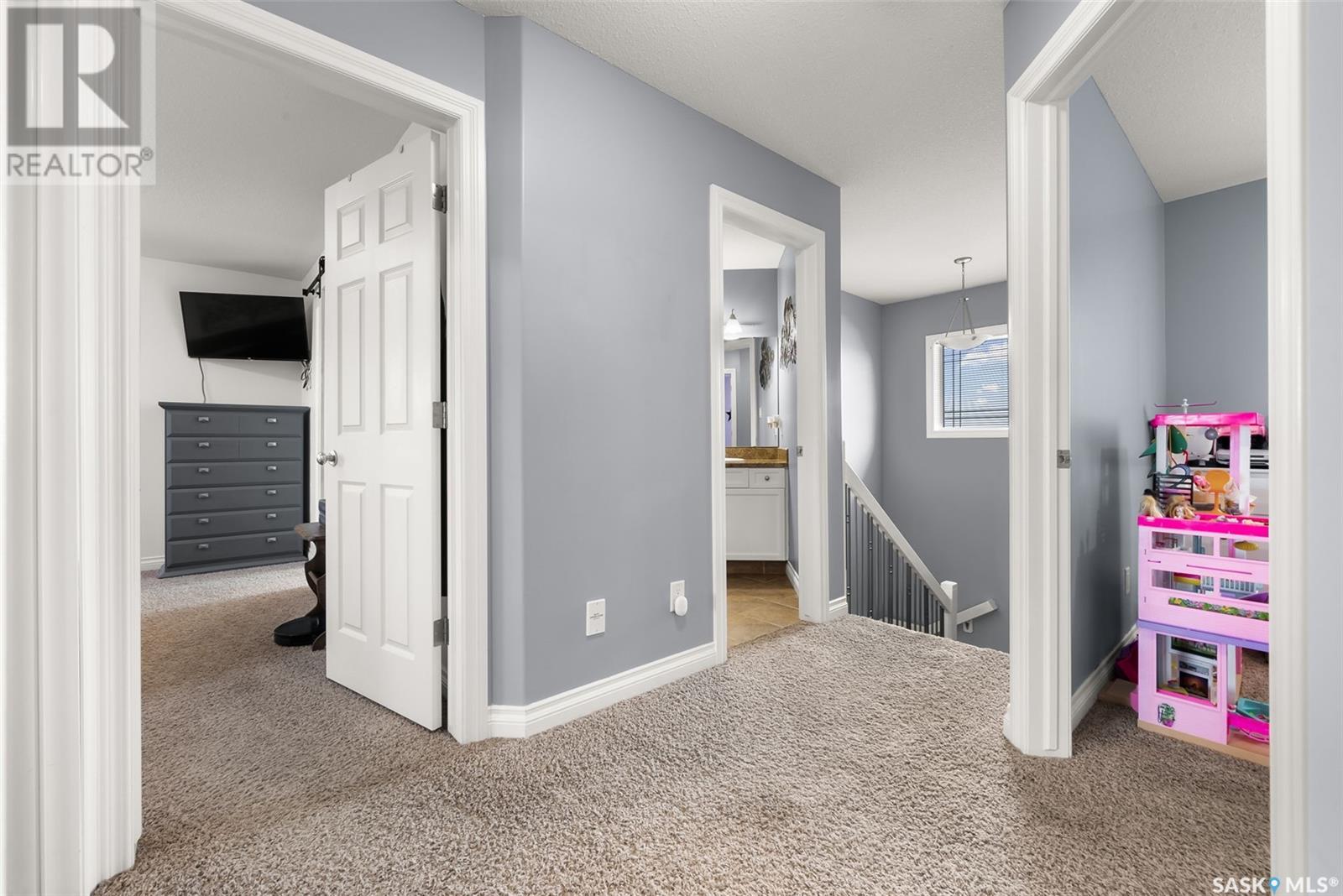 Welcome to your dream home in the desirable Fairways West community, where convenience meets comfort! This stunning property is ideally situated near picturesque parks, walking paths, and all essential amenities. Step inside to discover an inviting open-concept living, dining, and kitchen area, highlighted by a cozy fireplace that anchors the living room, creating a warm and welcoming atmosphere. The newly refreshed kitchen offers a delightful view of the backyard, making it perfect for reconnecting with friends and family. A conveniently tucked away half bath and main floor laundry add to the home's functionality. Venture upstairs to find three generously sized bedrooms, including a private ensuite and walk-in closet for the primary suite, alongside a full bath designed to make mornings a breeze with kids. The fully developed basement expands your living space with two additional bedrooms and a three-piece bathroom, making it an ideal retreat for teens or guests. The rec room would be the perfect spot to catch a Saskatchewan Roughrider game or binge watch the latest season of Love Island. Outside, enjoy a beautifully landscaped yard featuring a large deck, perfect for summer gatherings, and ample room for a batting cage for sports enthusiasts. The garage is a true standout, fully finished and heated, complete with epoxy flooring and built-in shelving for all your storage needs. This home has been loved and cared for by the current owner who is looking forward to passing it along to someone new. Don't miss out on this exceptional property that combines modern living with a serene neighborhood setting! (id:43042)