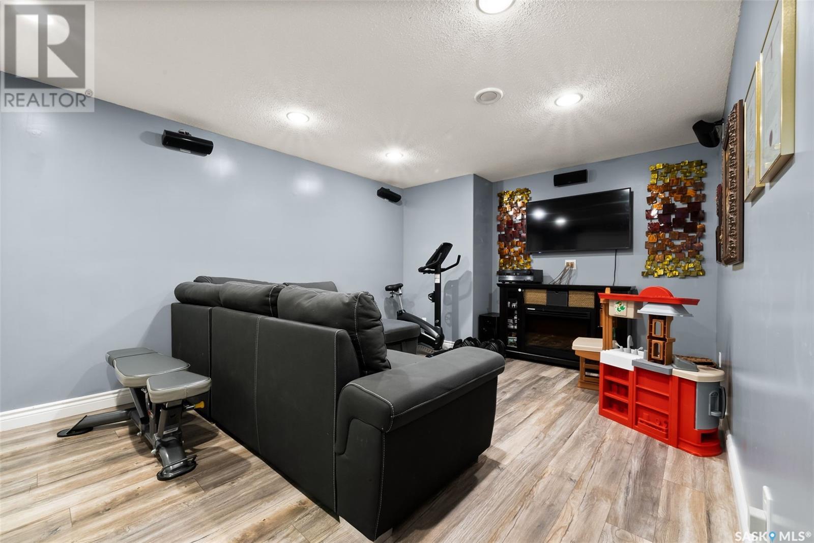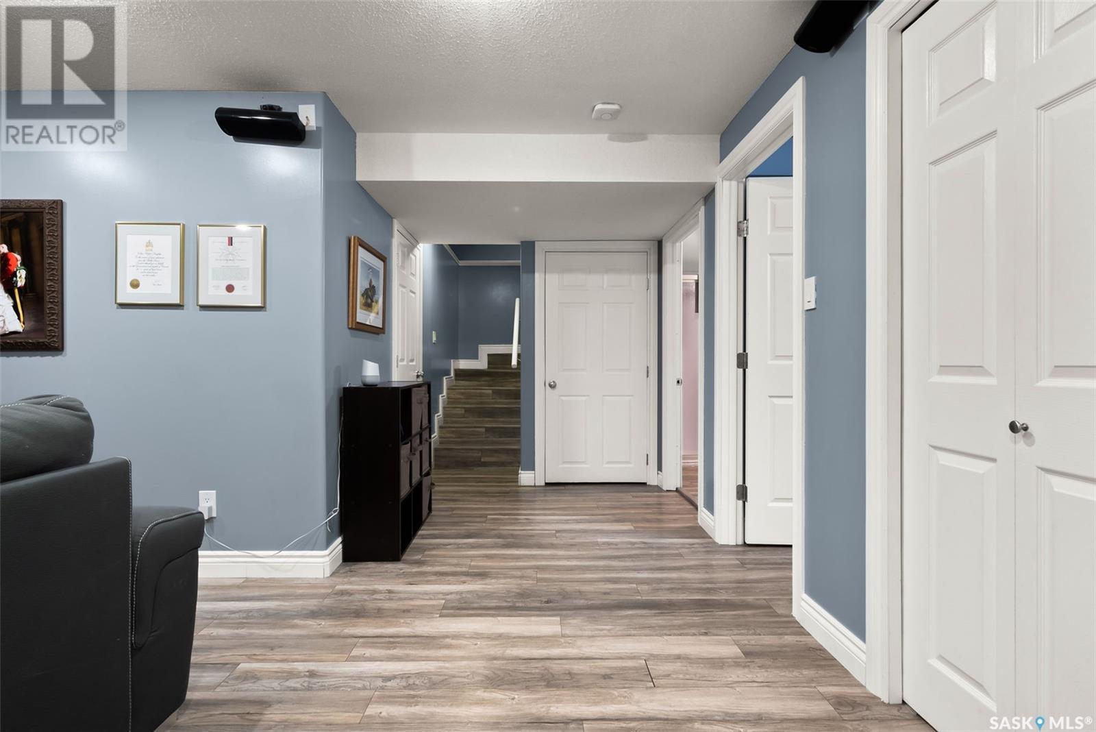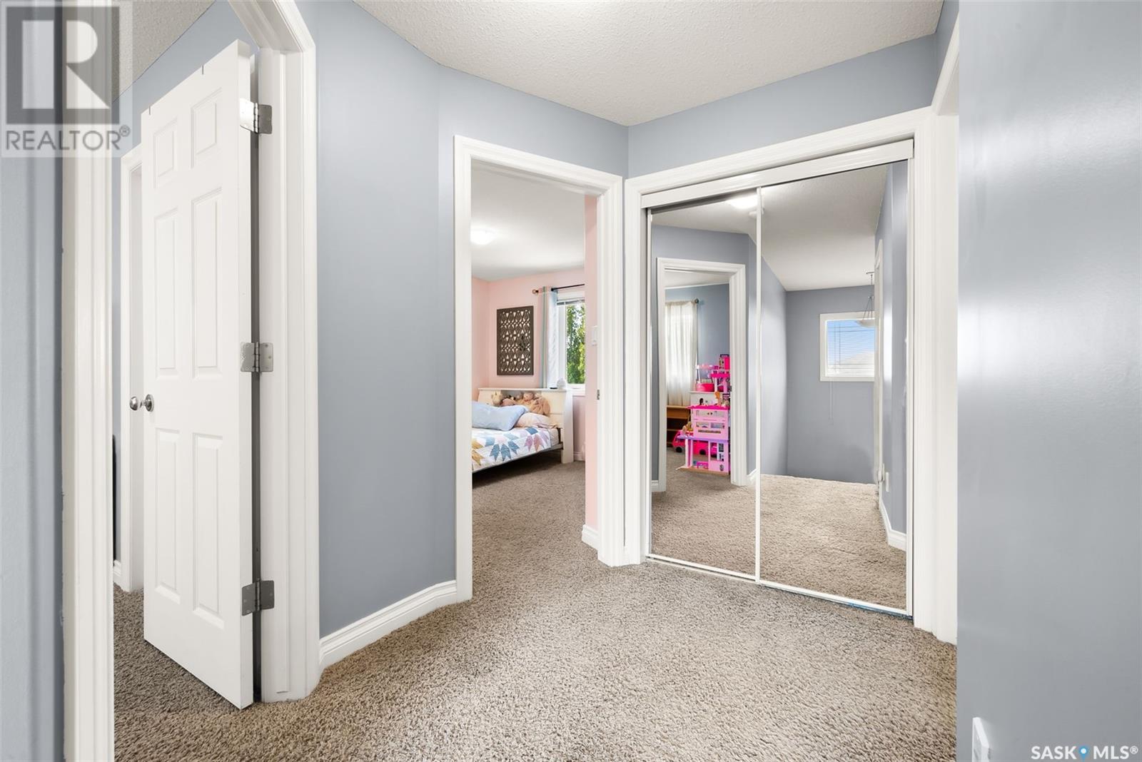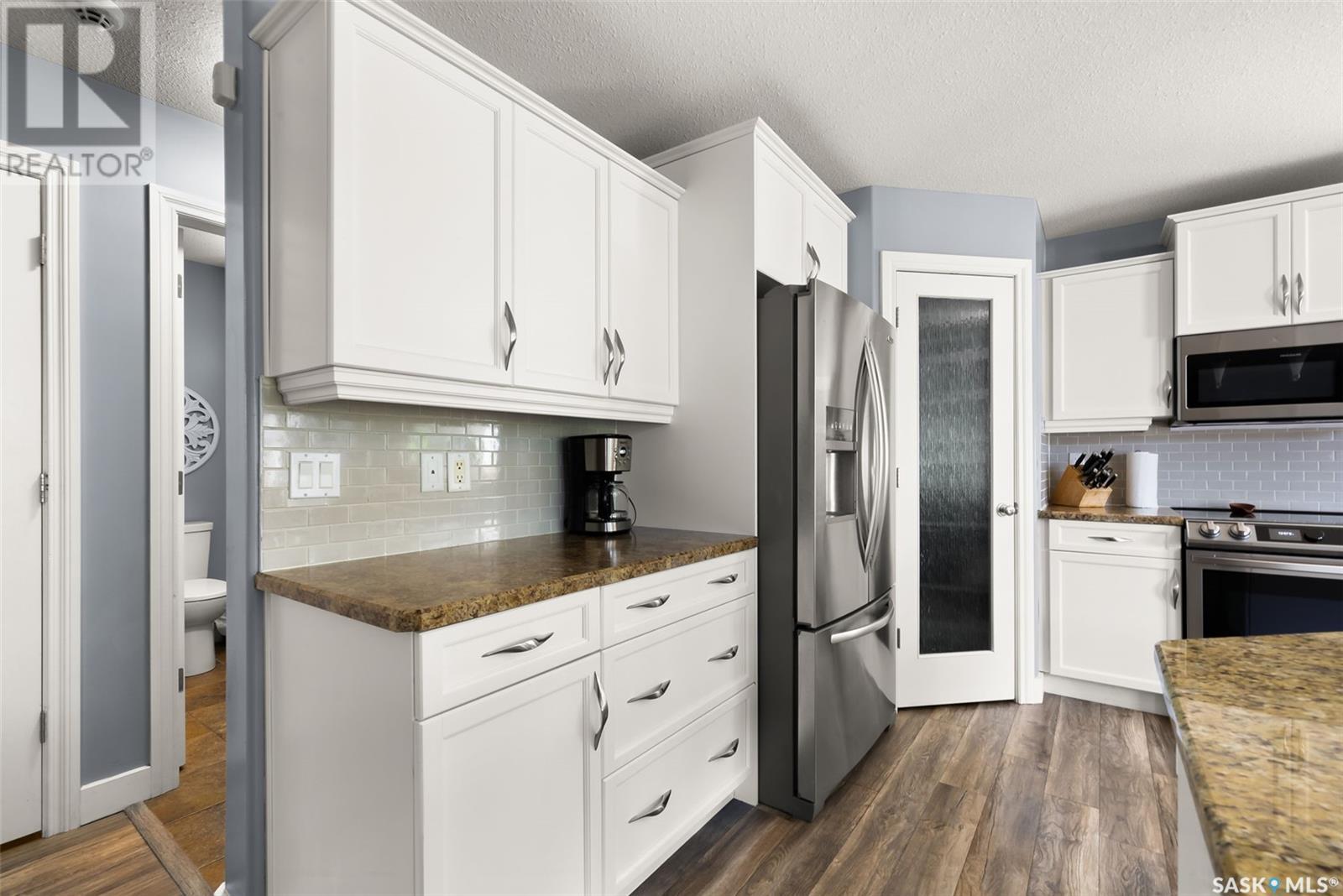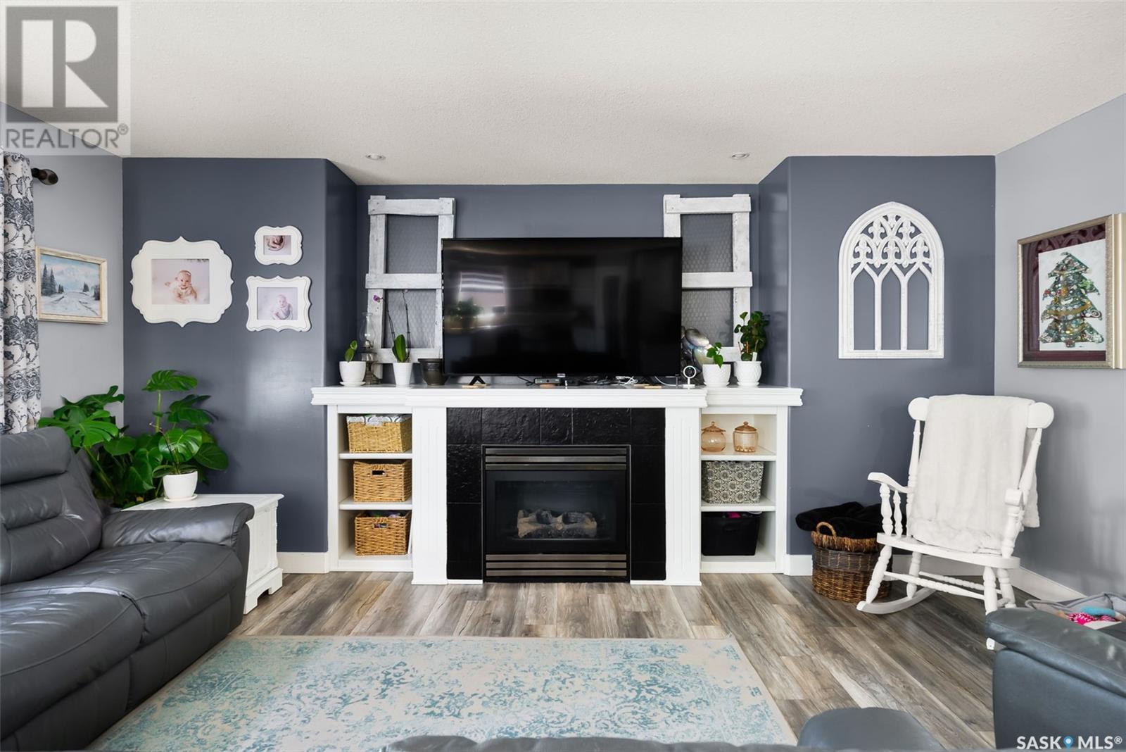 Welcome to your dream home in the desirable Fairways West community, where convenience meets comfort! This stunning property is ideally situated near picturesque parks, walking paths, and all essential amenities. Step inside to discover an inviting open-concept living, dining, and kitchen area, highlighted by a cozy fireplace that anchors the living room, creating a warm and welcoming atmosphere. The newly refreshed kitchen offers a delightful view of the backyard, making it perfect for reconnecting with friends and family. A conveniently tucked away half bath and main floor laundry add to the home's functionality. Venture upstairs to find three generously sized bedrooms, including a private ensuite and walk-in closet for the primary suite, alongside a full bath designed to make mornings a breeze with kids. The fully developed basement expands your living space with two additional bedrooms and a three-piece bathroom, making it an ideal retreat for teens or guests. The rec room would be the perfect spot to catch a Saskatchewan Roughrider game or binge watch the latest season of Love Island. Outside, enjoy a beautifully landscaped yard featuring a large deck, perfect for summer gatherings, and ample room for a batting cage for sports enthusiasts. The garage is a true standout, fully finished and heated, complete with epoxy flooring and built-in shelving for all your storage needs. This home has been loved and cared for by the current owner who is looking forward to passing it along to someone new. Don't miss out on this exceptional property that combines modern living with a serene neighborhood setting! (id:43042)