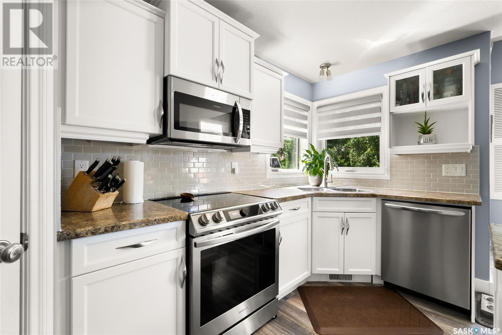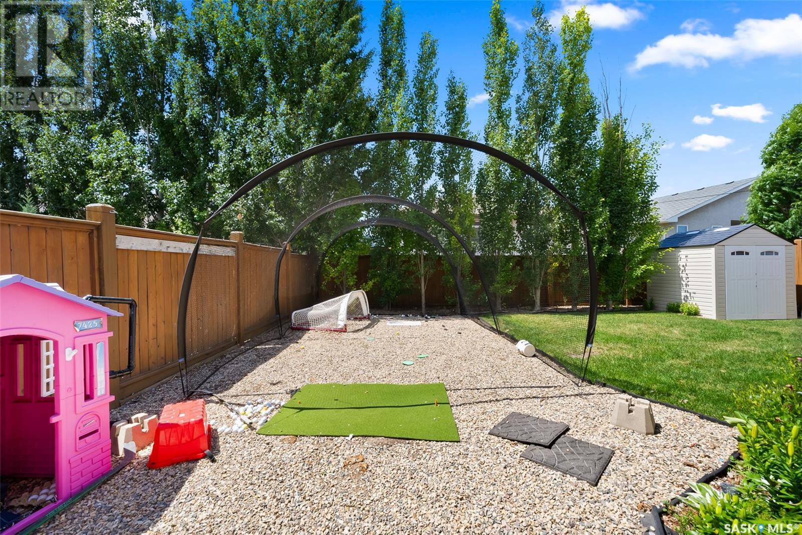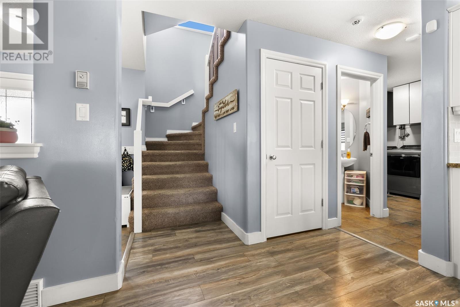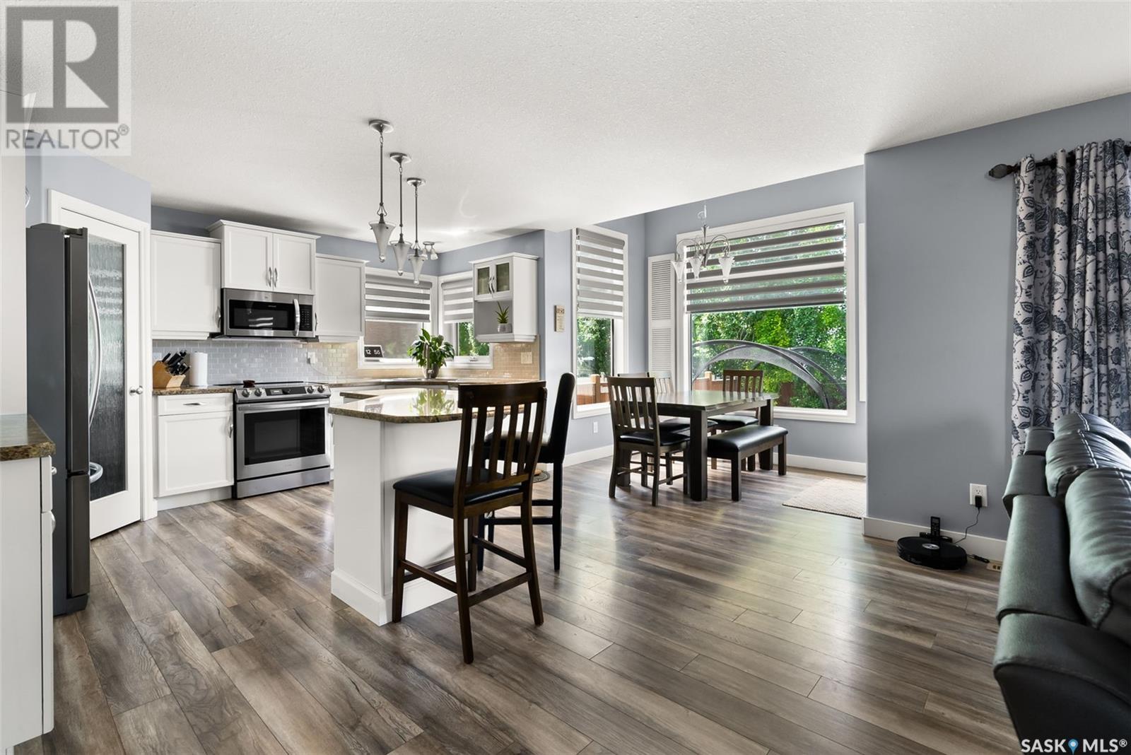 Welcome to your dream home in the desirable Fairways West community, where convenience meets comfort! This stunning property is ideally situated near picturesque parks, walking paths, and all essential amenities. Step inside to discover an inviting open-concept living, dining, and kitchen area, highlighted by a cozy fireplace that anchors the living room, creating a warm and welcoming atmosphere. The newly refreshed kitchen offers a delightful view of the backyard, making it perfect for reconnecting with friends and family. A conveniently tucked away half bath and main floor laundry add to the home's functionality. Venture upstairs to find three generously sized bedrooms, including a private ensuite and walk-in closet for the primary suite, alongside a full bath designed to make mornings a breeze with kids. The fully developed basement expands your living space with two additional bedrooms and a three-piece bathroom, making it an ideal retreat for teens or guests. The rec room would be the perfect spot to catch a Saskatchewan Roughrider game or binge watch the latest season of Love Island. Outside, enjoy a beautifully landscaped yard featuring a large deck, perfect for summer gatherings, and ample room for a batting cage for sports enthusiasts. The garage is a true standout, fully finished and heated, complete with epoxy flooring and built-in shelving for all your storage needs. This home has been loved and cared for by the current owner who is looking forward to passing it along to someone new. Don't miss out on this exceptional property that combines modern living with a serene neighborhood setting! (id:43042)