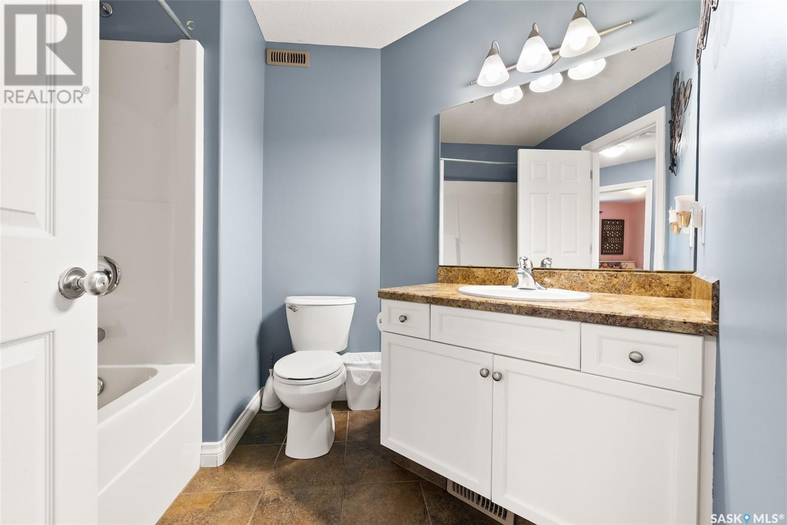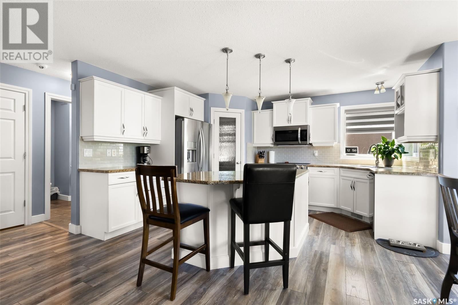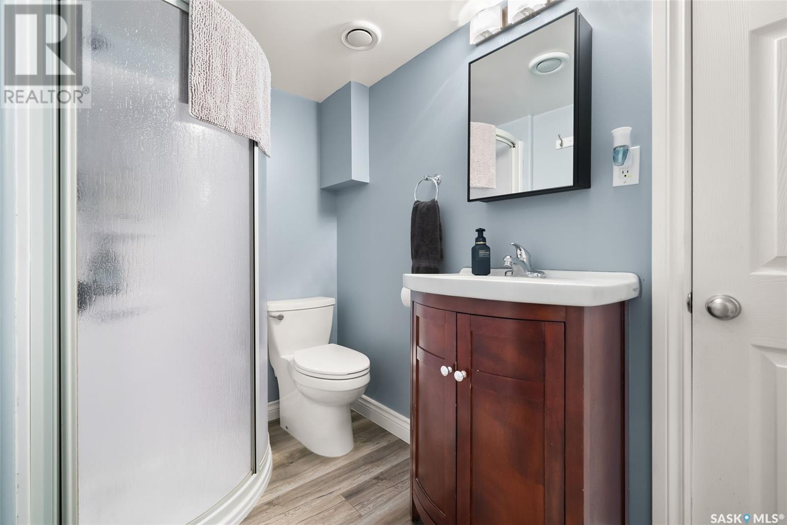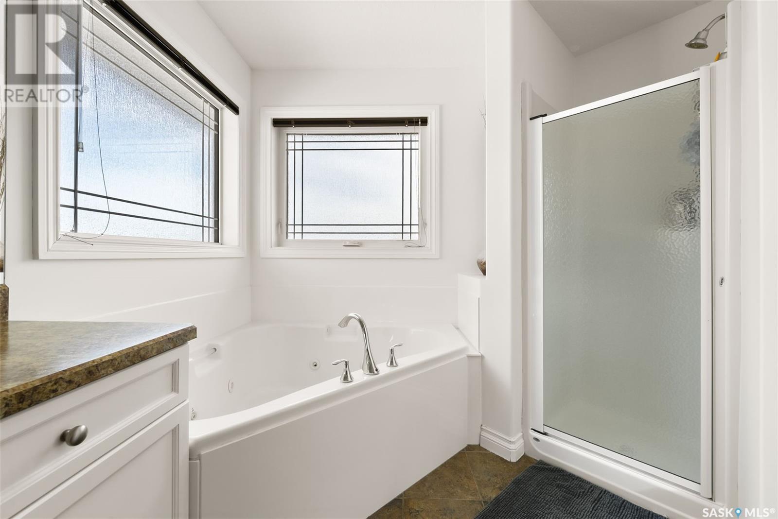 Welcome to your dream home in the desirable Fairways West community, where convenience meets comfort! This stunning property is ideally situated near picturesque parks, walking paths, and all essential amenities. Step inside to discover an inviting open-concept living, dining, and kitchen area, highlighted by a cozy fireplace that anchors the living room, creating a warm and welcoming atmosphere. The newly refreshed kitchen offers a delightful view of the backyard, making it perfect for reconnecting with friends and family. A conveniently tucked away half bath and main floor laundry add to the home's functionality. Venture upstairs to find three generously sized bedrooms, including a private ensuite and walk-in closet for the primary suite, alongside a full bath designed to make mornings a breeze with kids. The fully developed basement expands your living space with two additional bedrooms and a three-piece bathroom, making it an ideal retreat for teens or guests. The rec room would be the perfect spot to catch a Saskatchewan Roughrider game or binge watch the latest season of Love Island. Outside, enjoy a beautifully landscaped yard featuring a large deck, perfect for summer gatherings, and ample room for a batting cage for sports enthusiasts. The garage is a true standout, fully finished and heated, complete with epoxy flooring and built-in shelving for all your storage needs. This home has been loved and cared for by the current owner who is looking forward to passing it along to someone new. Don't miss out on this exceptional property that combines modern living with a serene neighborhood setting! (id:43042)