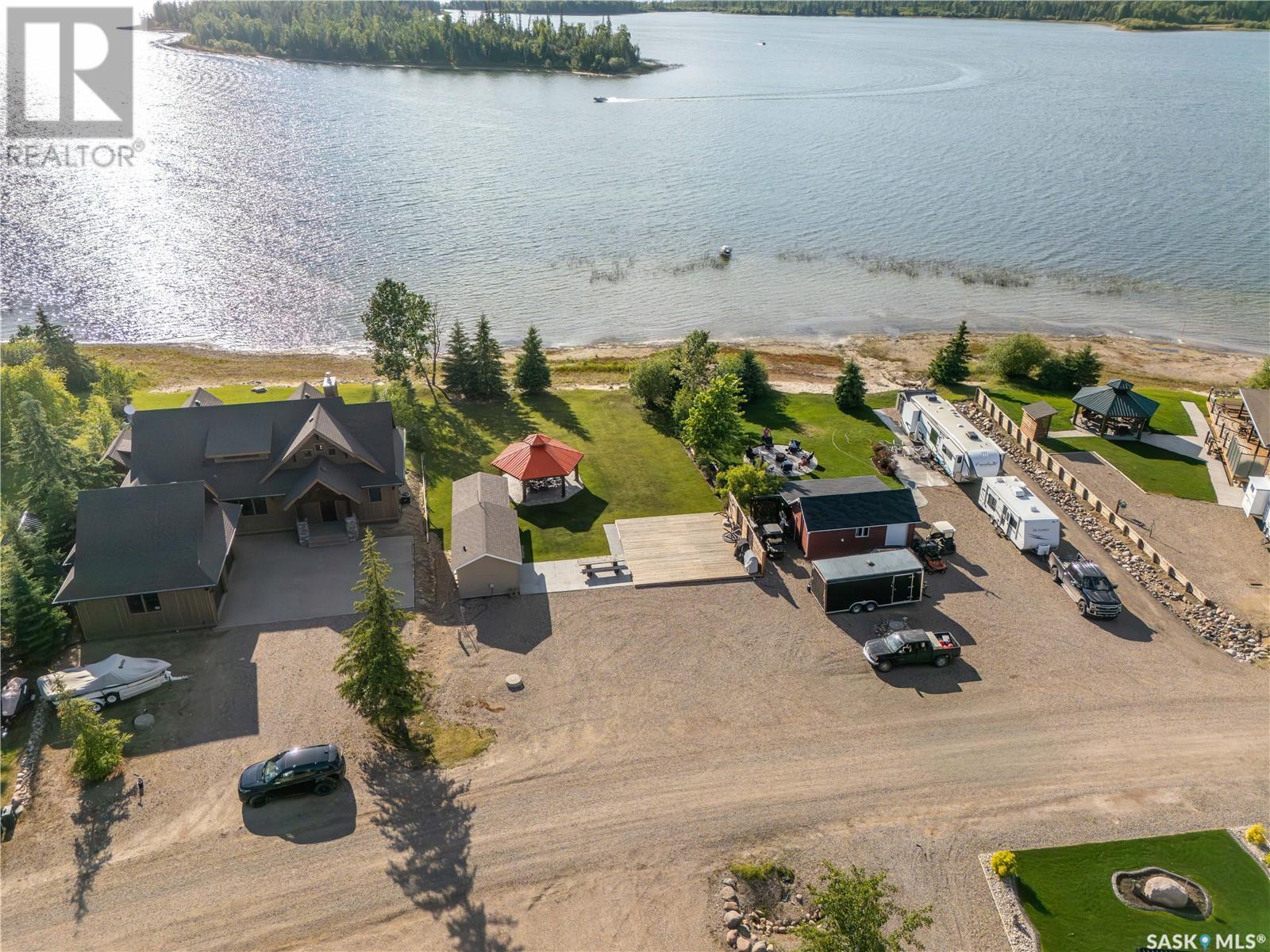 Discover your perfect lake retreat on this 0.2+ acre waterfront lot in Lauman's Landing, nestled on the shores of Lac Des Iles Lake. This property is ideal for building your dream home by 2030, offering ample time to plan your vision. Rendered photos of the Salt Spring by Beaver Homes and Cottages gives you just one of many homes that would fit perfectly on this lot. Enjoy immediate lake access with your private boat slip and lift. Lac Des Isles is a fantastic lake for boating and fishing, known for its clear waters and abundant Walleye, Pike, and Perch. Not ready to build? No problem! Hook up your RV right by the deck with full power, water, and septic connections. Your guests will love the cozy sleep shack, complete with two bunk beds, a full bathroom (with shower), washer/dryer, and a fridge/freezer. This property is fully serviced with the subdivision's reverse osmosis system for water, a septic tank already installed, and power and natural gas run to the lot. Relax under your custom gazebo and enjoy a fire as you watch breathtaking sunsets over Lac Des Isles. This isn't just a lot; it's your invitation to a vibrant lakeside lifestyle, where every day feels like a vacation. Lauman's Landing offers a boat launch, fish filleting shack, and a playground. Beyond the subdivision, Meadow Lake Provincial Park provides endless opportunities for hiking, biking, swimming, and winter sports. The highly-rated Northern Meadows Golf Course is also nearby. Offering a peaceful escape without sacrificing accessibility you are just two hours north of Lloydminster, 45 minutes east of Cold Lake, and 3 hours and 45 minutes east of Edmonton (id:43042)