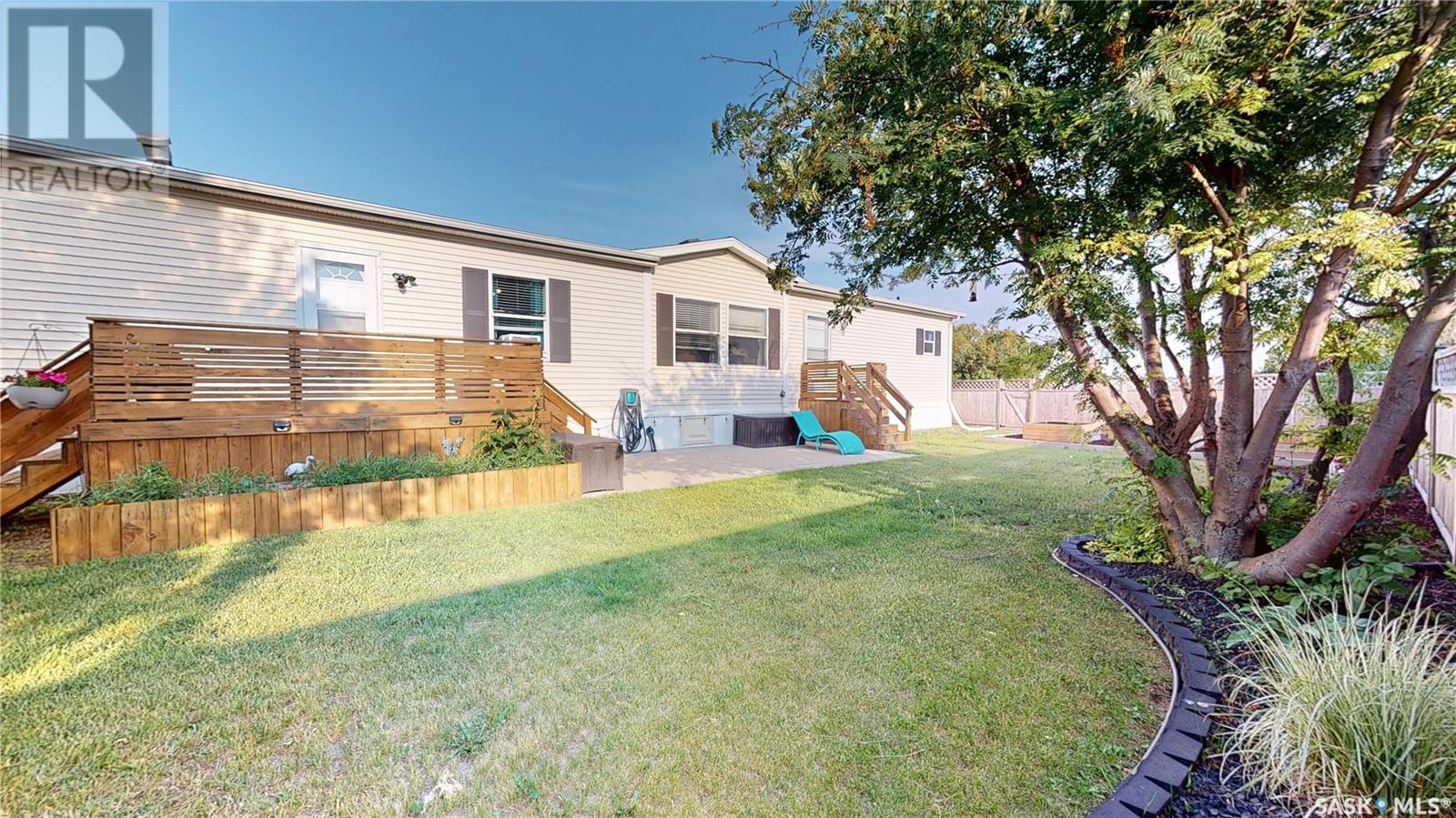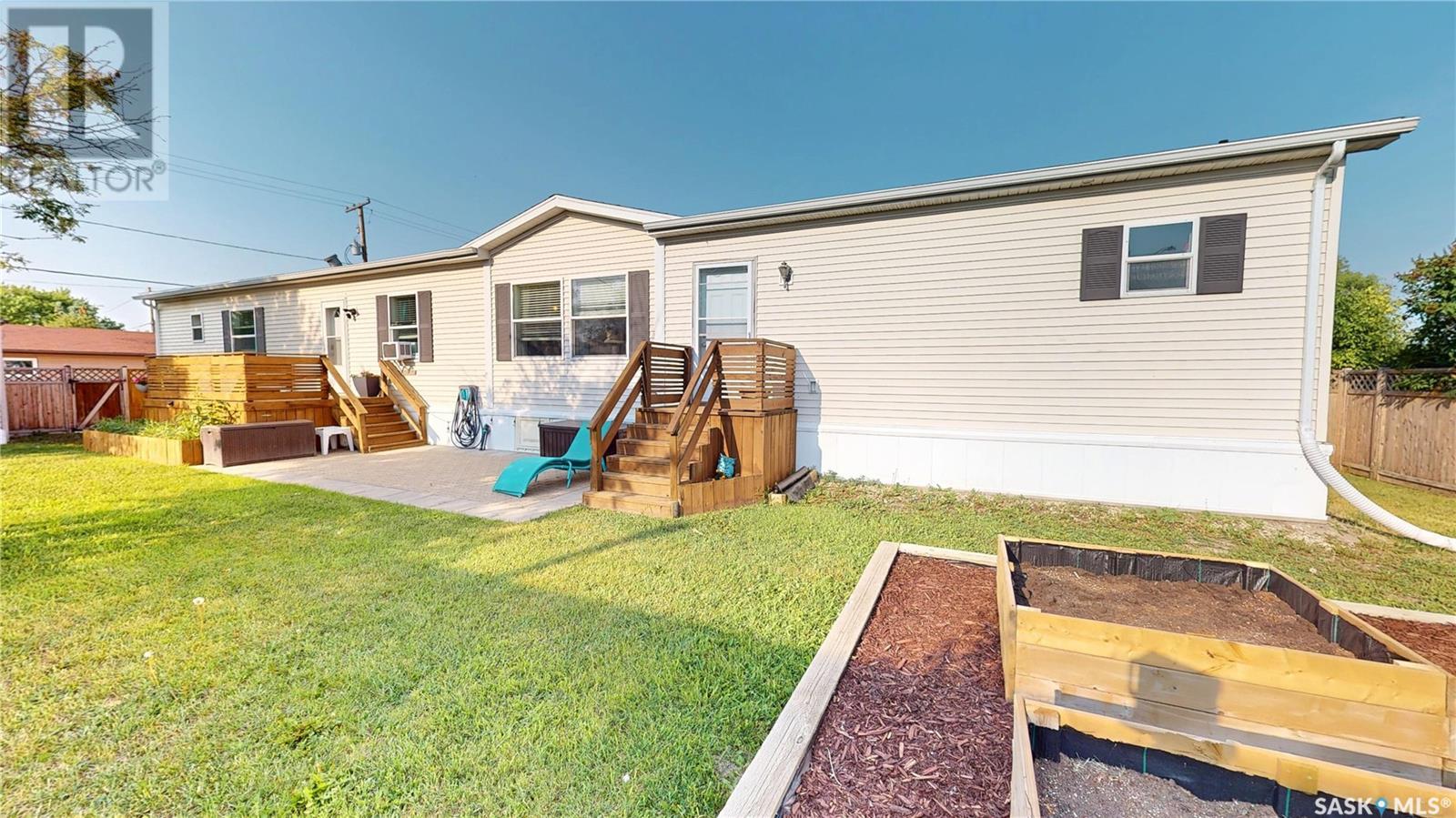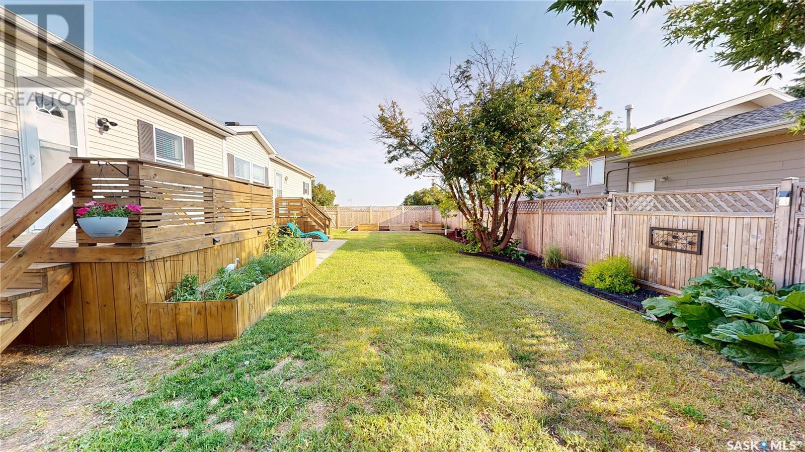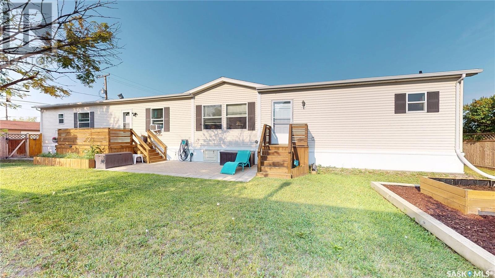 TURN-KEY - 3 Bedroom - 2 Bath - Mobile Home with an AMAZING PRIVATE YARD - Located across from town recreation area to the South - great open area for parking up to 4 vehicles on the North side of the property off the Back Alley. Welcome to 1440 sq.ft. of Main Floor Living with a spacious kitchen with corner Pantry and open dining area facing the large living room. Front the Kitchen you have the back Mudroom/Laundry Entry with access to Deck and Yard. The Primary Bedroom with 4pc ensuite featuring a stand up shower and corner jetted tub plus a large walk-in closet. There are two good size bedroom and the Main 4pc Bathroom on the opposite end of the mobile home with another side entry access and closet. Updated Vinyl Plank runs through the majority of the flooring. Includes: Fridge & Stove (2017), Built-in Dishwasher (2022), Microwave Range Hood (2023), Washer, Dryer and Window Air Conditioner. The Outdoor Space is amazing with a fully fenced side yard (2018) that is landscaped with flowers, trees, mulch, raised Garden Beds (2025), Paving Stove Patio & Side Deck (2021), 12 x 8 Garden Shed. Mobile Home is secured with tie-downs and has 3 access points through the insulated skirting. 3D Matterport Video included with Virtual Tour of interior and exterior plus room locations & measurements. This home is ready for you! (id:43042)