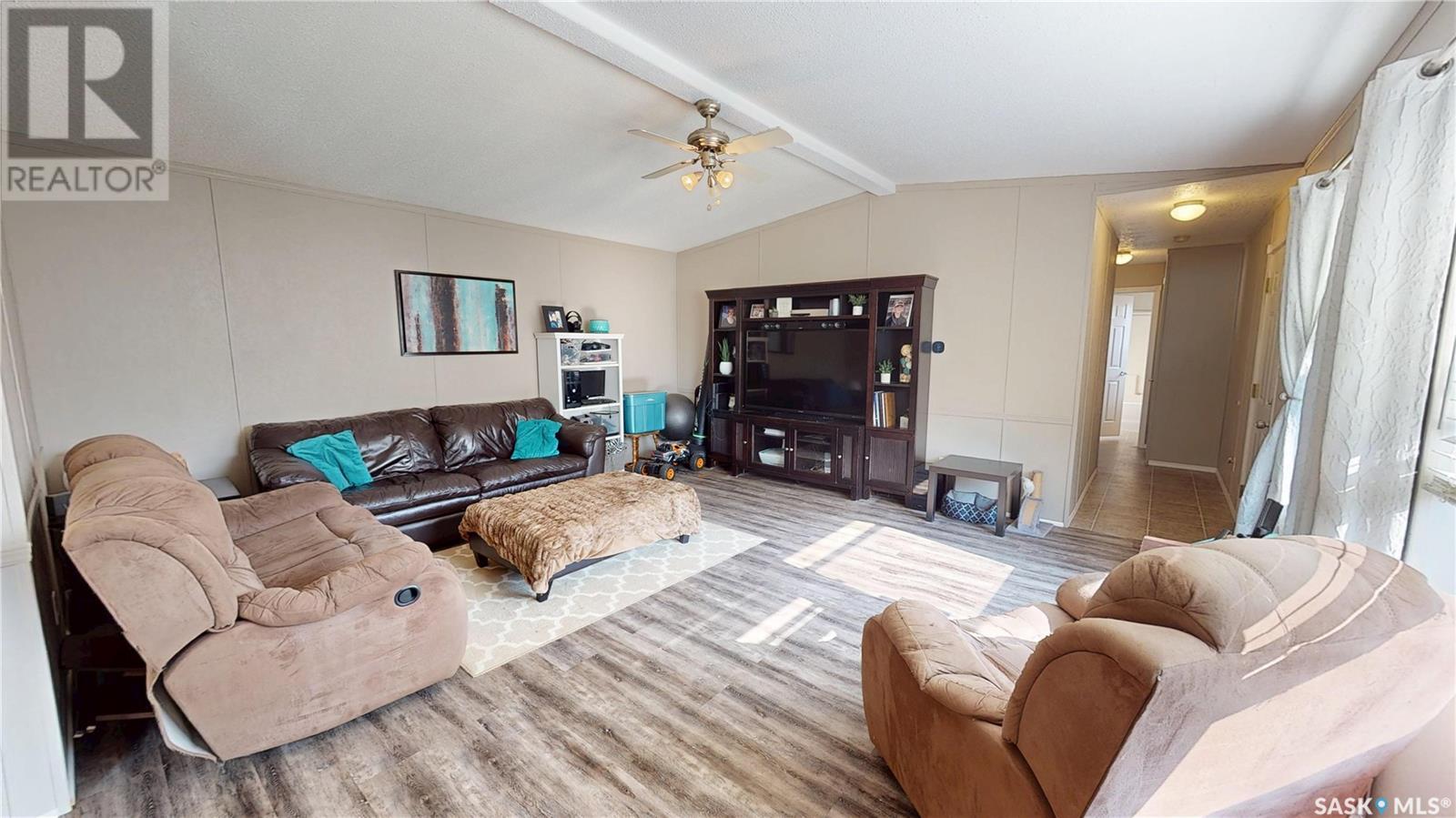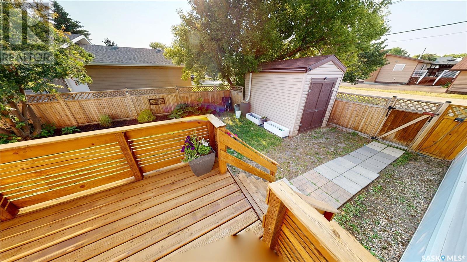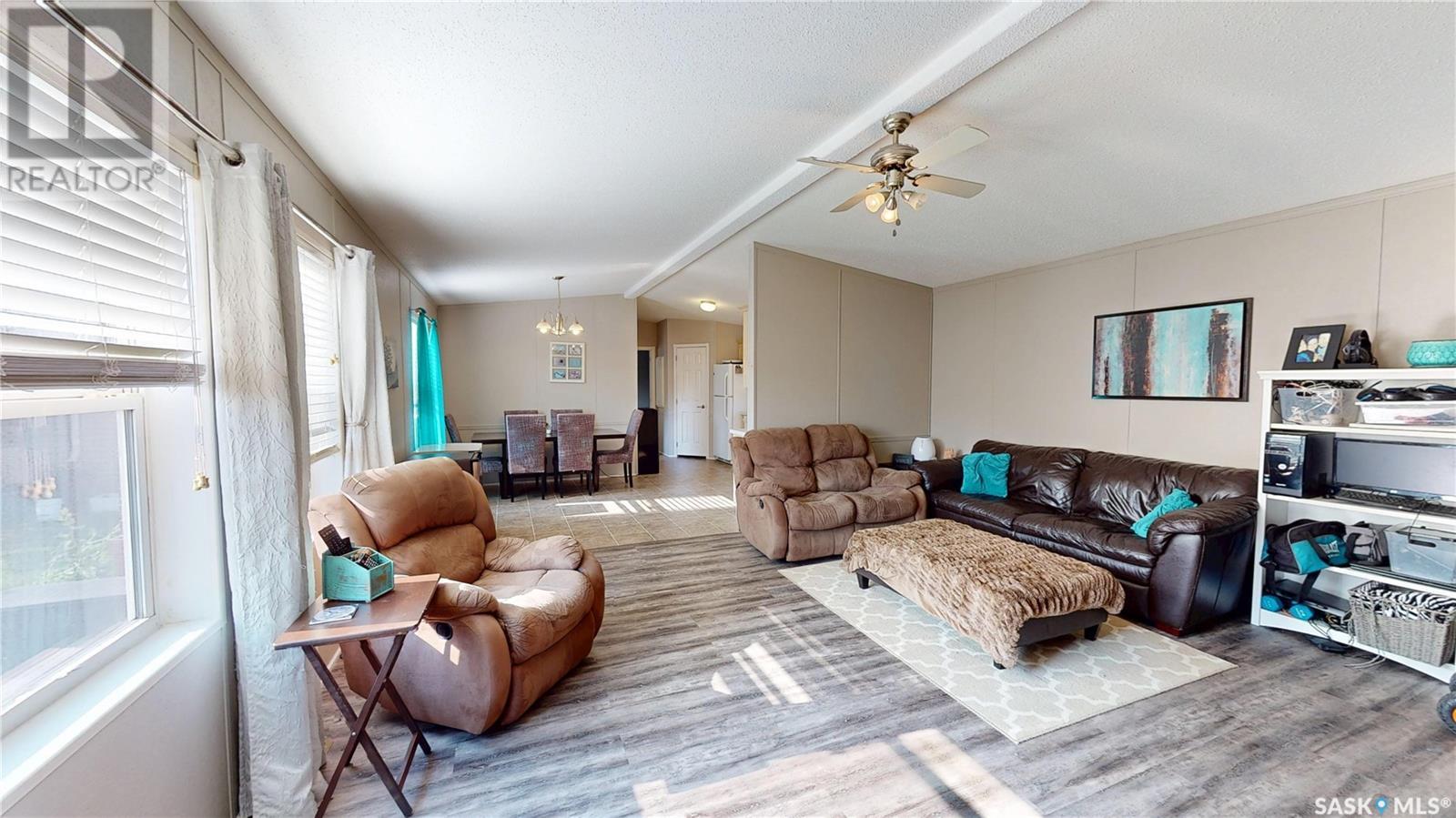 TURN-KEY - 3 Bedroom - 2 Bath - Mobile Home with an AMAZING PRIVATE YARD - Located across from town recreation area to the South - great open area for parking up to 4 vehicles on the North side of the property off the Back Alley. Welcome to 1440 sq.ft. of Main Floor Living with a spacious kitchen with corner Pantry and open dining area facing the large living room. Front the Kitchen you have the back Mudroom/Laundry Entry with access to Deck and Yard. The Primary Bedroom with 4pc ensuite featuring a stand up shower and corner jetted tub plus a large walk-in closet. There are two good size bedroom and the Main 4pc Bathroom on the opposite end of the mobile home with another side entry access and closet. Updated Vinyl Plank runs through the majority of the flooring. Includes: Fridge & Stove (2017), Built-in Dishwasher (2022), Microwave Range Hood (2023), Washer, Dryer and Window Air Conditioner. The Outdoor Space is amazing with a fully fenced side yard (2018) that is landscaped with flowers, trees, mulch, raised Garden Beds (2025), Paving Stove Patio & Side Deck (2021), 12 x 8 Garden Shed. Mobile Home is secured with tie-downs and has 3 access points through the insulated skirting. 3D Matterport Video included with Virtual Tour of interior and exterior plus room locations & measurements. This home is ready for you! (id:43042)