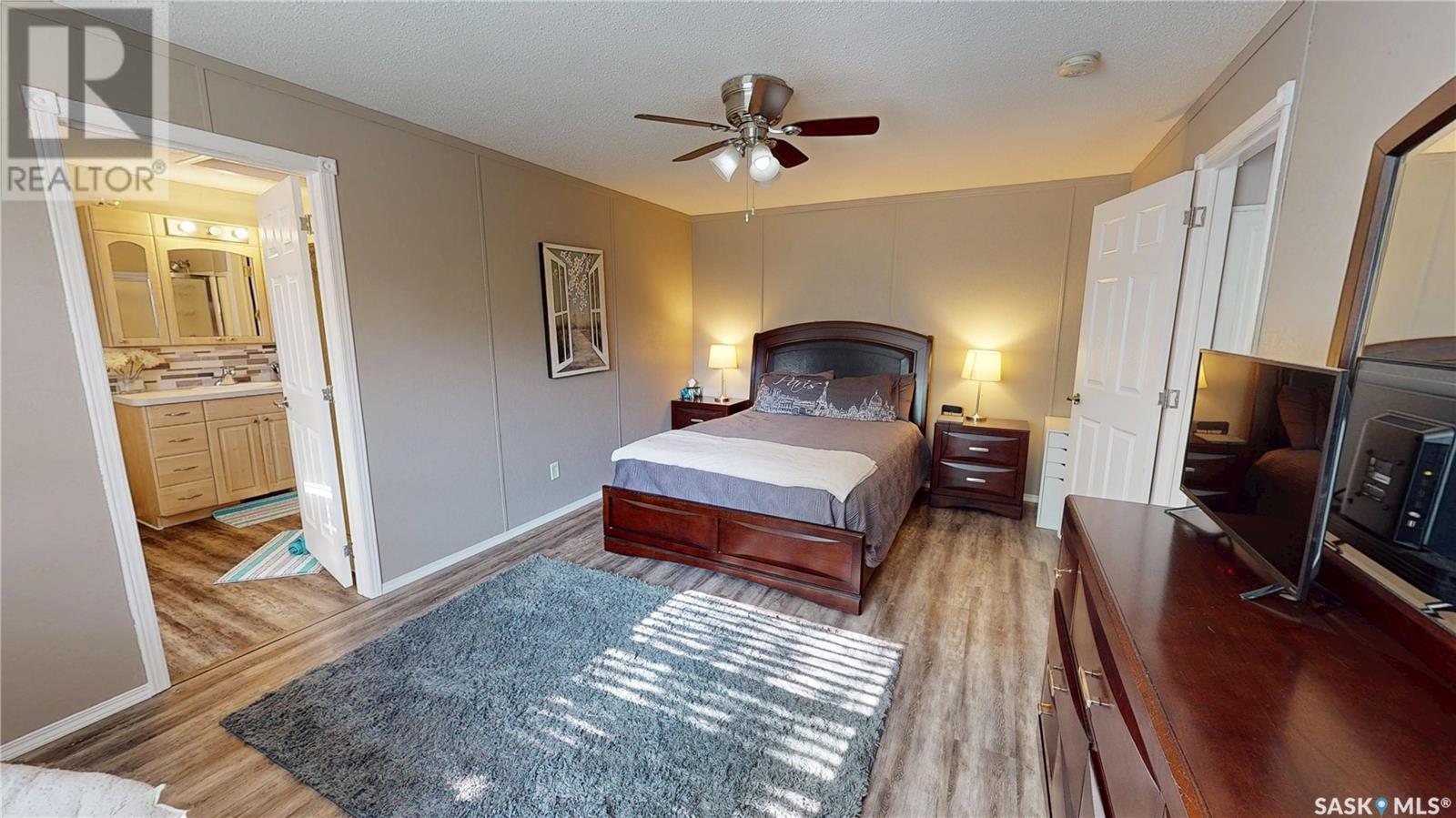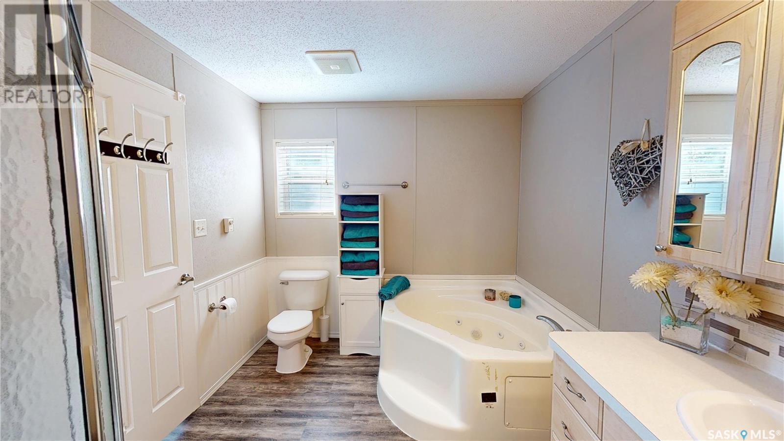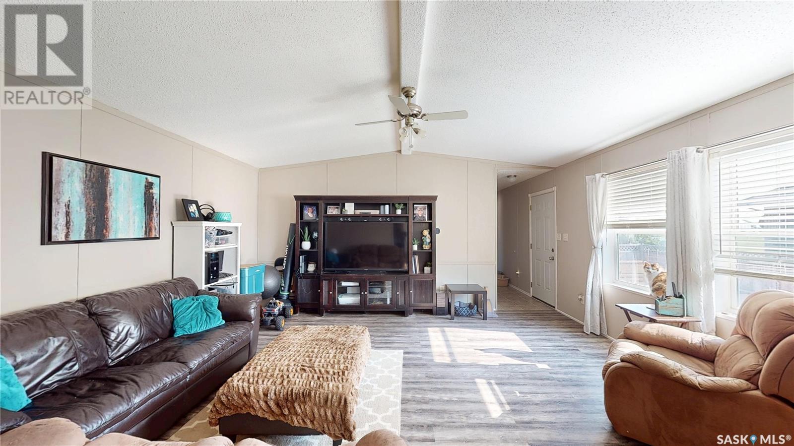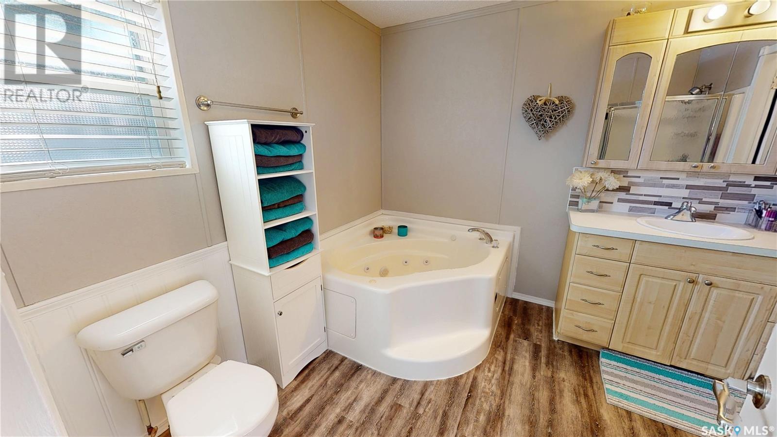 TURN-KEY - 3 Bedroom - 2 Bath - Mobile Home with an AMAZING PRIVATE YARD - Located across from town recreation area to the South - great open area for parking up to 4 vehicles on the North side of the property off the Back Alley. Welcome to 1440 sq.ft. of Main Floor Living with a spacious kitchen with corner Pantry and open dining area facing the large living room. Front the Kitchen you have the back Mudroom/Laundry Entry with access to Deck and Yard. The Primary Bedroom with 4pc ensuite featuring a stand up shower and corner jetted tub plus a large walk-in closet. There are two good size bedroom and the Main 4pc Bathroom on the opposite end of the mobile home with another side entry access and closet. Updated Vinyl Plank runs through the majority of the flooring. Includes: Fridge & Stove (2017), Built-in Dishwasher (2022), Microwave Range Hood (2023), Washer, Dryer and Window Air Conditioner. The Outdoor Space is amazing with a fully fenced side yard (2018) that is landscaped with flowers, trees, mulch, raised Garden Beds (2025), Paving Stove Patio & Side Deck (2021), 12 x 8 Garden Shed. Mobile Home is secured with tie-downs and has 3 access points through the insulated skirting. 3D Matterport Video included with Virtual Tour of interior and exterior plus room locations & measurements. This home is ready for you! (id:43042)