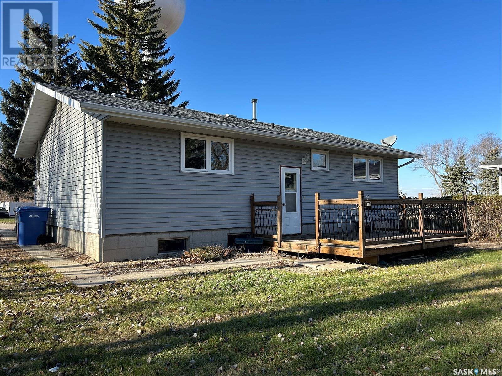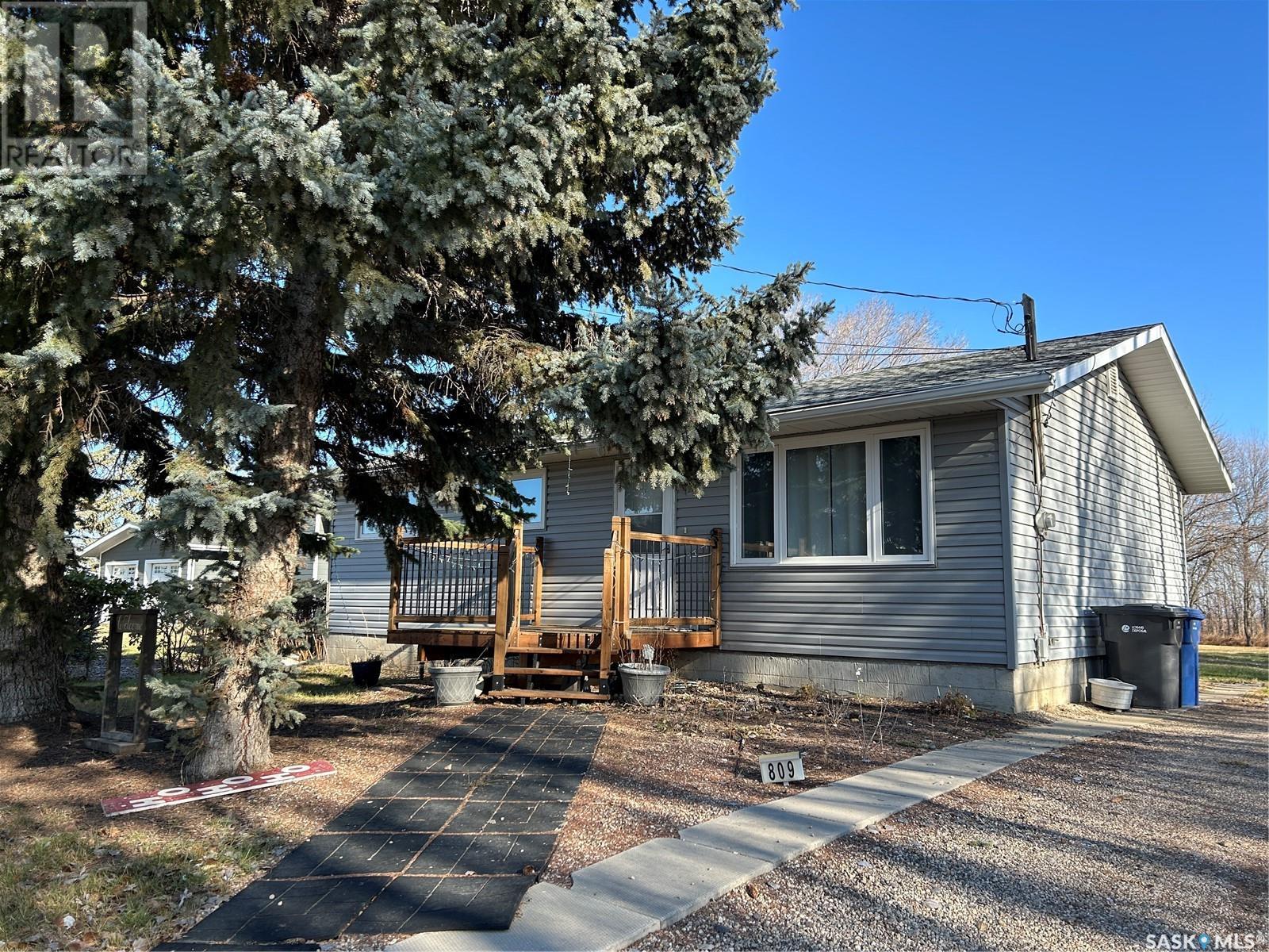 Welcome to 809 Gregson Street in the town of Oxbow, SK! This fully developed bungalow is situated on a huge lot that is surrounded by mature trees, and is located just steps from the community rink, the outdoor swimming pool and a few blocks from the K-12 school. Some major upgrades to the home in recent years include shingles, vinyl siding, pvc windows, central A/C, water heater and a high efficient furnace. The main floor features a spacious living room and an eat in kitchen that overlooks the beautiful back yard. 3 bedrooms and a 4 piece bathroom complete this level of the home. The basement is fully developed with a family room, 3 piece bathroom, 4th bedroom and a den with a large closet that would make a perfect guest room or home office. The laundry room doubles as a large storage space, partially exposing a solid concrete foundation. Location location and priced to sell, this cozy bungalow along with a rare park like back yard is priced to sell and is waiting for the perfect family. To take a virtual walk through of this home, click on the video link to see what this home has to offer! (id:43042)