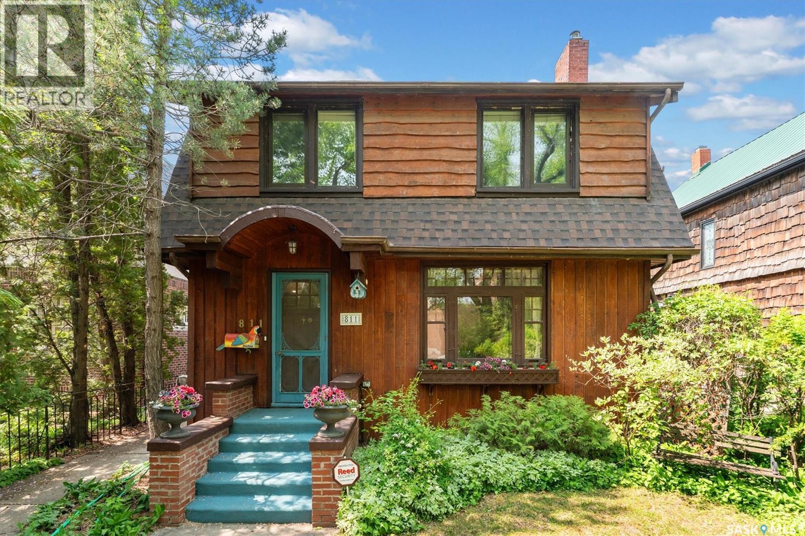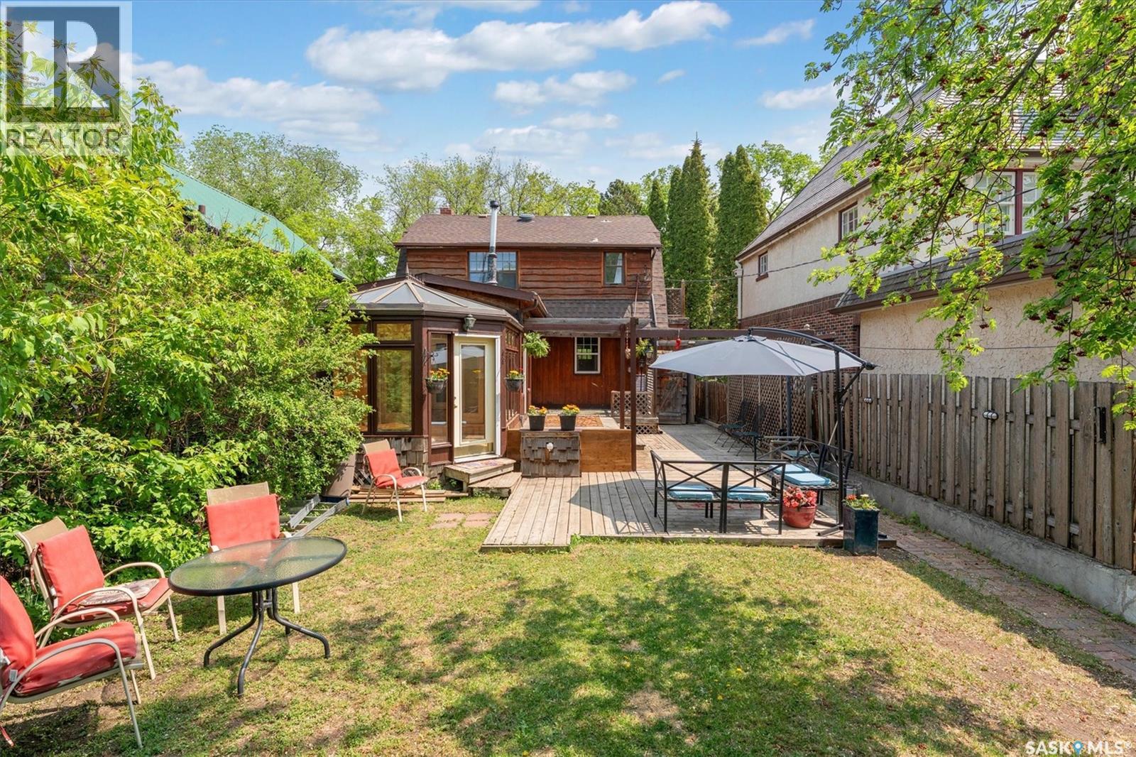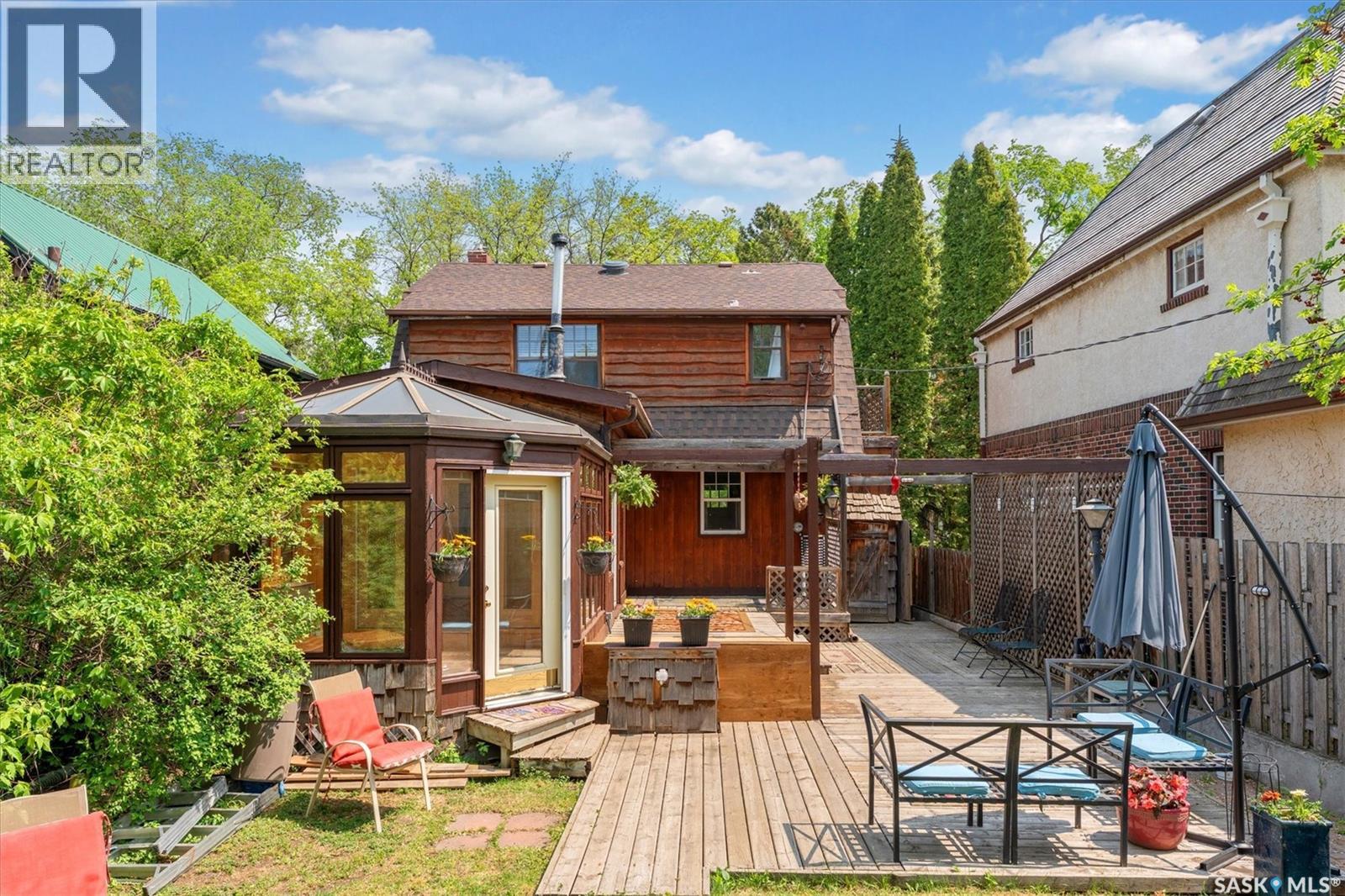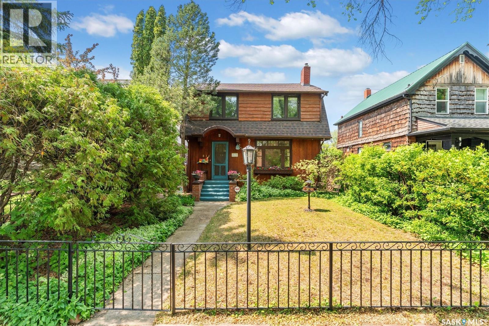 Charming character home located in the heart of the city — 811 9th Avenue, Saskatoon. Step into timeless character and warmth at this beautifully maintained two-storey home in a highly sought after location, Built in 1935 and rich with architectural charm, this 1,670 sq ft property offers a thoughtful blend of historical appeal and practical updates. Inside, you'll find a spacious and inviting layout featuring three bedrooms upstairs plus an additional den in the basement. the main level is adorned with hardwood flooring, exposed interior brick in the office, and gorgeous stained-glass windows and chandeliers that lend an elegant, vintage feel. Enjoy cozy evenings by one of the two gas fireplaces, or unwind in the stunning four-season sunroom. The kitchen and dining areas offer a generous space and the opportunity to modernize. A bright office on the main floor provides a quiet and unique workspace with character detailing throughout. The partially finished basement includes a den, 3-piece bath, laundry area, and ample storage, plus side entry access — adding flexibility for future suite potential. What truly sets this home apart is its stunning outdoor space. The large backyard is a rare find, complete with a spacious deck, two sheds, and mature landscaping offering both beauty and privacy. Top-quality Denovo triple-pane windows on the east side ensure energy efficiency while preserving the home's integrity. Located near downtown, amenities, and transit routes, this property combines location, character, and lifestyle. While there's no garage, the property offers back and side access — with plenty of room to build is desired. There is side access for a potential basement suite. Give me a call today to view this lovely property (id:43042)